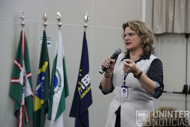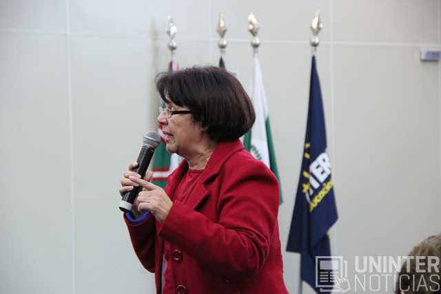 A coordenadora do Instituto Brasileiro de Graduação Pós Graduação e Extensão (IBGPEX), Adenir Fonseca, apresentou os projetos sociais do UNINTER e a futura parceria com o Grupo Paranaense de Comunicação (GRPCOM), que também atua na área social e comunitária.