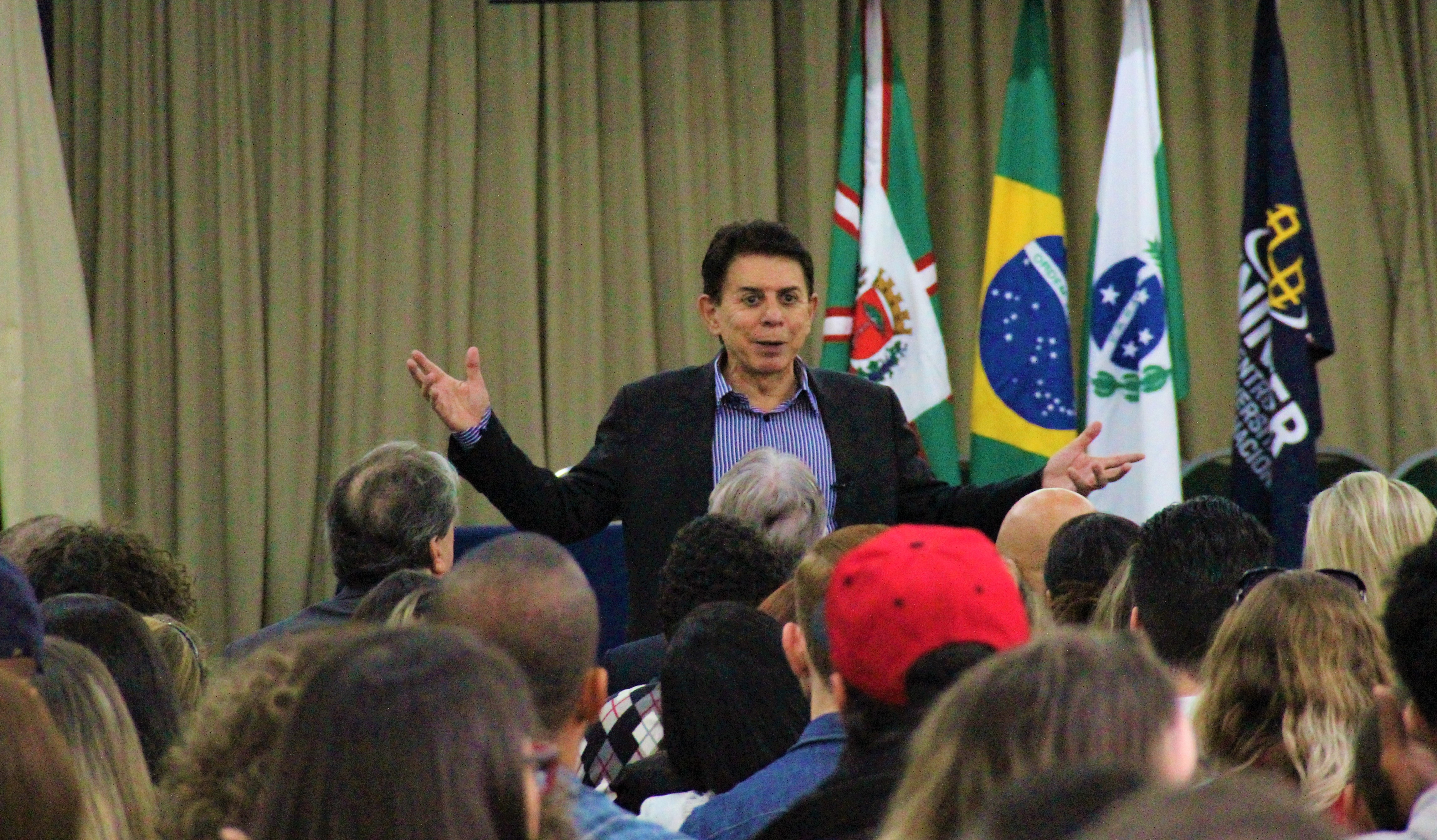 A palestra “Comunicação e Crise Política no Brasil: o Papel dos Comunicadores na Busca de Alternativas com Heródoto Barbeiro”, aconteceu às 9h no campus Garcez, em Curitiba. Antes da palestra, às 8h45 ocorreu uma coletiva com o jornalista, onde estudantes fizeram perguntas para Heródoto. Durante a coletiva foi levantada a questão do jornalismo multimídia, os novos desafios de se fazer conteúdos jornalísticos com credibilidade. Em sua fala, Heródoto destaca que não importa a plataforma em que o jornalista está inserido, contanto que saiba fazer jornalismo e que consiga se adaptar. “Se soubermos fazer jornalismo, fazemos em qualquer plataforma”, afirma.