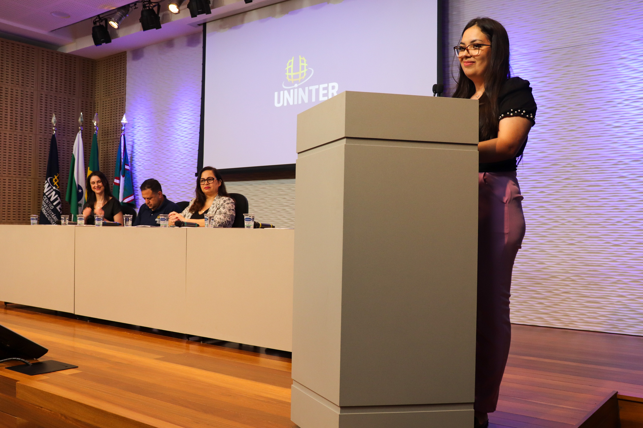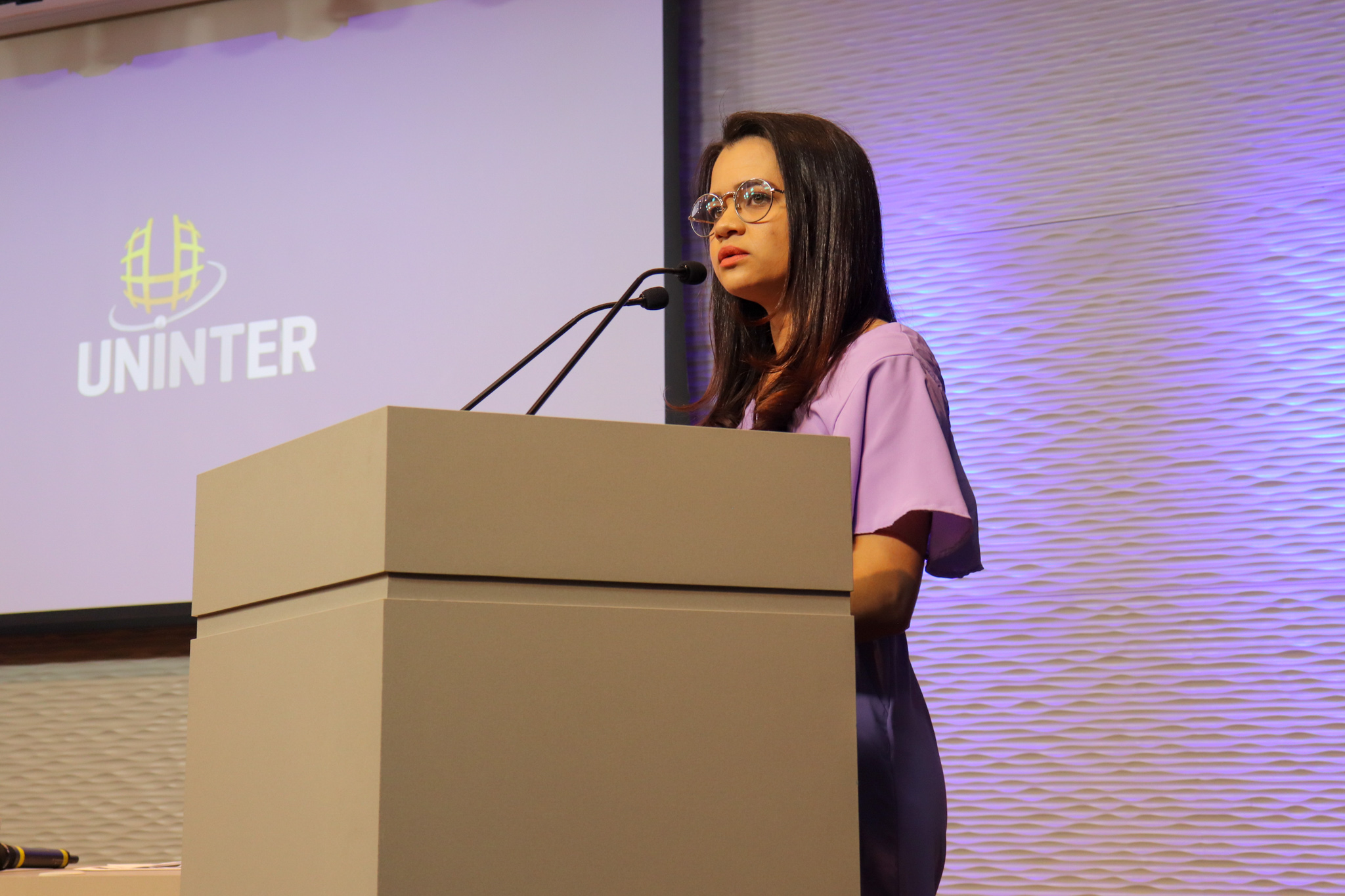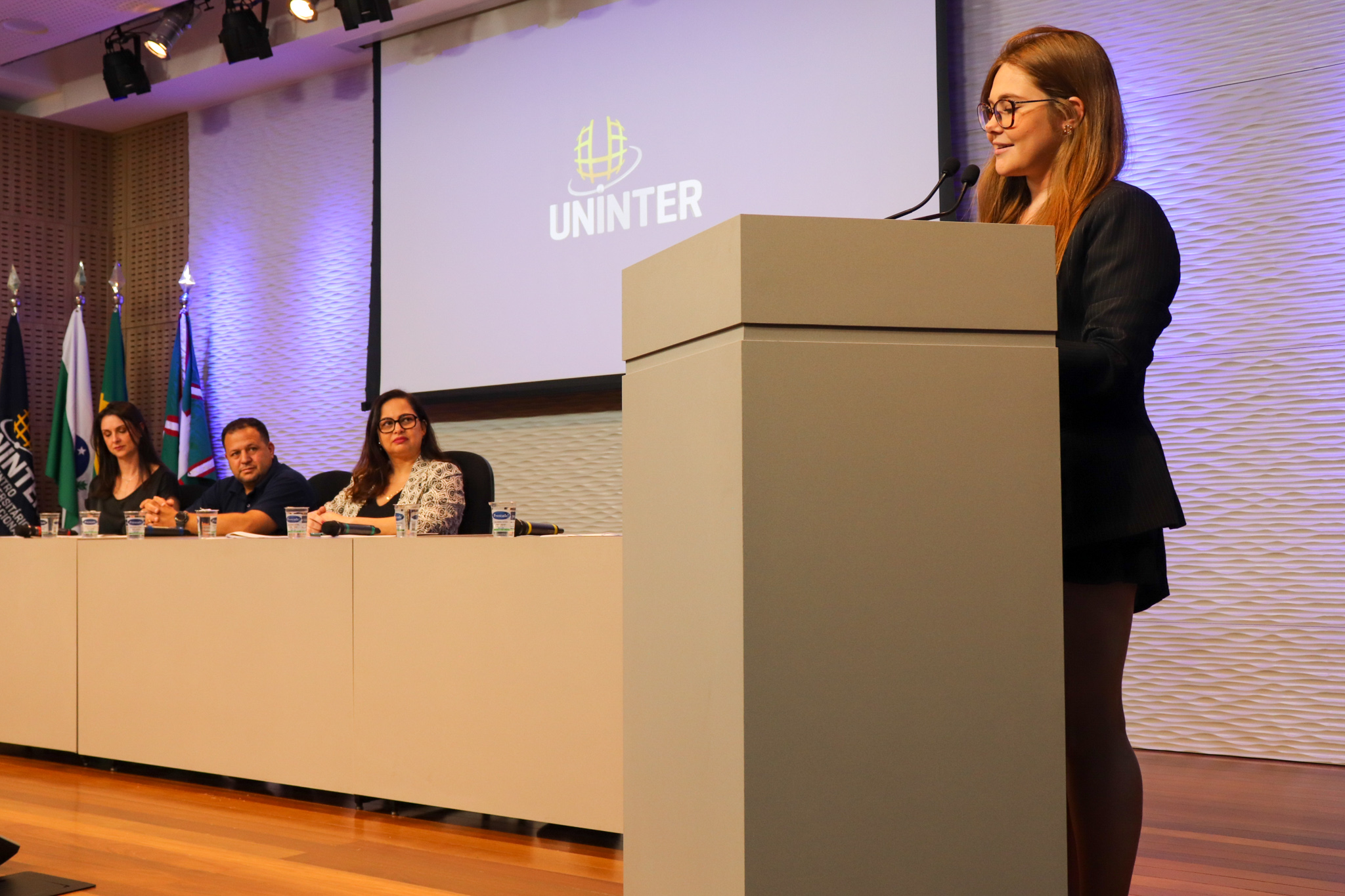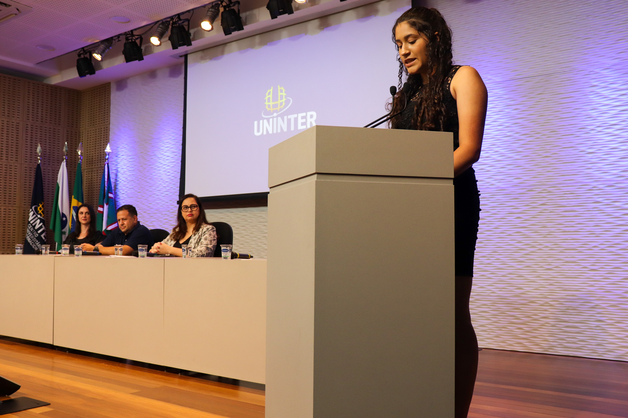 Muitos dos jovens aprendizes são efetivados nos setores da Uninter ao finalizar a jornada como jovem aprendiz, e alguns garantem a vaga antes mesmo de se formar pelo programa. Durante a solenidade, Emanuele Proencio de Jesus, que realizou o programa em 2021, teve a oportunidade de contar a sua história e experiência na turma seis.