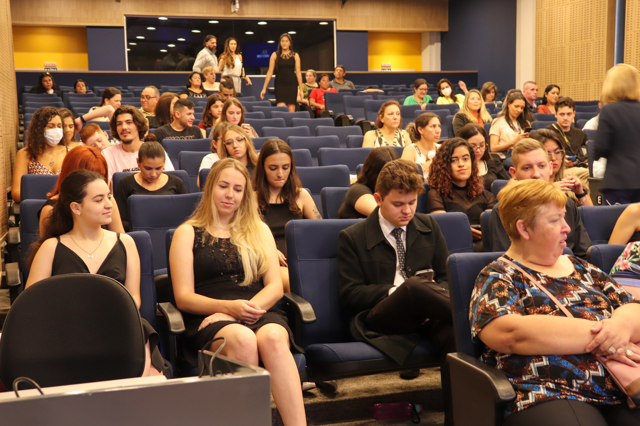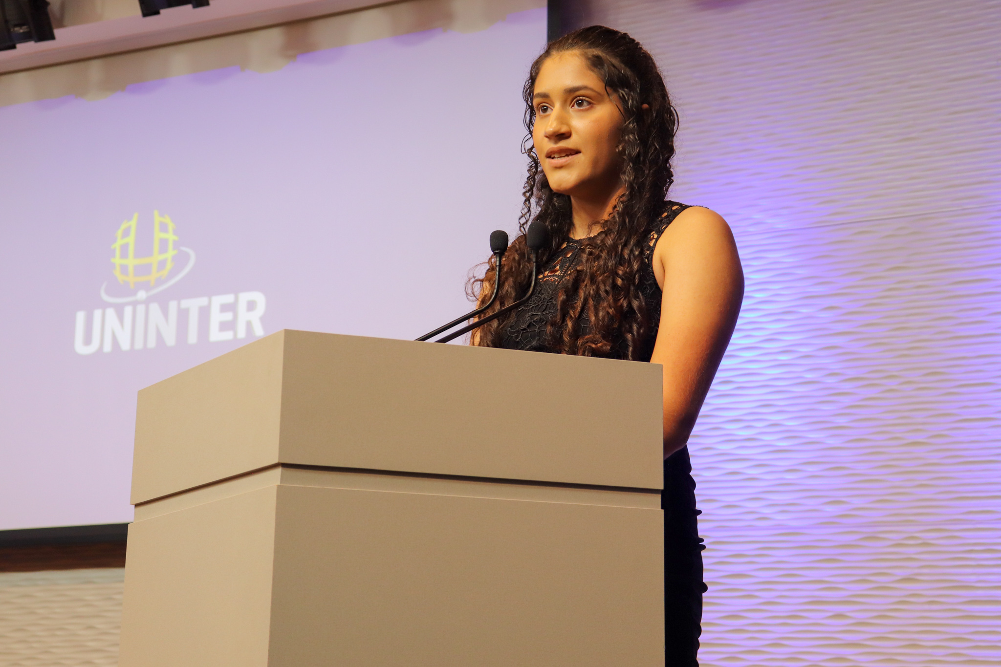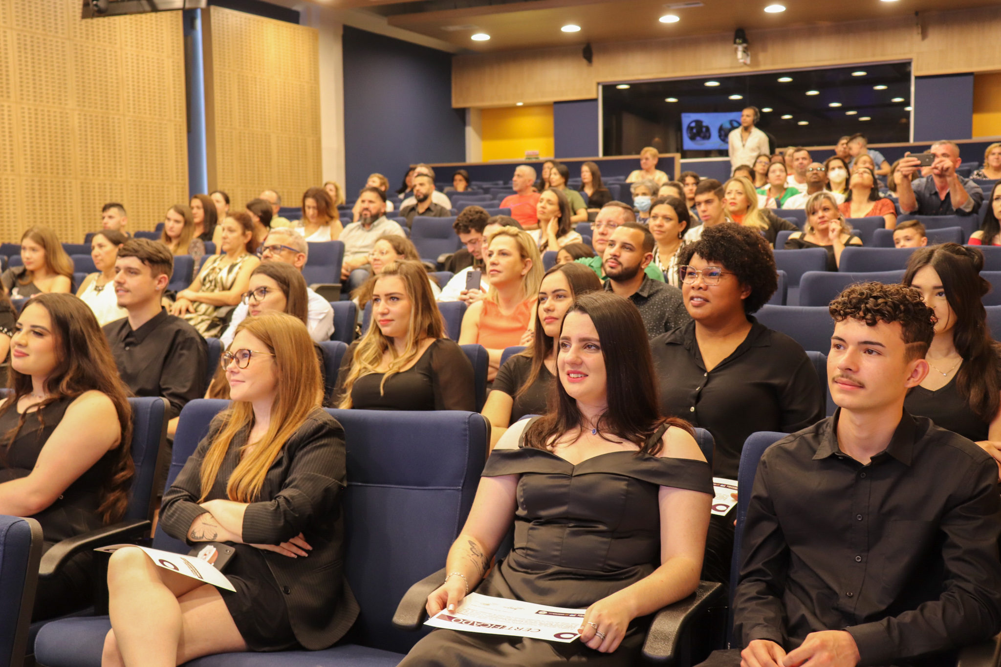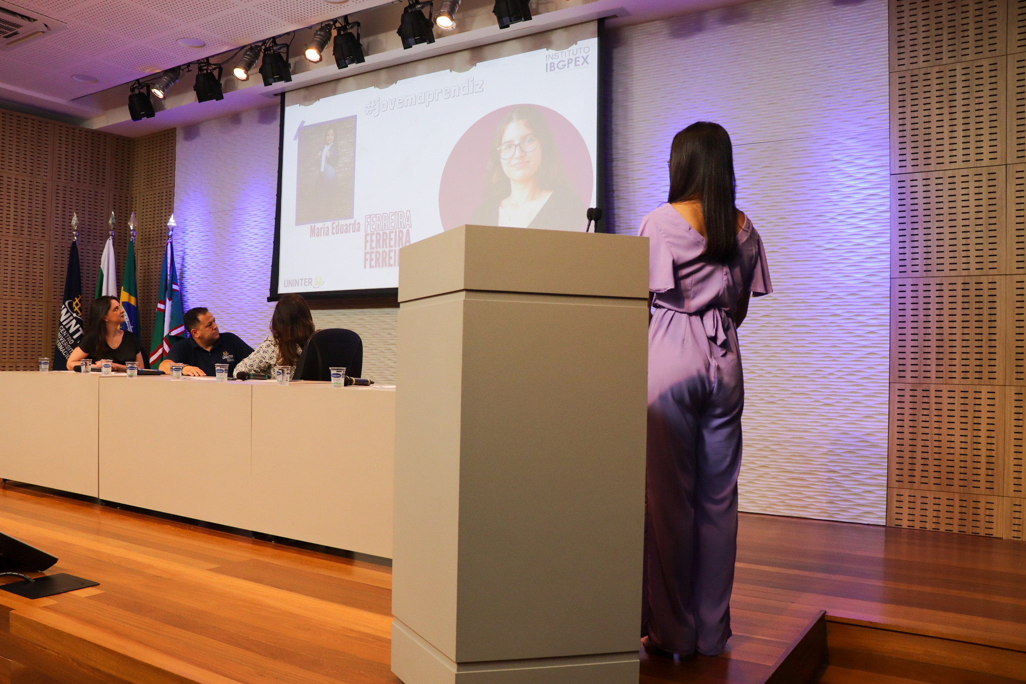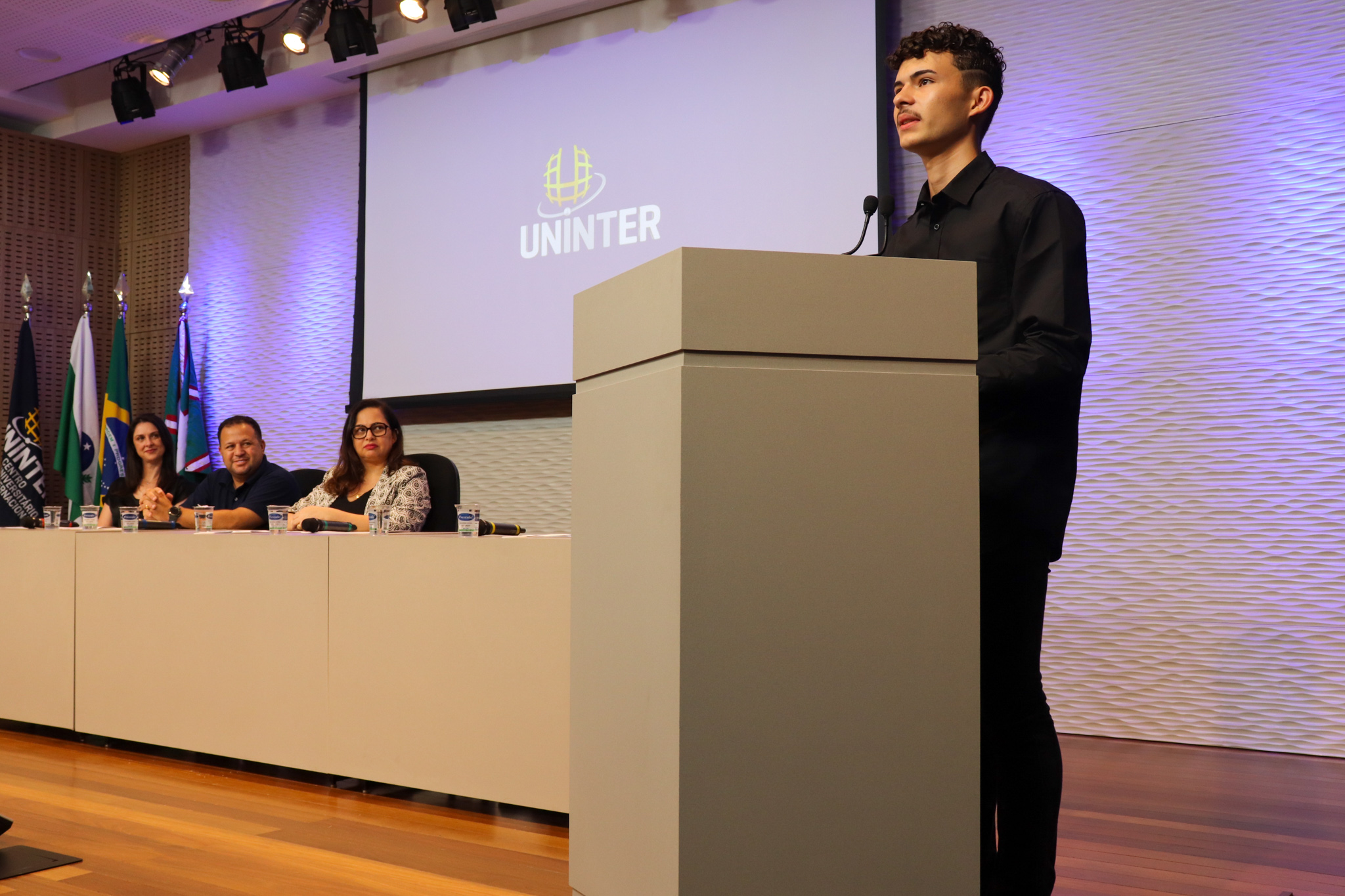 Muitos dos jovens aprendizes são efetivados nos setores da Uninter ao finalizar a jornada como jovem aprendiz, e alguns garantem a vaga antes mesmo de se formar pelo programa. Durante a solenidade, Emanuele Proencio de Jesus, que realizou o programa em 2021, teve a oportunidade de contar a sua história e experiência na turma seis.