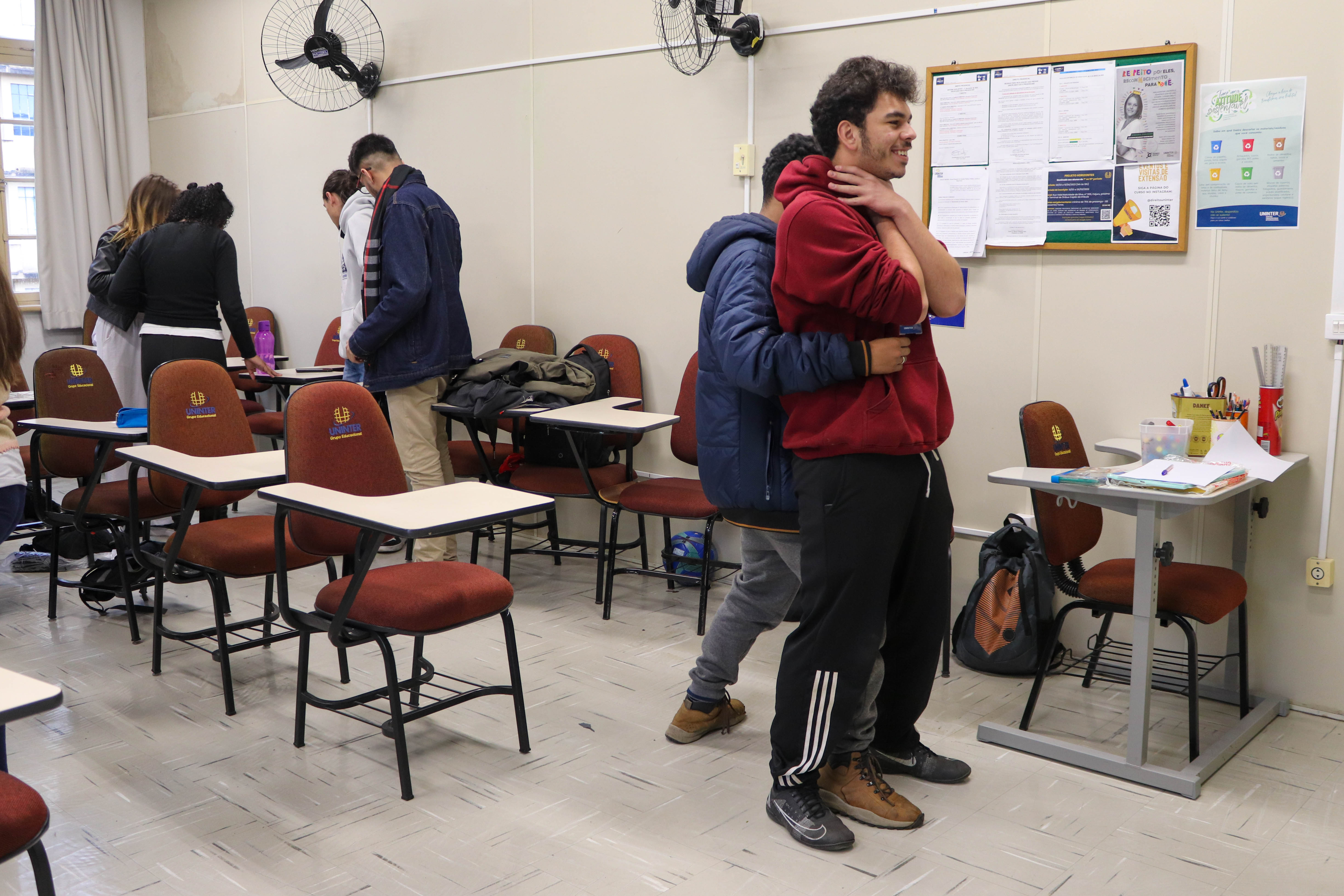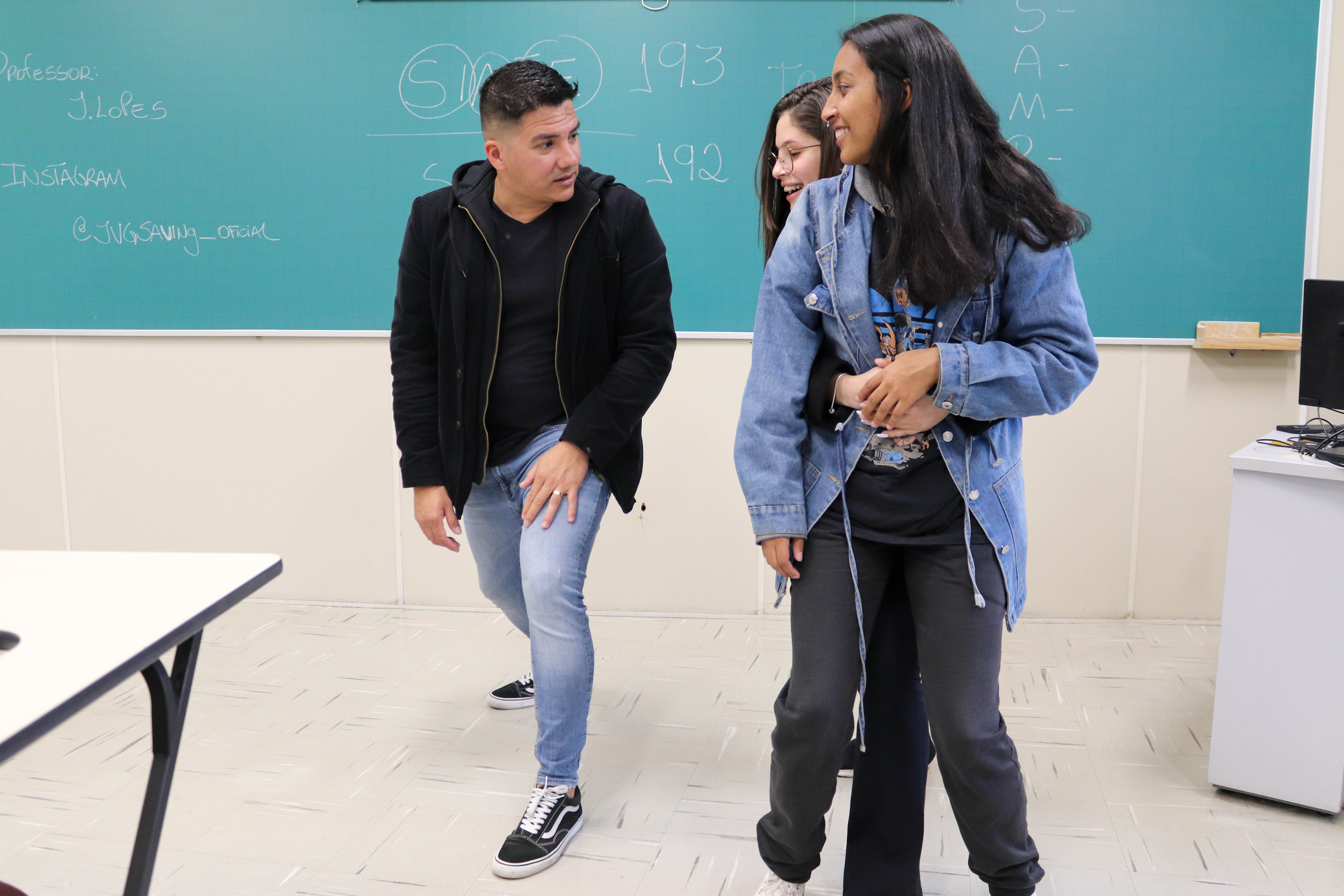 Os jovens também realizaram algumas dinâmicas em duplas, como a simulação de uma manobra de desengasgo e também a verificação de pulso. Jaime ressalta que, em um caso de parada cardiorrespiratória, por exemplo, cada minuto passado diminui em 10% a chance de sobrevida.