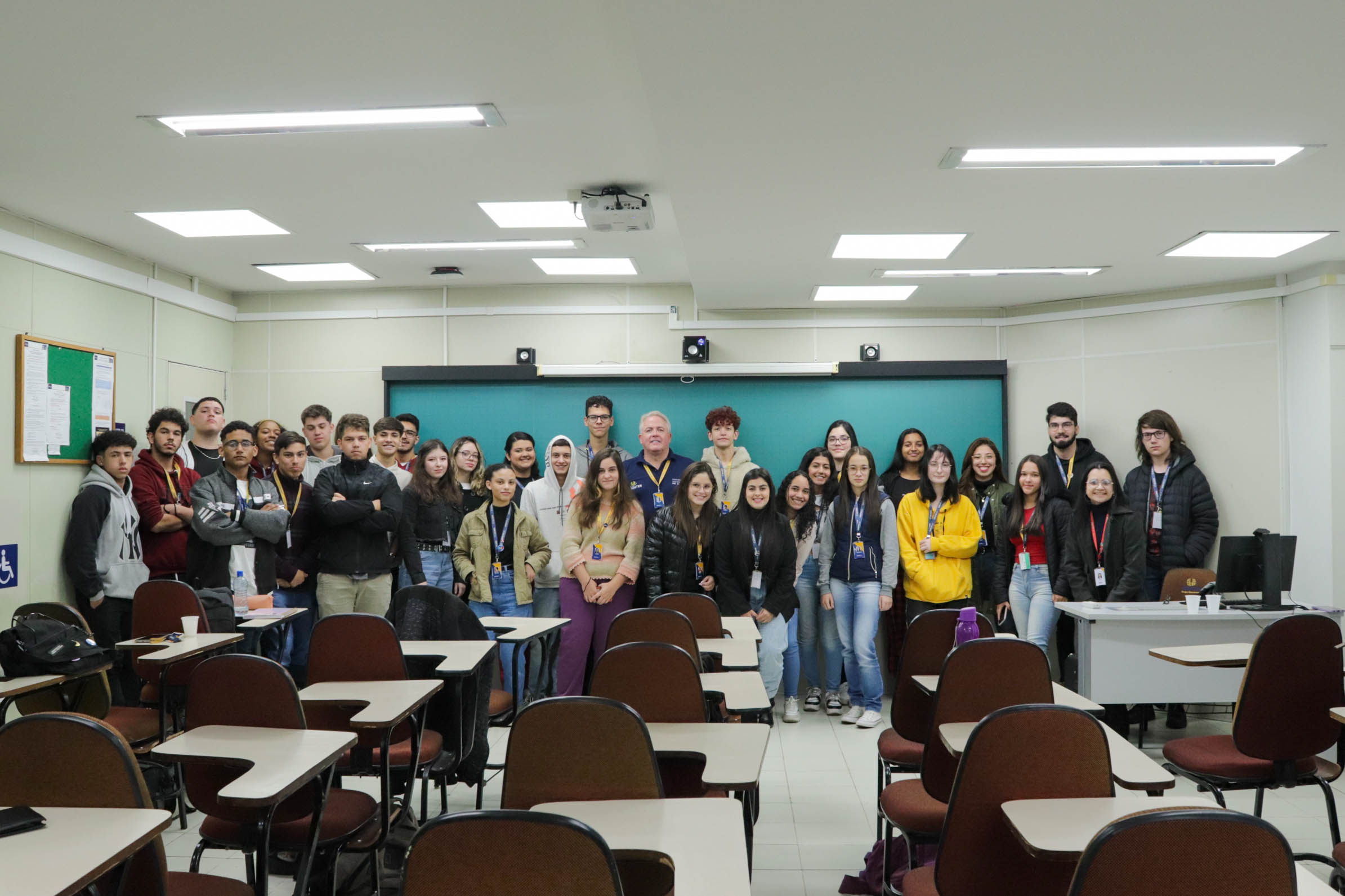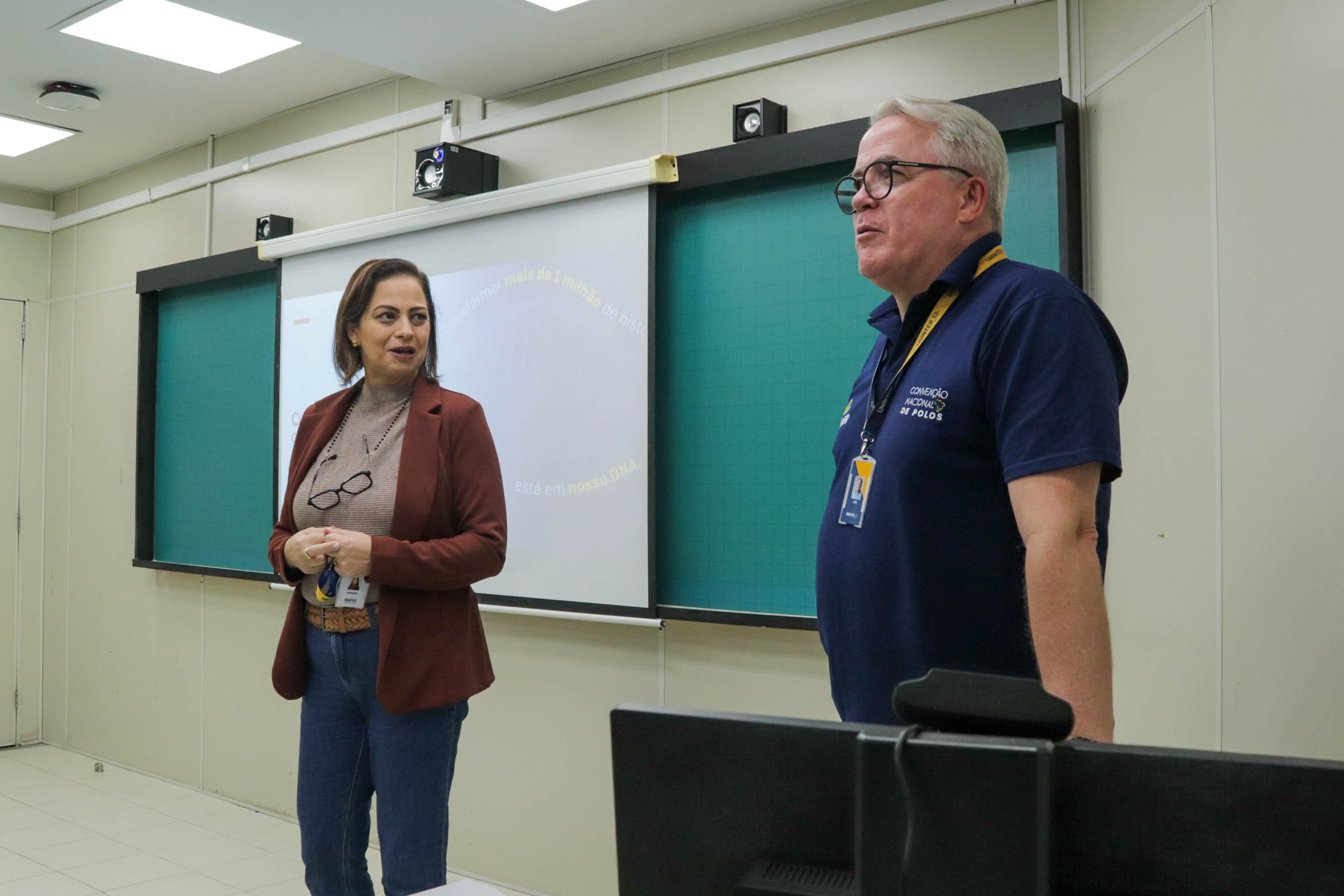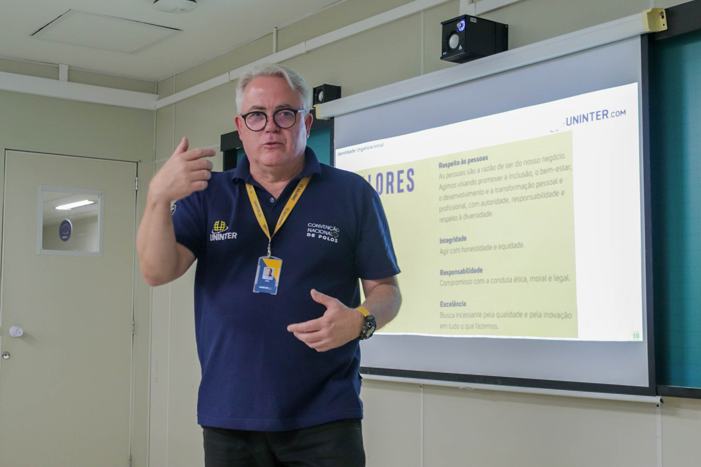 A cultura organizacional foi tema de uma palestra que Joel realizou para os jovens aprendizes da Uninter, na manhã de 30 de setembro de 2023. Na mesma tarde, a analista de Gestão de Pessoas Flávia Dal Negro também falou com os colaboradores a respeito de Recrutamento e Seleção, área que atua.