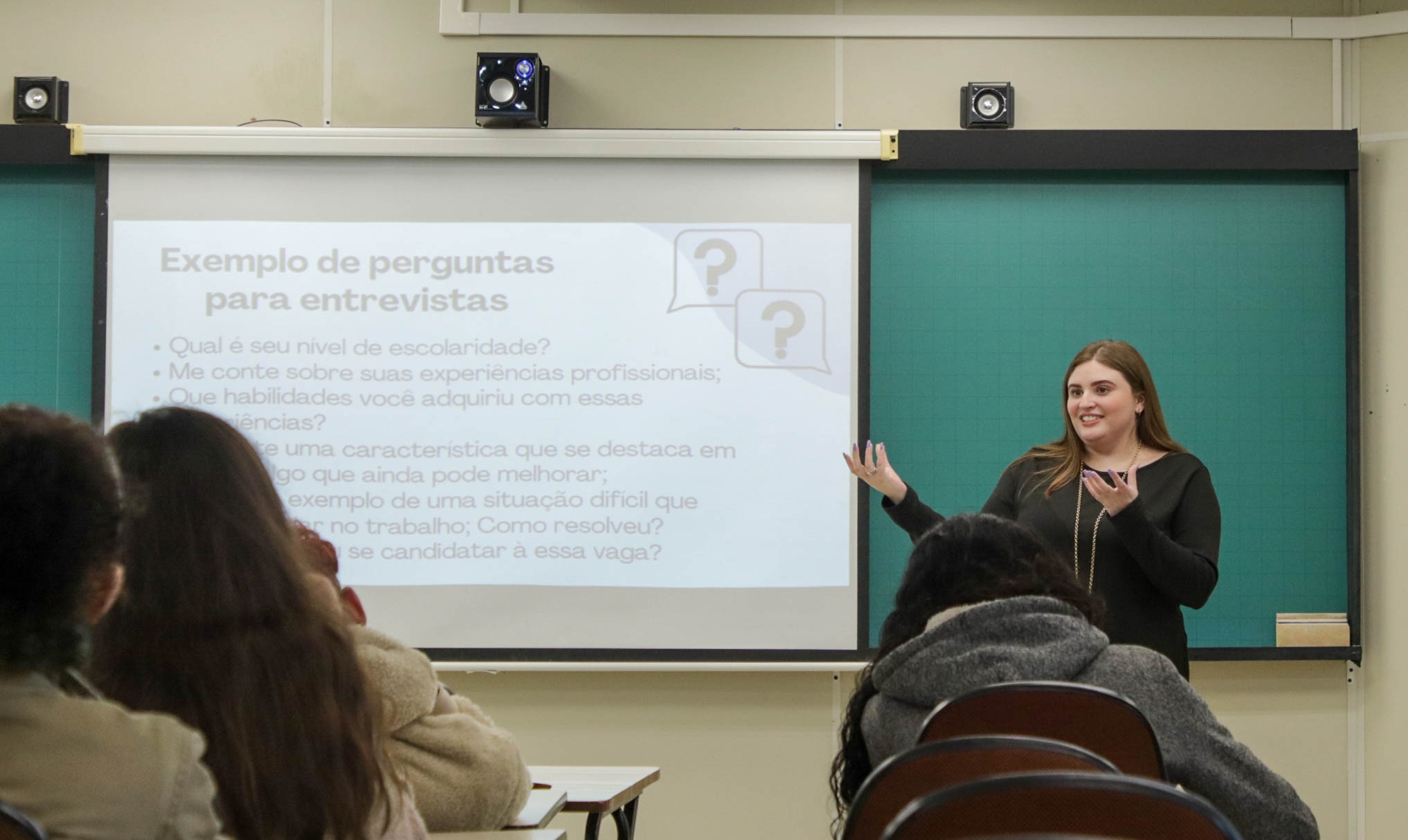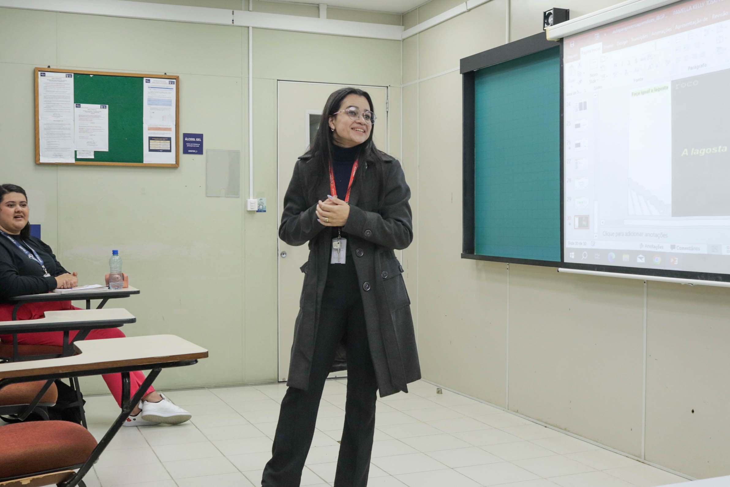 A analista preparou um conteúdo voltado para conceitos de recrutamento e as etapas de seleção e aprovação de um colaborador. “Eles [os jovens aprendizes] vão direto para as entrevistas, então é interessante que saibam como isso começa e da importância que cada etapa tem para o resultado final”, explica.