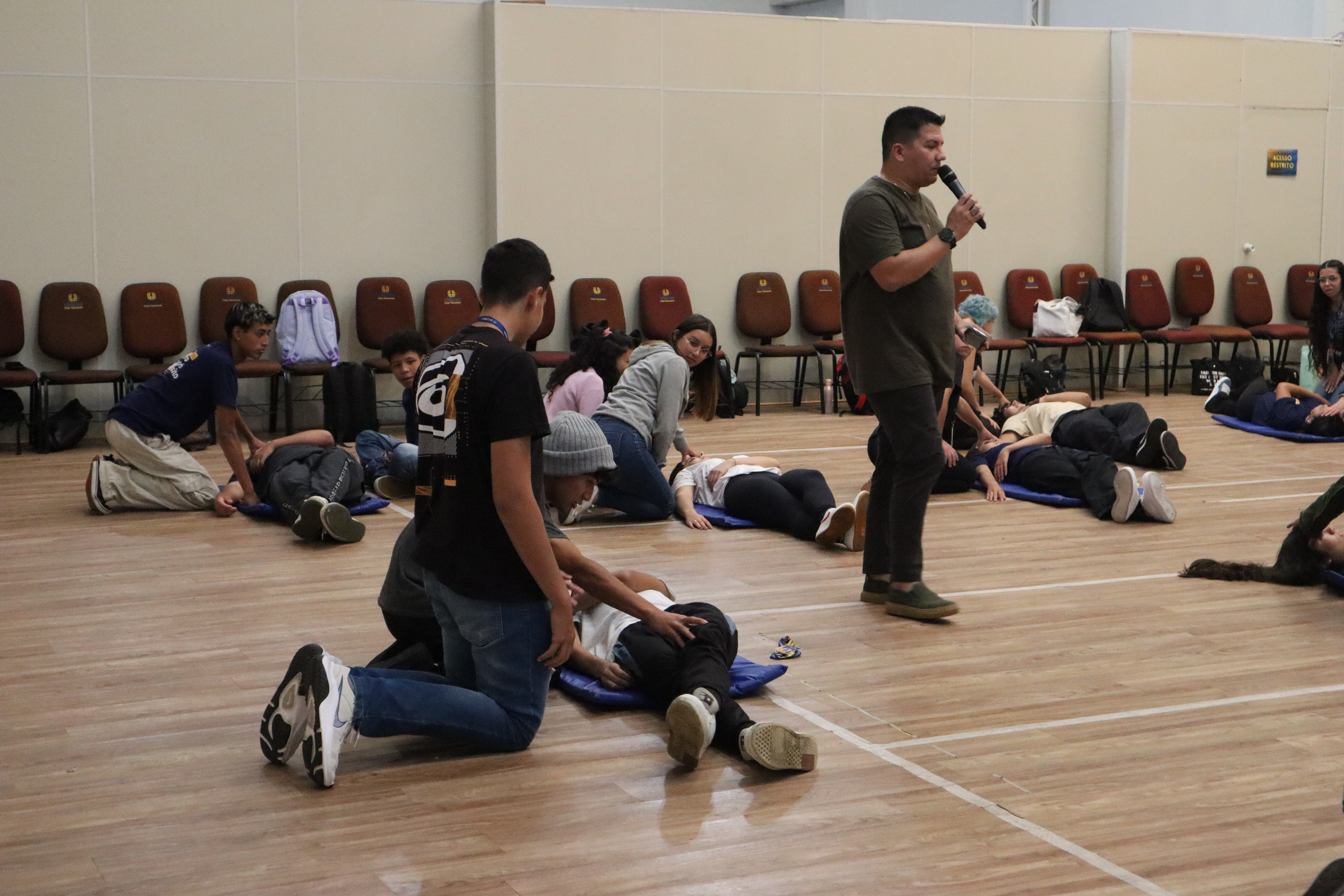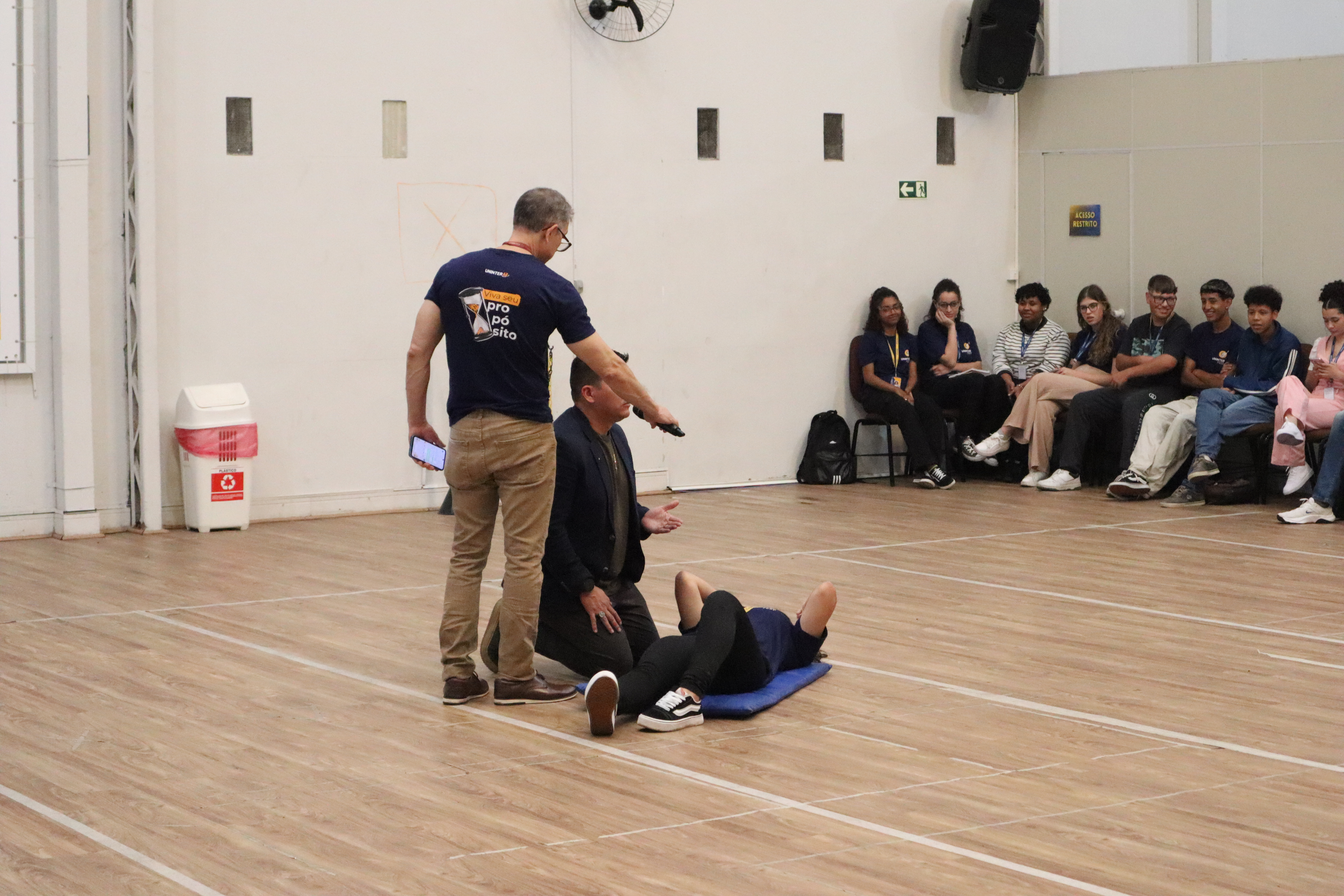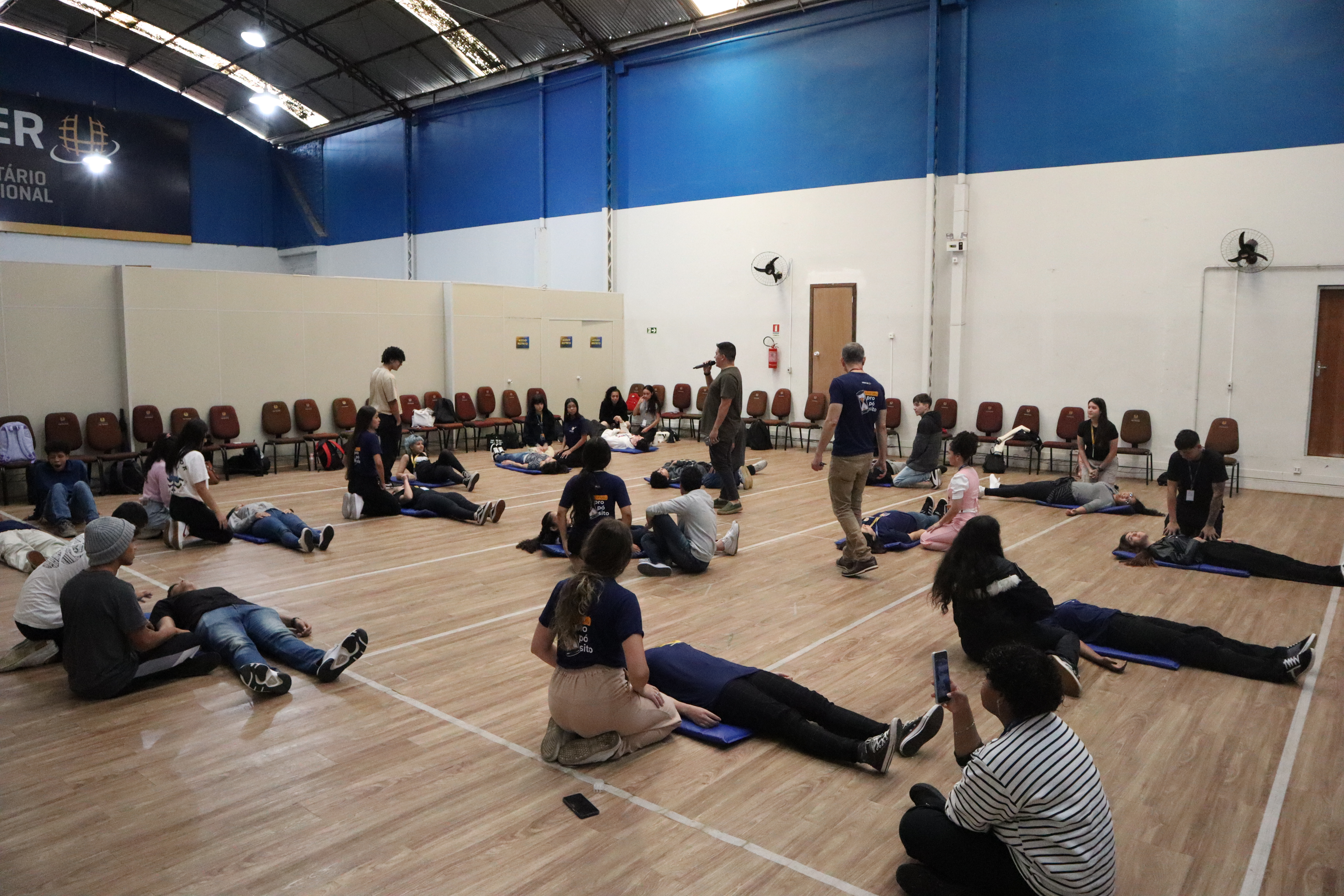 Durante 1h30, os jovens ouviram o profissional dar indicações sobre os atendimentos de primeiros socorros e esclarecer alguns treinamentos em situações emergenciais, além de desmistificar alguns procedimentos de conhecimento popular que não estão corretos.