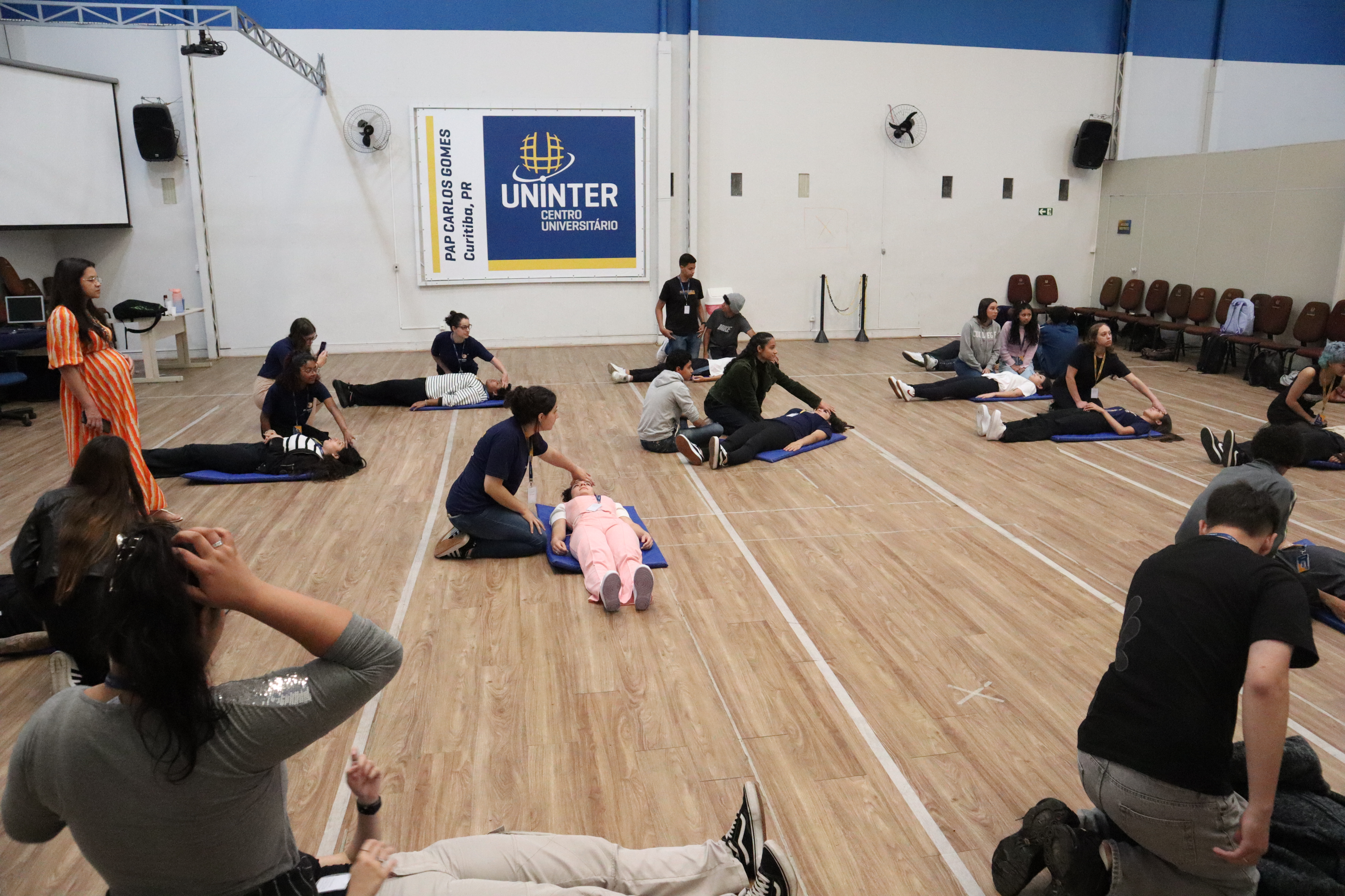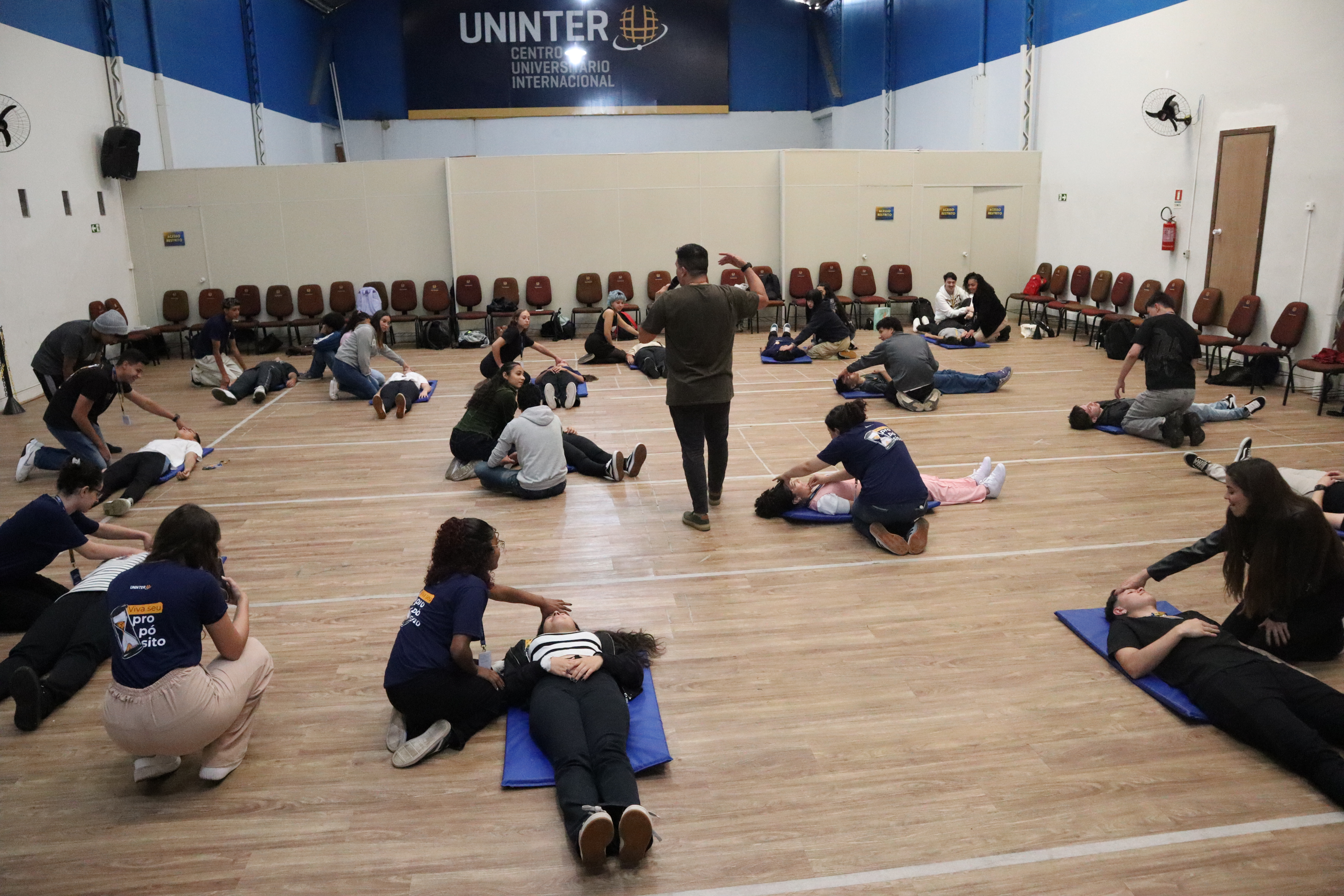 O IBGPEX, Instituto de Responsabilidade Socioambiental da Uninter, promoveu uma palestra aos jovens aprendizes da instituição sobre saúde e segurança. Os jovens se reuniram no ginásio do polo Carlos Gomes no dia 25 de outubro de 2024, para ouvir o socorrista e especialista em segurança pública, Jaime Lopes Cordeiro. Ao final da conversa, os colaboradores colocaram em prática um dos treinamentos de primeiro atendimento.