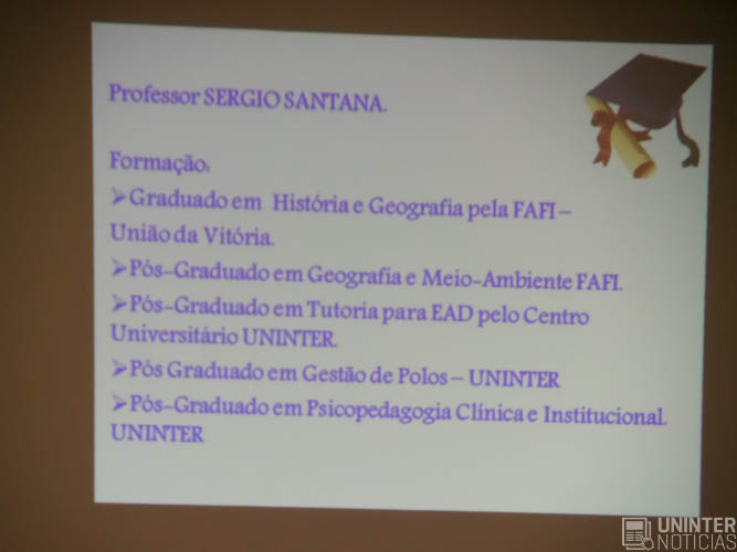 O evento foi ministrado pelo coordenador do polo, Sergio Santana. “O objetivo é apresentar aos estudantes as inúmeras possibilidades de formação que estão abertas no mercado, assim como disciplinas e oportunidades de carreira em cada curso, de forma a esclarecer dúvidas e contribuir com suas decisões já ao final do Ensino Médio”, explica.