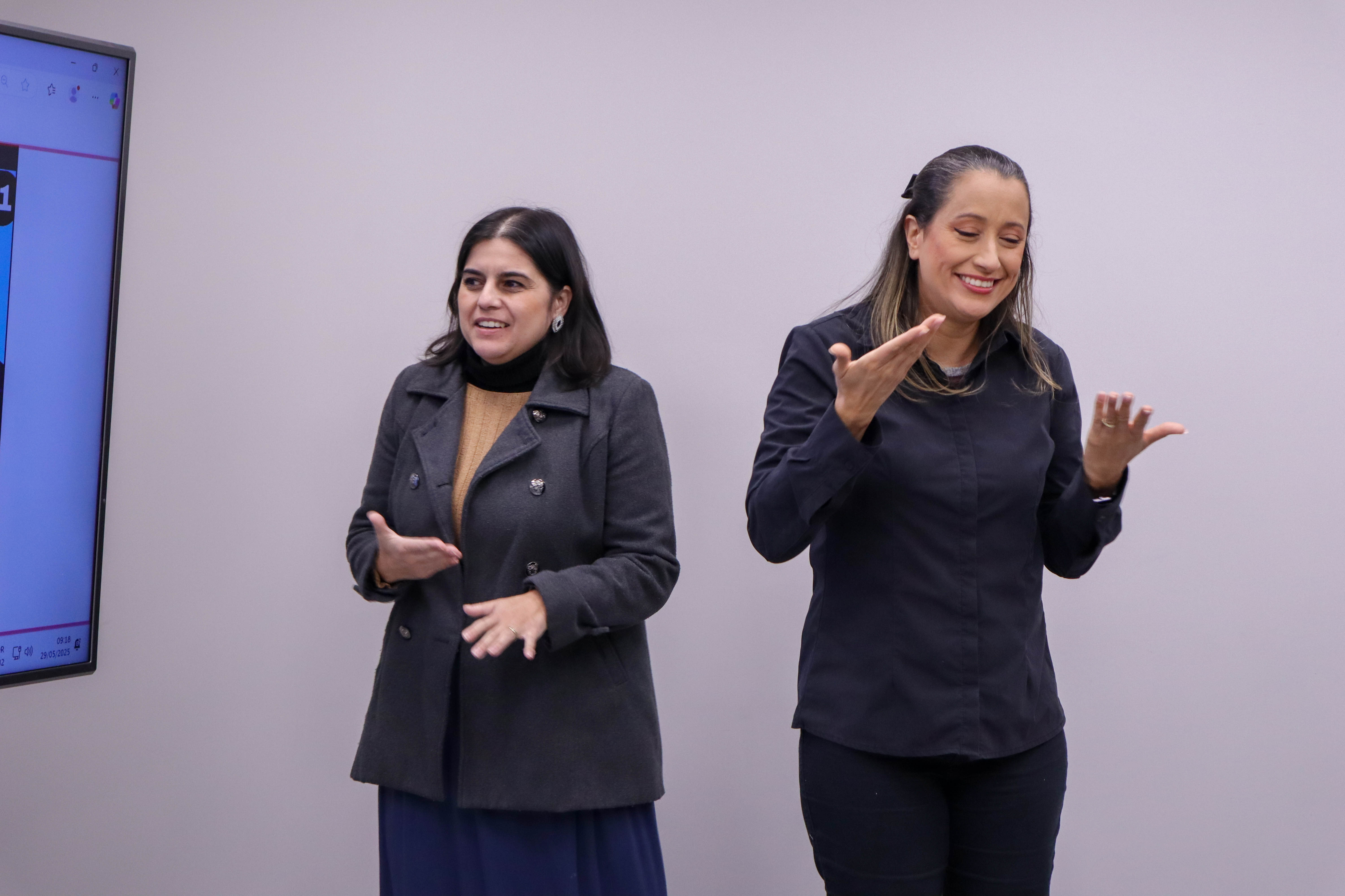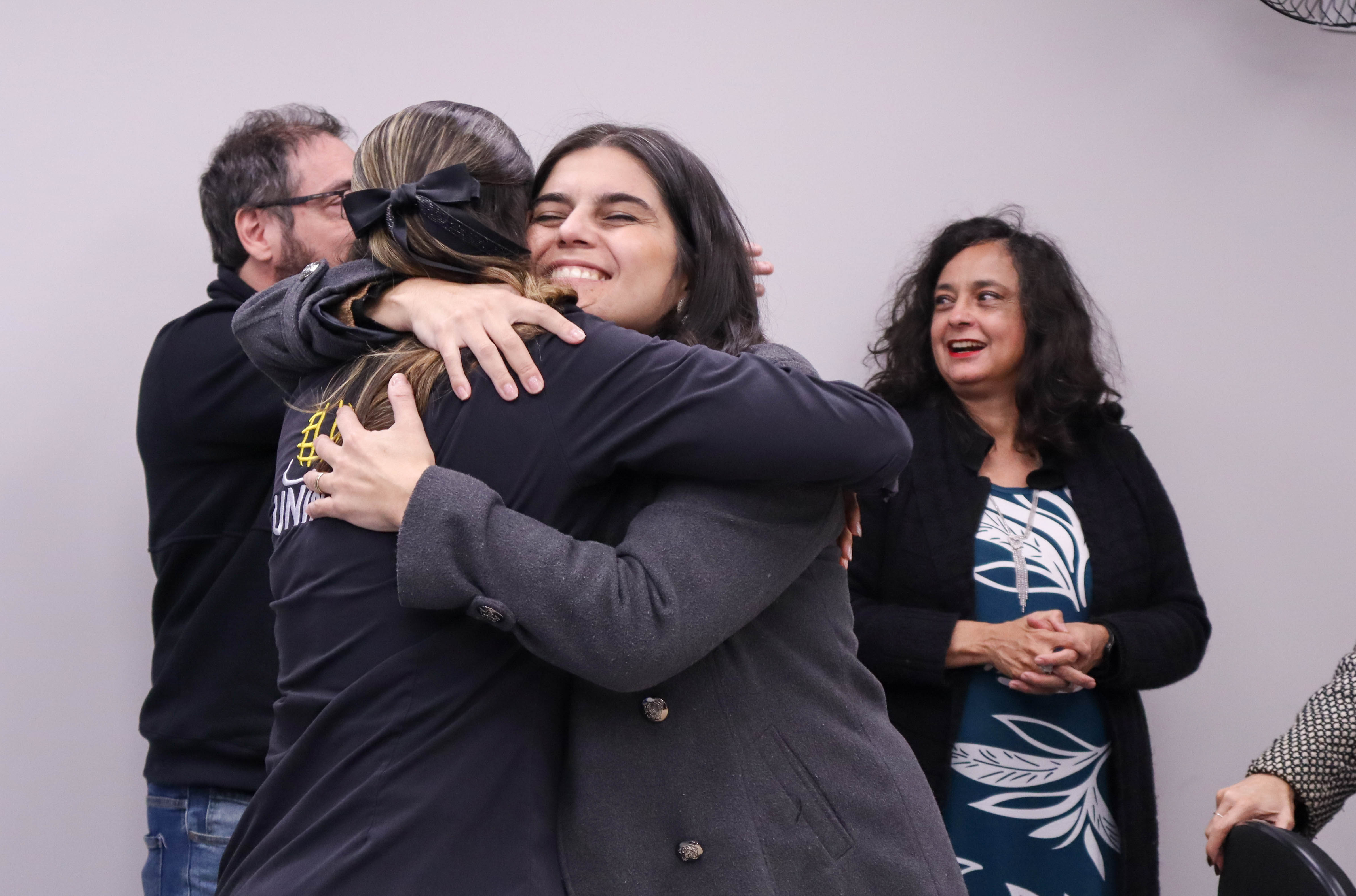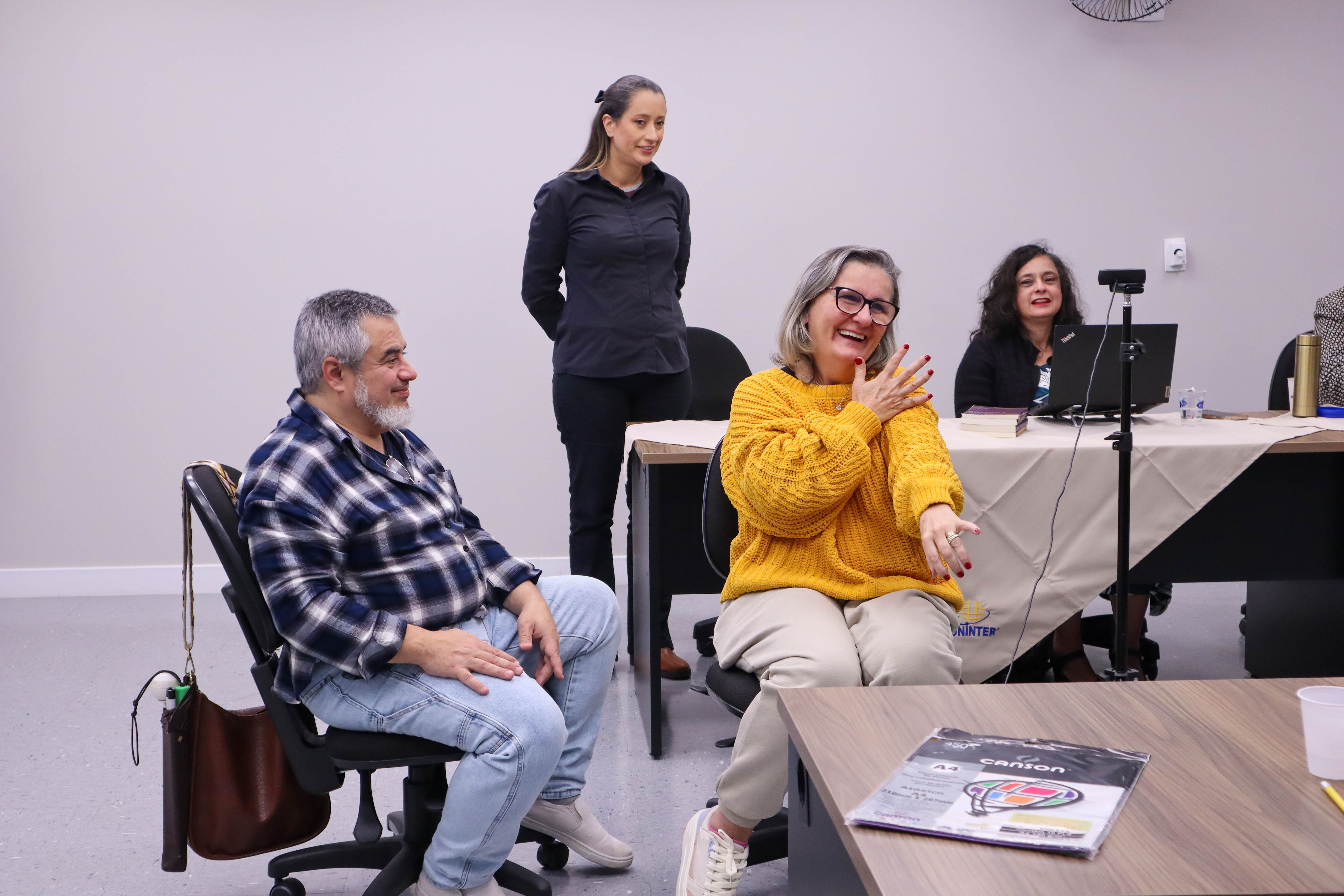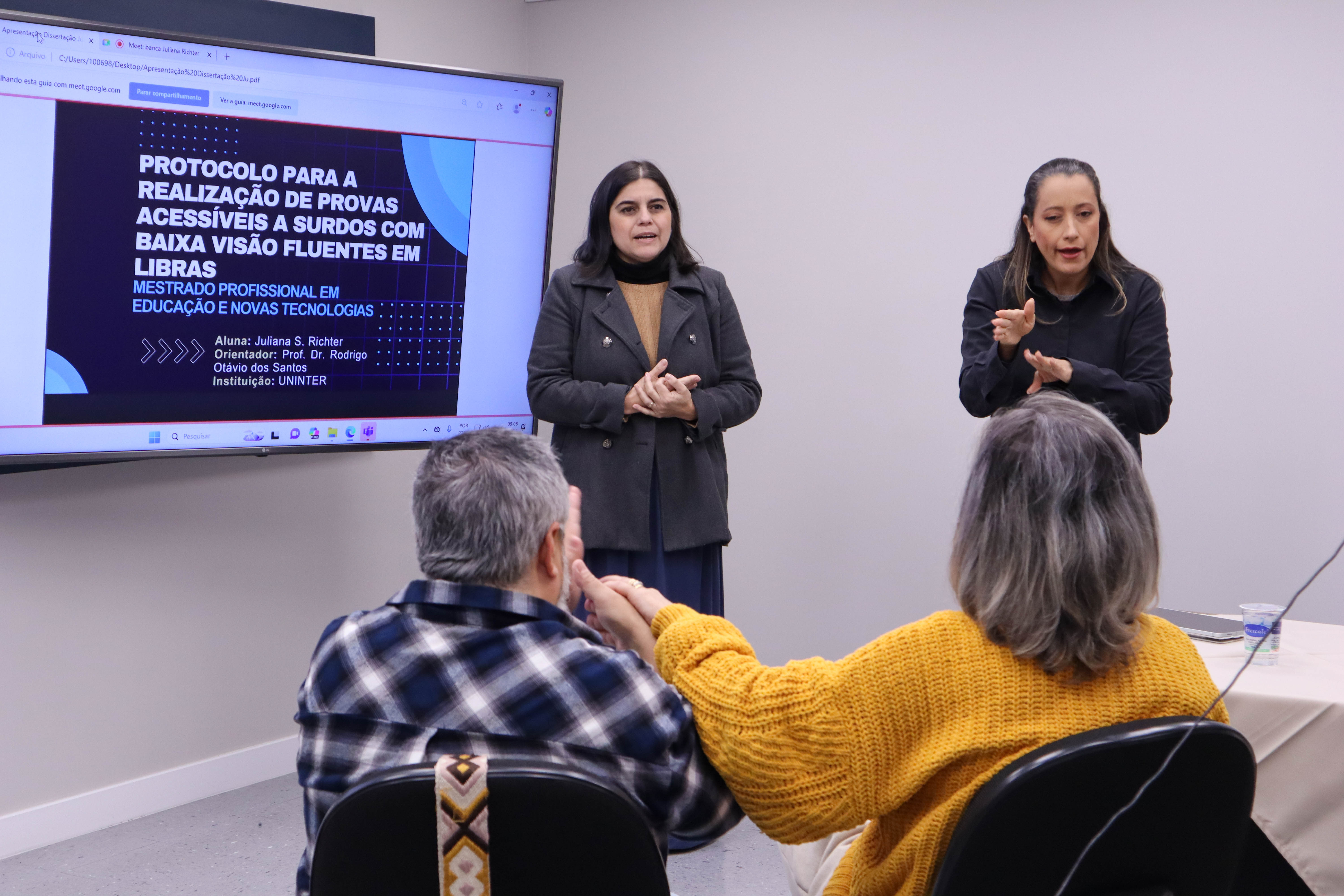 Amigos e familiares de Juliana puderam acompanhar a defesa de forma presencial e remota, com a colaboração das intérpretes de LIBRAS dos Estúdios Uninter, Daniela Truccolo e Luana Ruth de Souza.