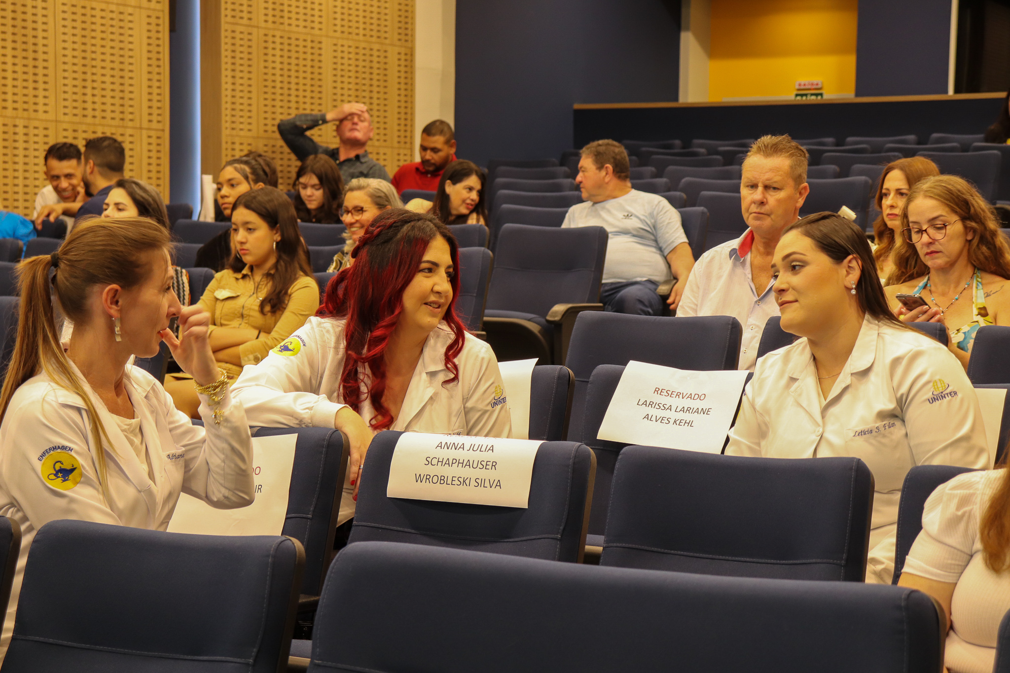 Realizaram a abertura da cerimônia o pró-reitor de Graduação do centro universitário, Rodrigo Berté, o diretor da Escola Superior de Saúde Única (ESSU), Cristiano Caveião, e a coordenadora do curso de Enfermagem, Deisi Benedet. Além do professor Alessandro Castanha da Silva, cerimonialista da manhã de sábado.