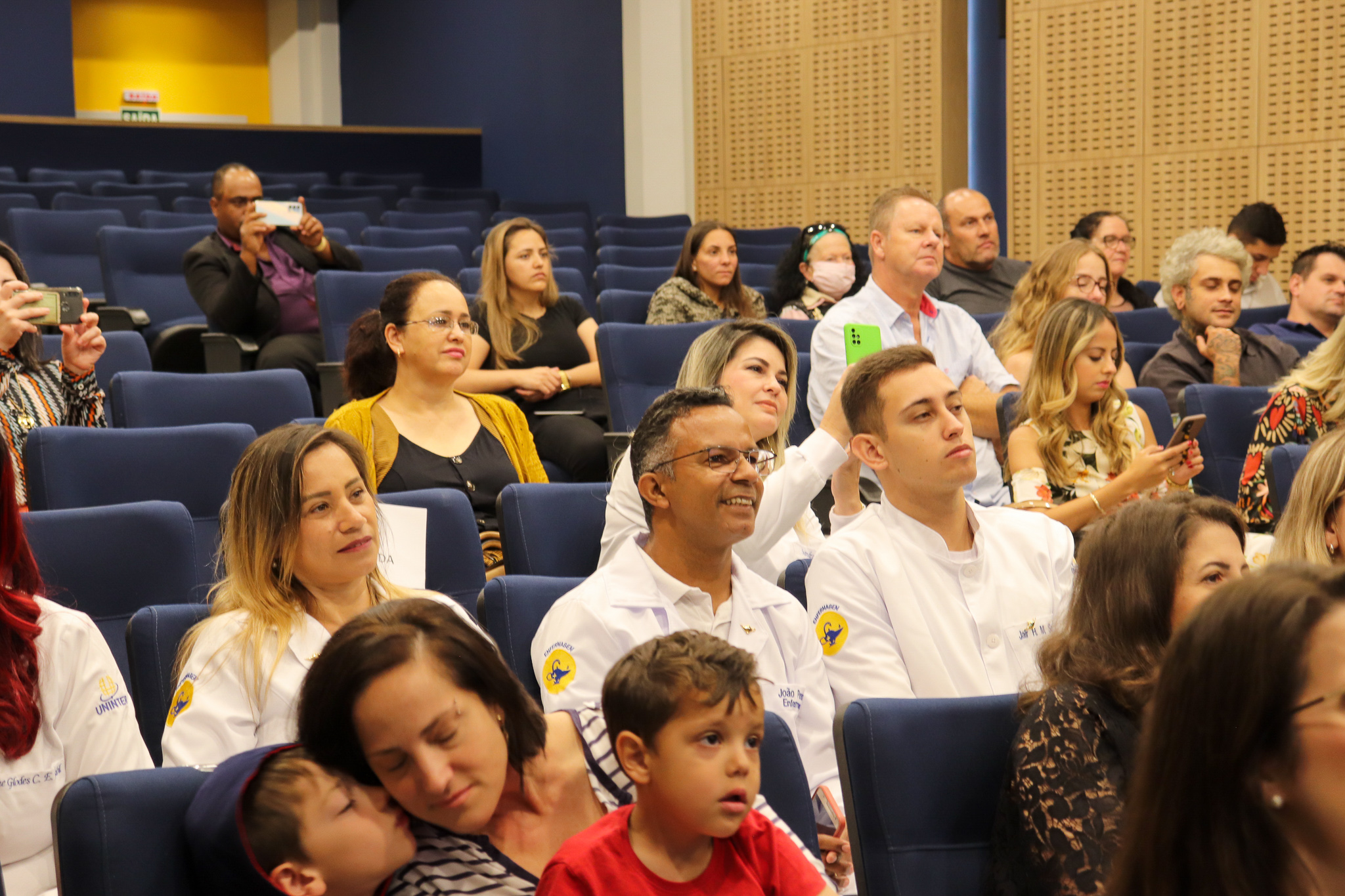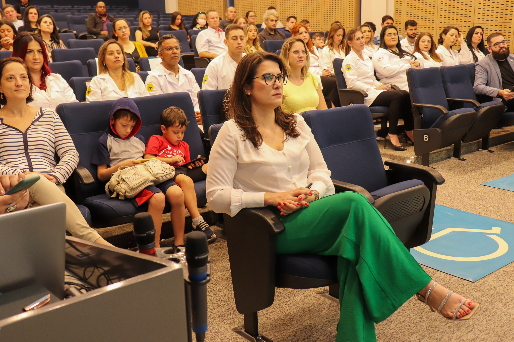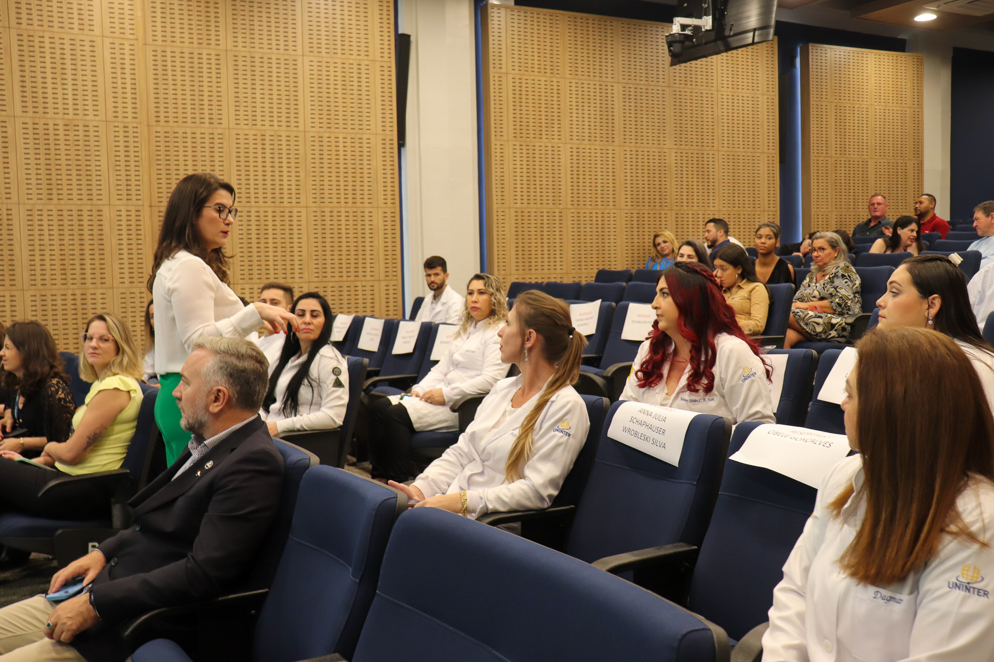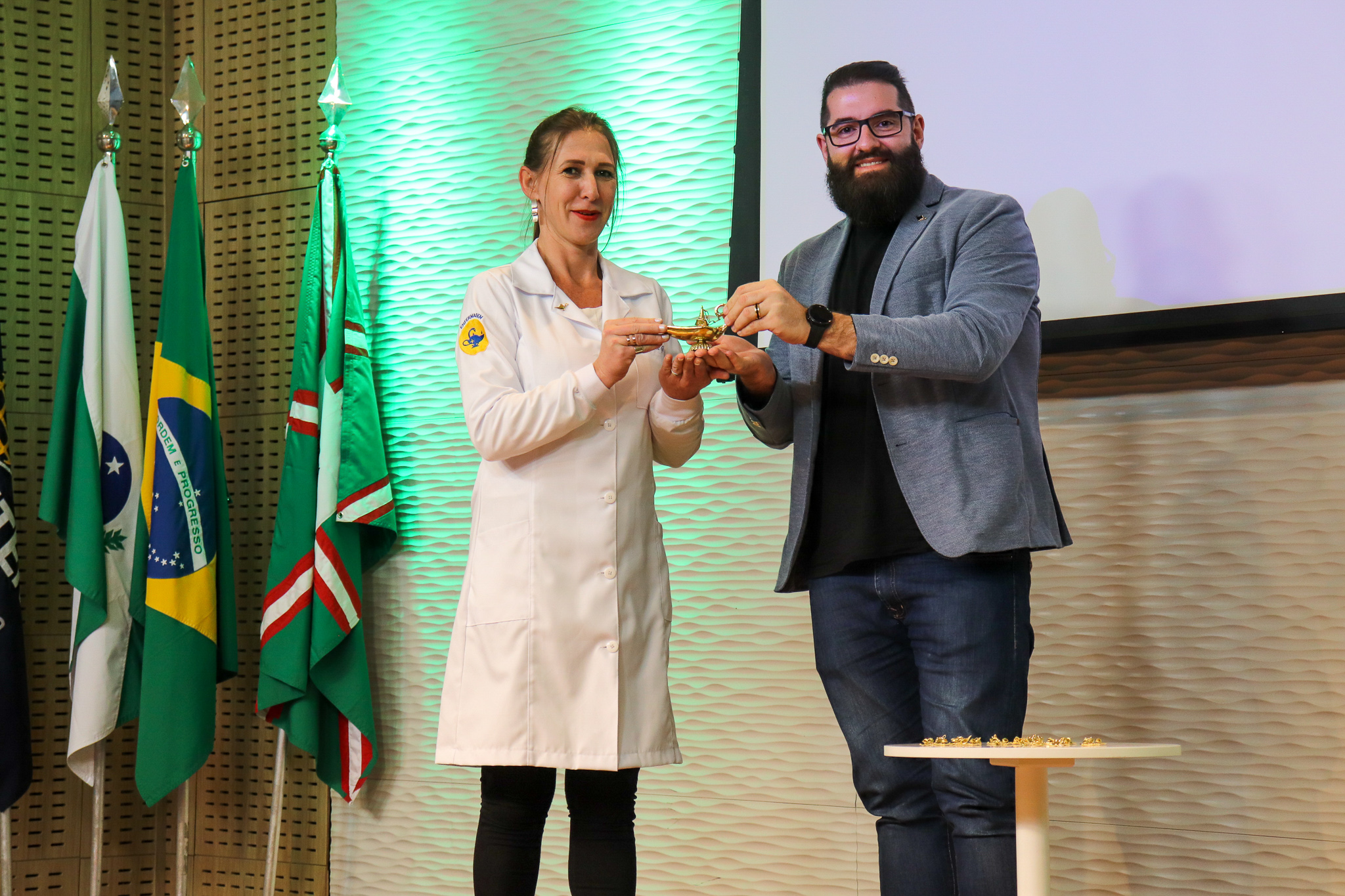 “Essa cerimônia representa um resgate, uma transição, e para relembrar a importância do estudo, desse comprometimento, do respeito ao paciente, mas aqui somos uma profissão que é uma arte, uma ciência, uma disciplina. Temos todo um lado de amor ao próximo, da humanização, mas nós também temos toda uma cientificidade, que é representada nesse rito pela luz da lâmpada. É a luz do conhecimento que vai norteá-los nessa prática de cuidado ao paciente”, afirma Deisi.