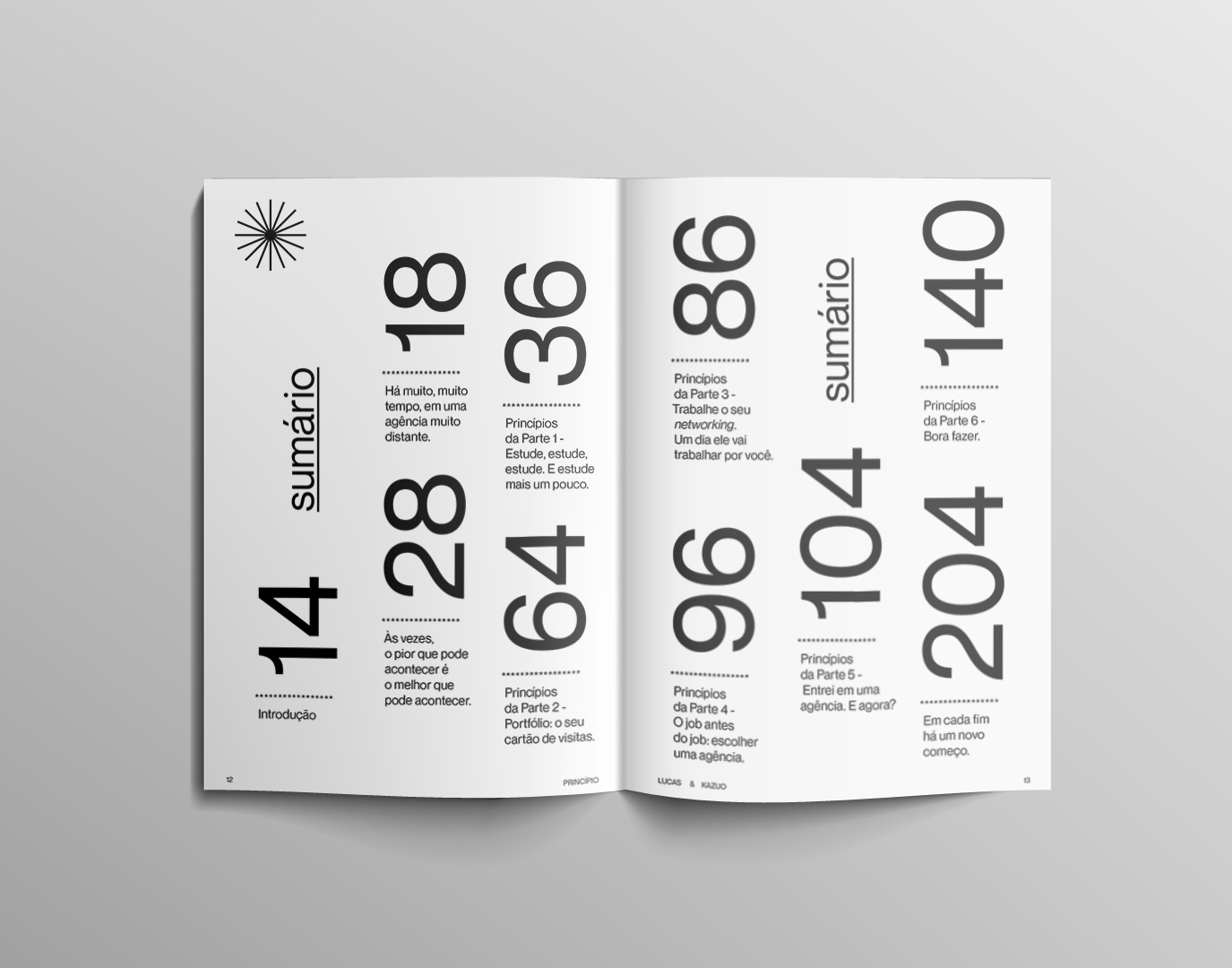 O livro é voltado para alunos de escolas de criação, estudantes, iniciantes de cursos técnicos e áreas de comunicação e marketing, sendo dividido em seis capítulos e reunindo 128 princípios. Os preceitos desenvolvidos por Lucas e Alexandre vieram de quase 20 anos de carreira trazendo dicas sobre cursos e técnicas, explicações de como montar um portfólio, dicas de relações no mercado publicitário e mercado de trabalho, informações de como obter sucesso em agências e também diversas dicas práticas para criar e montar projetos.