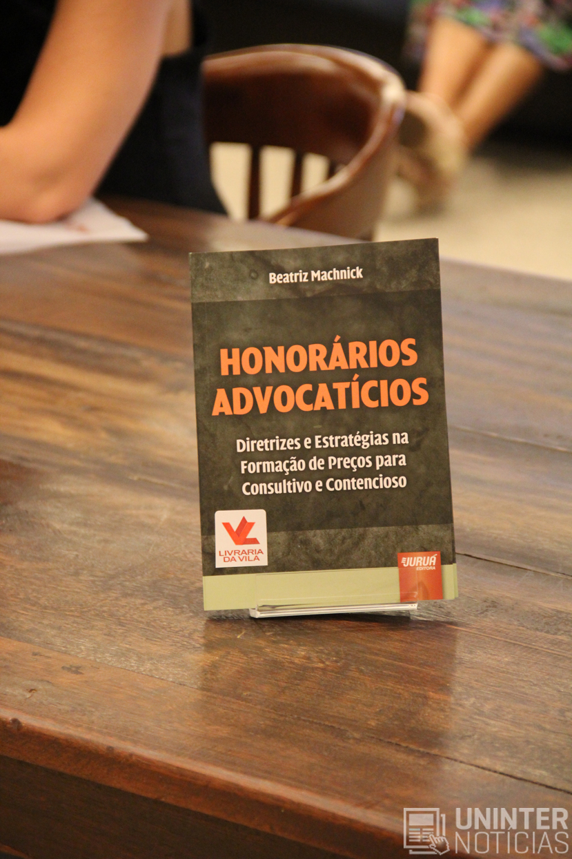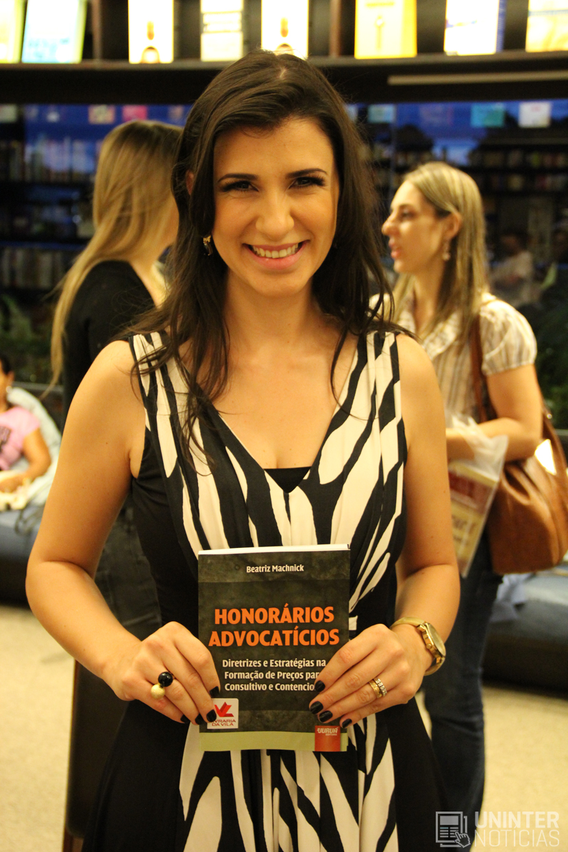 A egressa do curso de Ciências Contábeis do Centro Universitário UNINTER, Beatriz Machinick, lançou, no dia 24 de fevereiro, na Livraria da Vila no Shopping Pátio Batel, em Curitiba (PR), seu primeiro livro Honorários Advocatícios: Diretrizes e Estratégias na Formação de Preço para Consultivo e Contencioso. O livro trata da descrição de três fórmulas criadas por Beatriz para honorários advocatícios, que é resultado da sua experiência em finanças. Leia mais. Segundo ela, aproximadamente 200 pessoas foram ao lançamento. “O evento foi ótimo”, afirmou. Beatriz já contou que o livro terá a sua segunda edição e será lançado até julho do próximo ano.