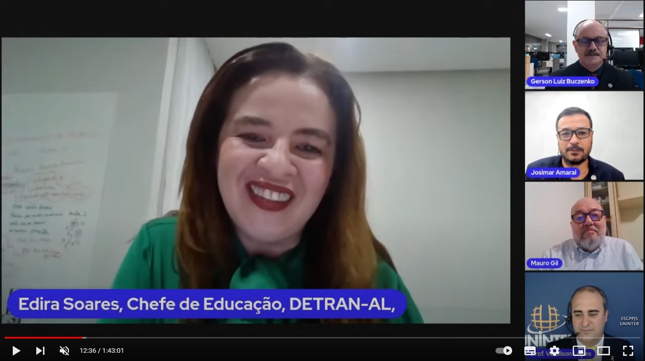 O evento com transmissão ao vivo no Canal do Youtube da Escola Jurídica nos dias 9 (clique aqui) e 10 de maio (assista aqui) de 2023, teve a presença convidados que compartilharam seus conhecimentos e experiências com o público. Profissionais e especialistas que apresentaram suas perspectivas e insights sobre as melhores práticas em segurança viária e mobilidade urbana. Os convidados participantes foram o diretor do Portal do Trânsito e especialista, Celso Mariano; o vice-presidente do ONSV, Mauro Gil Meger; a servidora pública e analista de trânsito do Departamento Estadual de Trânsito de Alagoas Edira Soares; a professora da Universidade Federal de Santa Catarina (UFSC) Irene Rios e os Observadores Certificados do ONSV Francisco Garonce e Josimar Amaral.