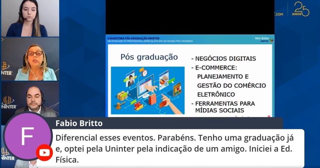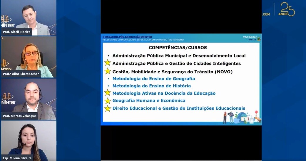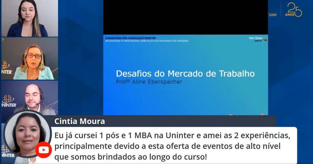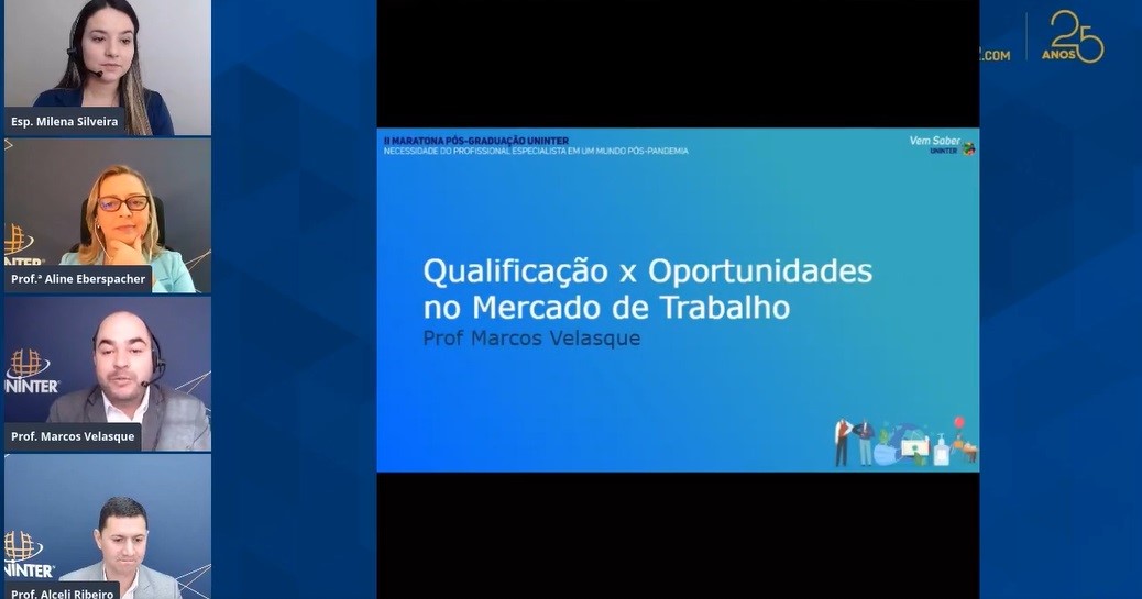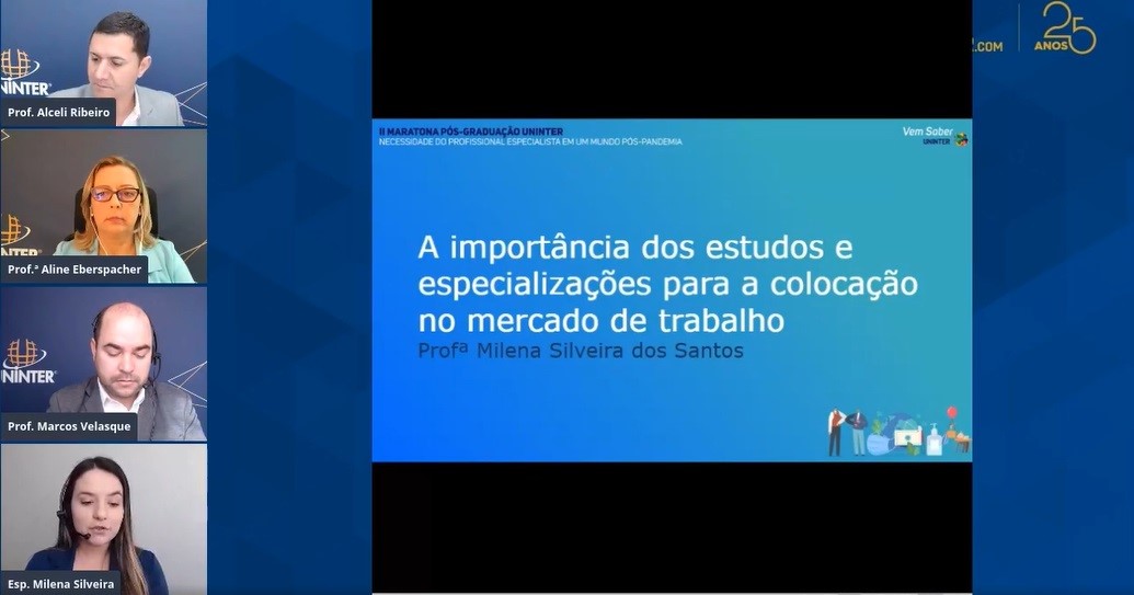 Os profissionais debateram sobre O profissional especialista: desafios no contexto pós-pandemia durante a II Maratona de Pós-graduação Uninter, realizada no dia 29.mai.2021, por meio da página do Facebook e canal do Youtube do Grupo Uninter.