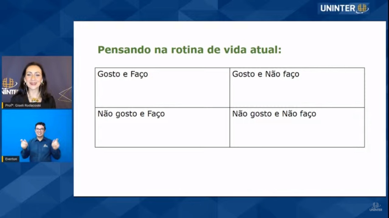 Na última quarta-feira, 14.abril.2021, a Escola de Saúde, Meio Ambiente, Sustentabilidade e Humanidade da Uninter promoveu uma live especial com a professora Giseli Cipriano Rodacoski, debatendo sobre como gerenciar os elementos que levam à motivação, e como manter essa conexão a médio e longo prazo.