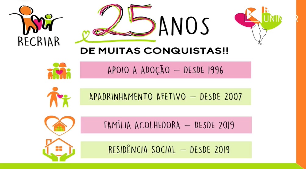 É de sua capital Curitiba a primeira instituição apoiadora do Paraná, sendo também a quarta do Brasil. A Recriar: Família e Adoção nasceu em 1996 como um grupo de apoio à adoção e carrega em sua história “o DNA de abrir fronteiras, abrir novos campos de atuação no cuidado da criança e do adolescente em vulnerabilidade”, conta a psicóloga e coordenadora técnica, Ana Lucia Cavalcante.