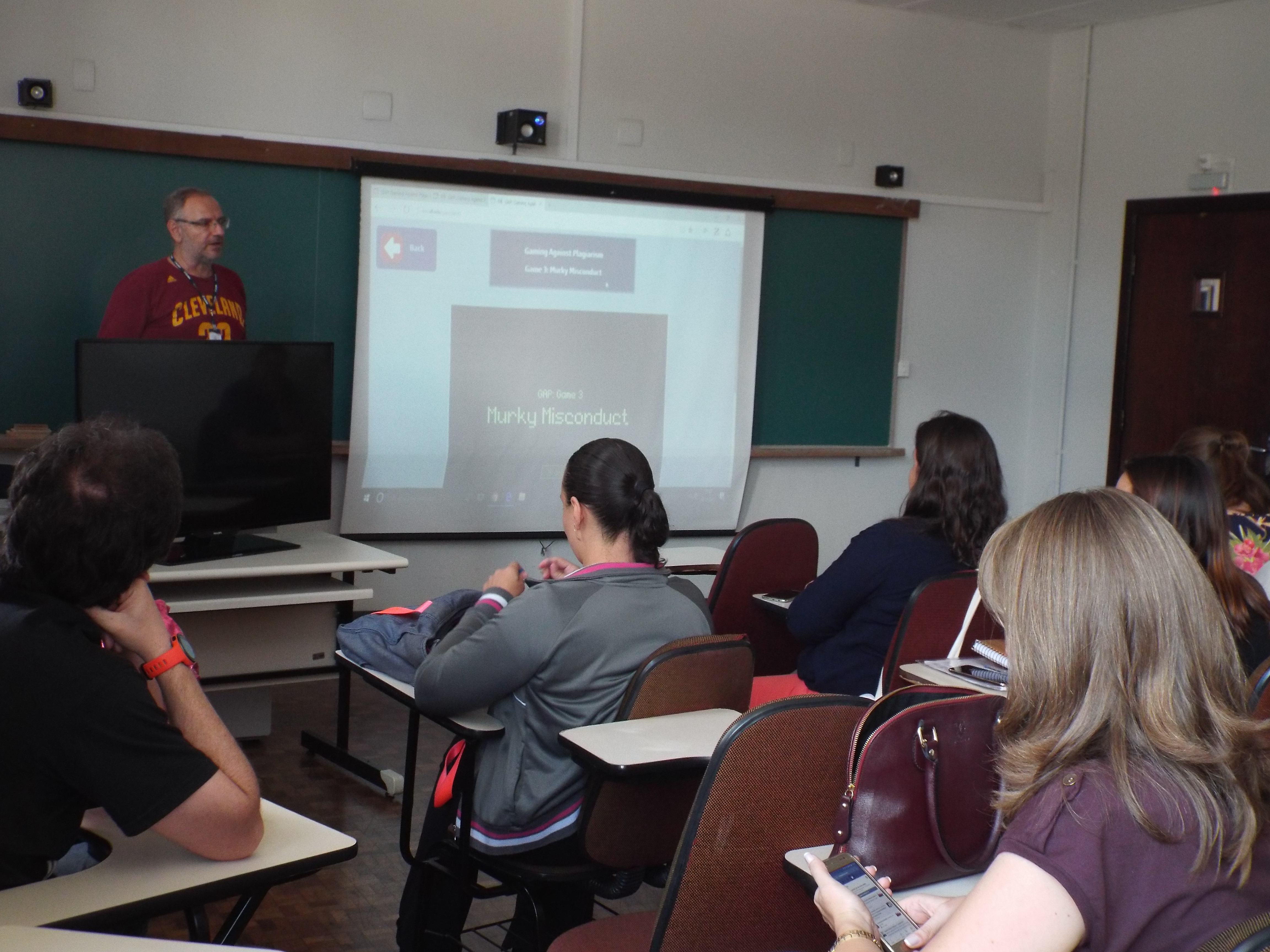 Uma aula fora do tradicional é o que os mestrandos e professores do Mestrado em Educação e Novas Tecnologias da Uninter estão tendo neste fim de ano. Nos três encontros já realizados para esta finalidade, as aulas são para discutir como os games podem ajudar no processo de ensinar e aprender. A primeira aula foi sobre gameficação e a segunda abordou as teorias da aprendizagem de game. O professor João Augusto Mattar Neto, que ministra as aulas, falou sobre Murky Misconduct, ou seja, como utilizar um jogo na prática educacional.