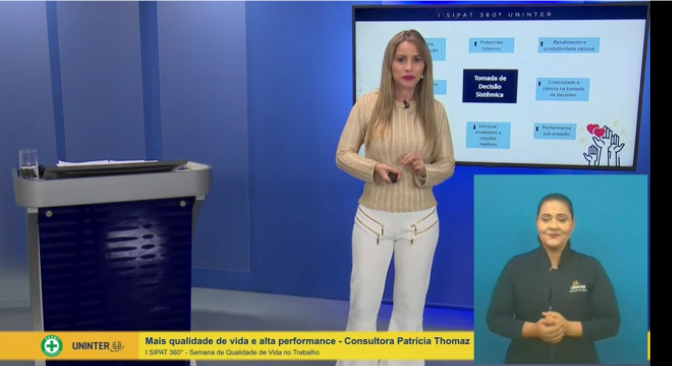 A instrutora de mindfulness, Patrícia Thomaz, conversou com os colaboradores da Uninter sobre a melhora na qualidade de vida e a alta performance no trabalho, durante uma das palestras que aconteceram na Semana Interna de Prevenção de Acidentes no Trabalho (SIPAT).