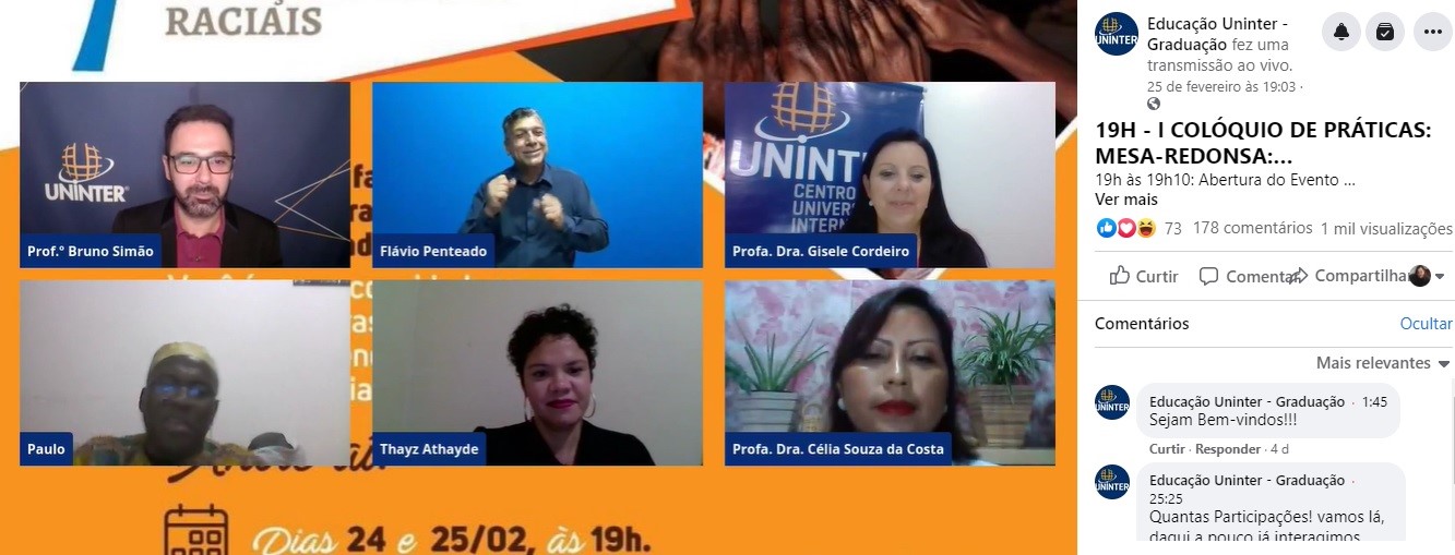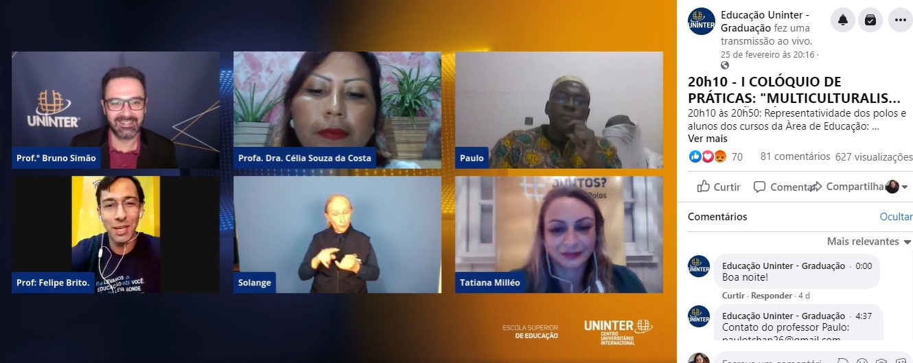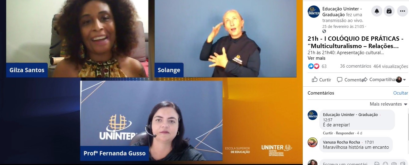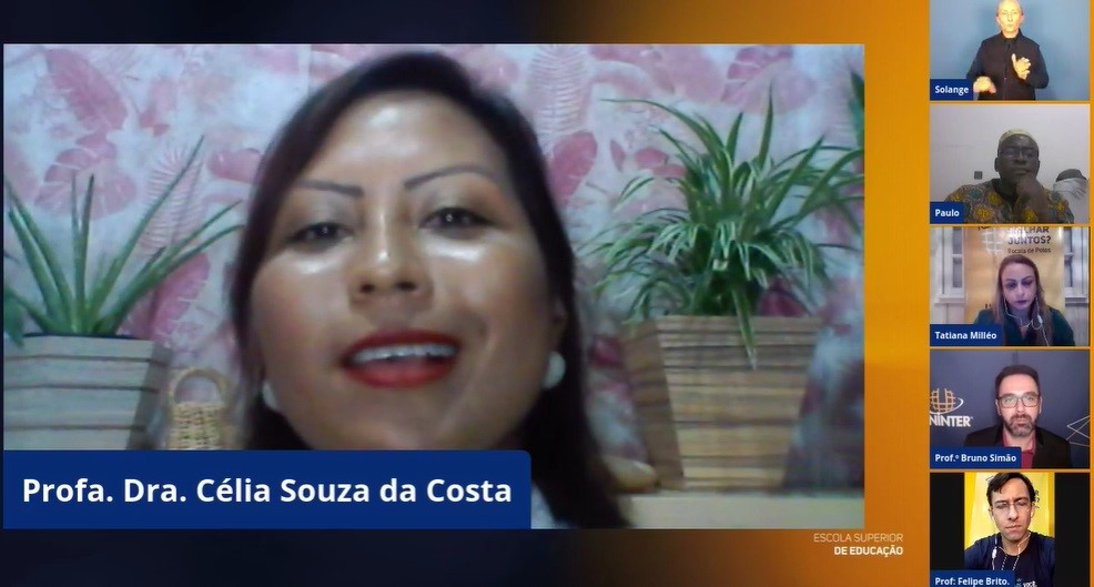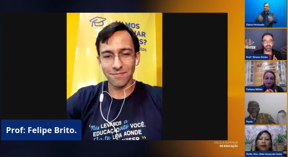 Os profissionais debateram sobre o assunto no primeiro bloco da segunda noite do 1º Colóquio de Práticas, transmitido ao vivo no dia 25.fev.2021, na página da área de Educação da ESE. No segundo bloco, o bate-papo seguiu com a participação da professora Tatiana Milléo, do polo de Guaratuba (PR), e do professor Felipe Brito, dos polos catarinenses de Itajaí, Navegantes e Balneário Camboriú. O evento foi encerrado com um momento cultural entre a professora Fernanda Gusso, da ESE, e a psicopedagoga Gilza Santos, que atua com literatura infanto-juvenil e contação de histórias.