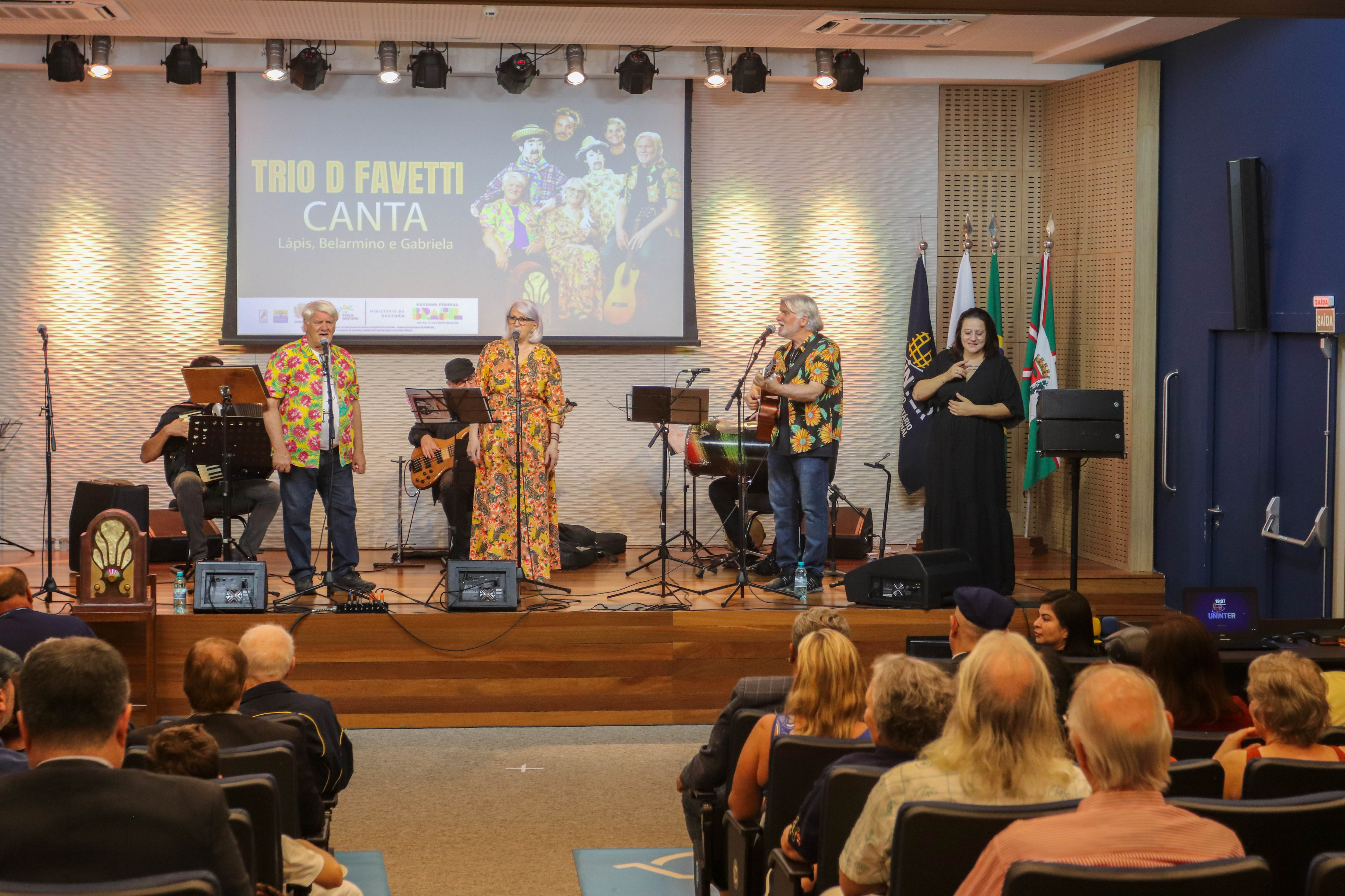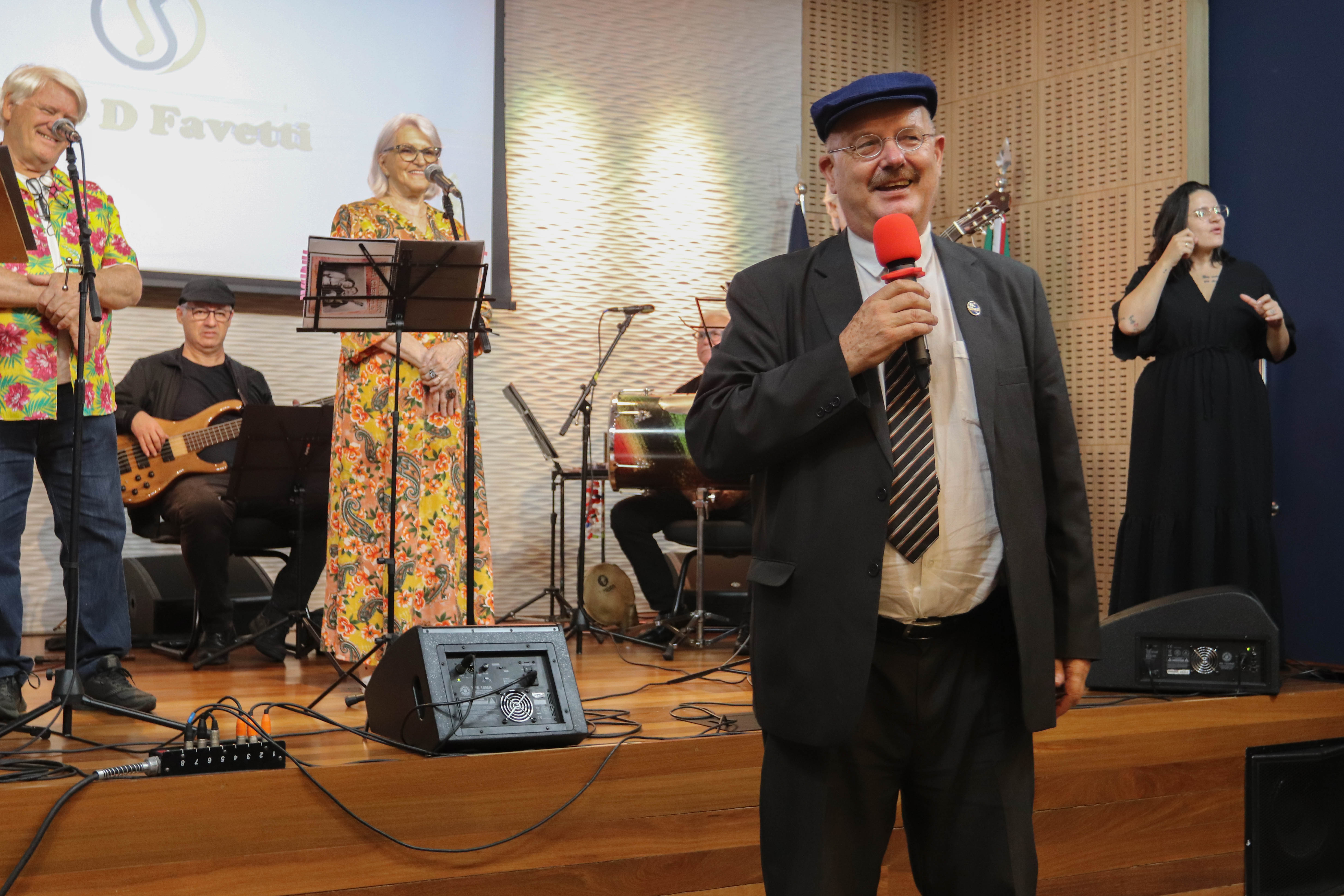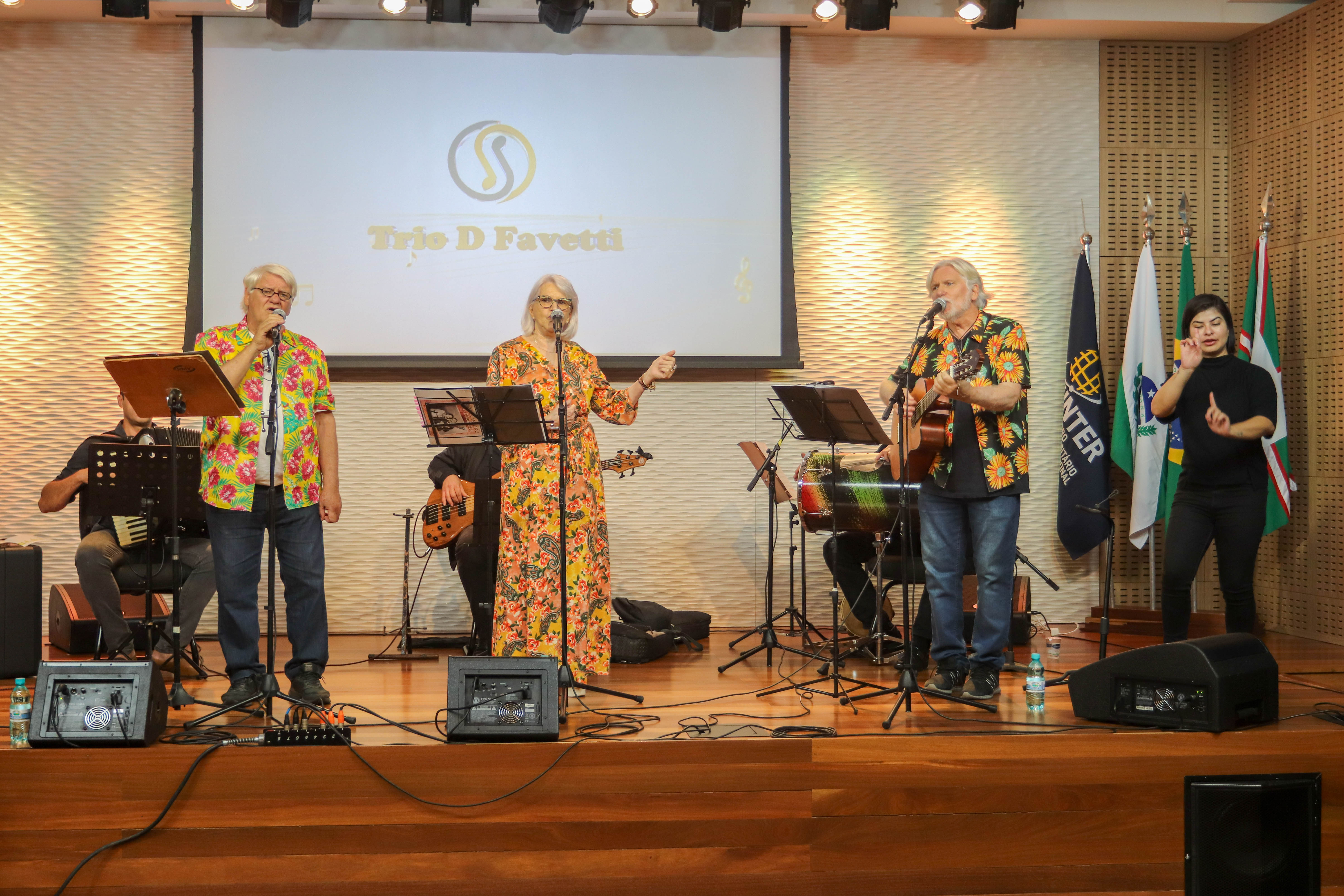 “O CD que tenho do Trio D Favetti já está até furado, de tanto que eu ouço”, declarou o professor Jorge Bernardi, vice-reitor da Uninter, na abertura do show da banda, que aconteceu no auditório Gilson Picler, na sede Garcez, no dia 13 de maio.