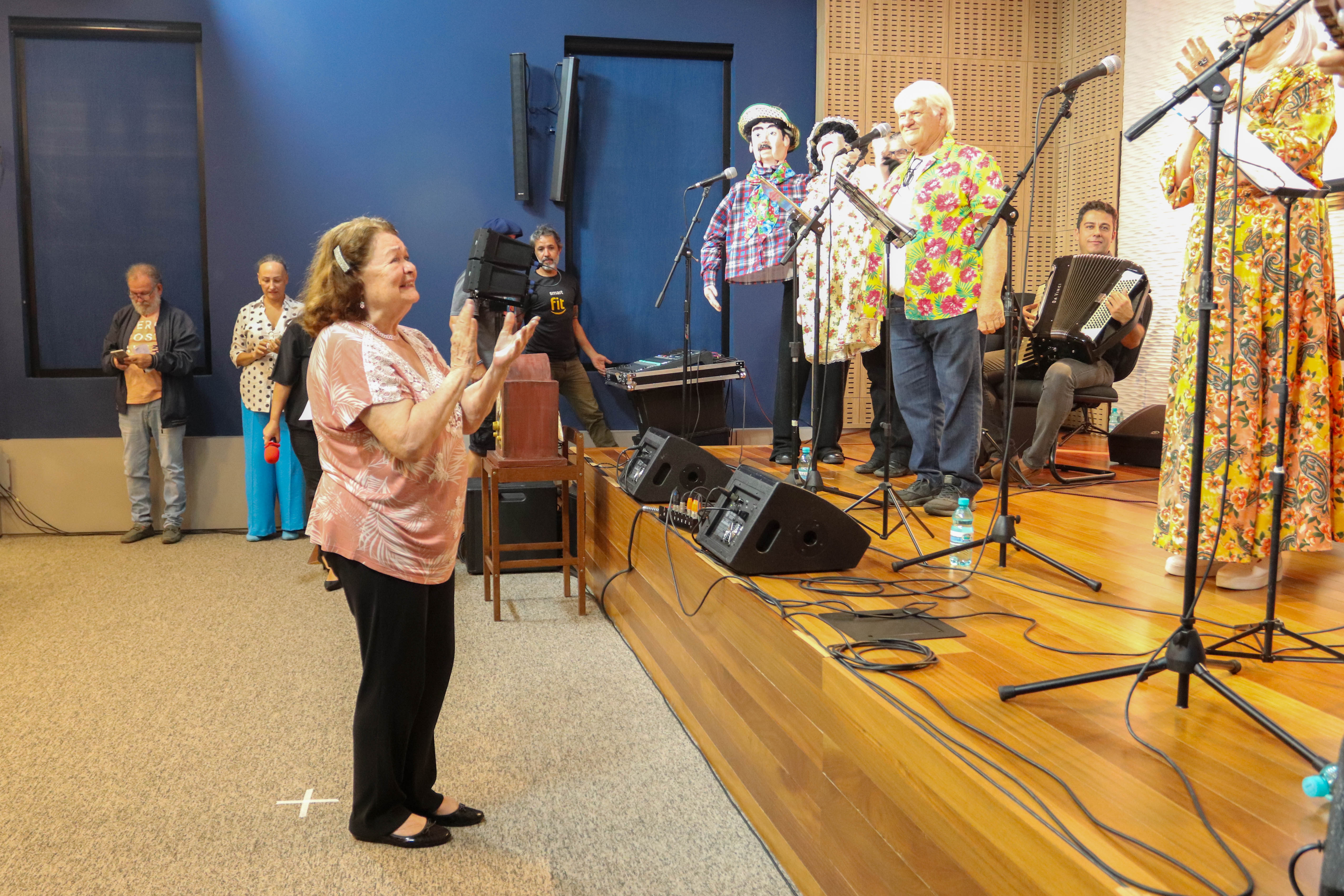 Na turnê atual, o grupo canta Lápis, Belarmino e Gabriela, compositores de Curitiba que marcaram gerações. “Muito obrigada por essa lembrança tão linda”, emocionou-se a irmã do artista Lápis, dona Mides, que fez questão de assistir à apresentação na primeira fileira.