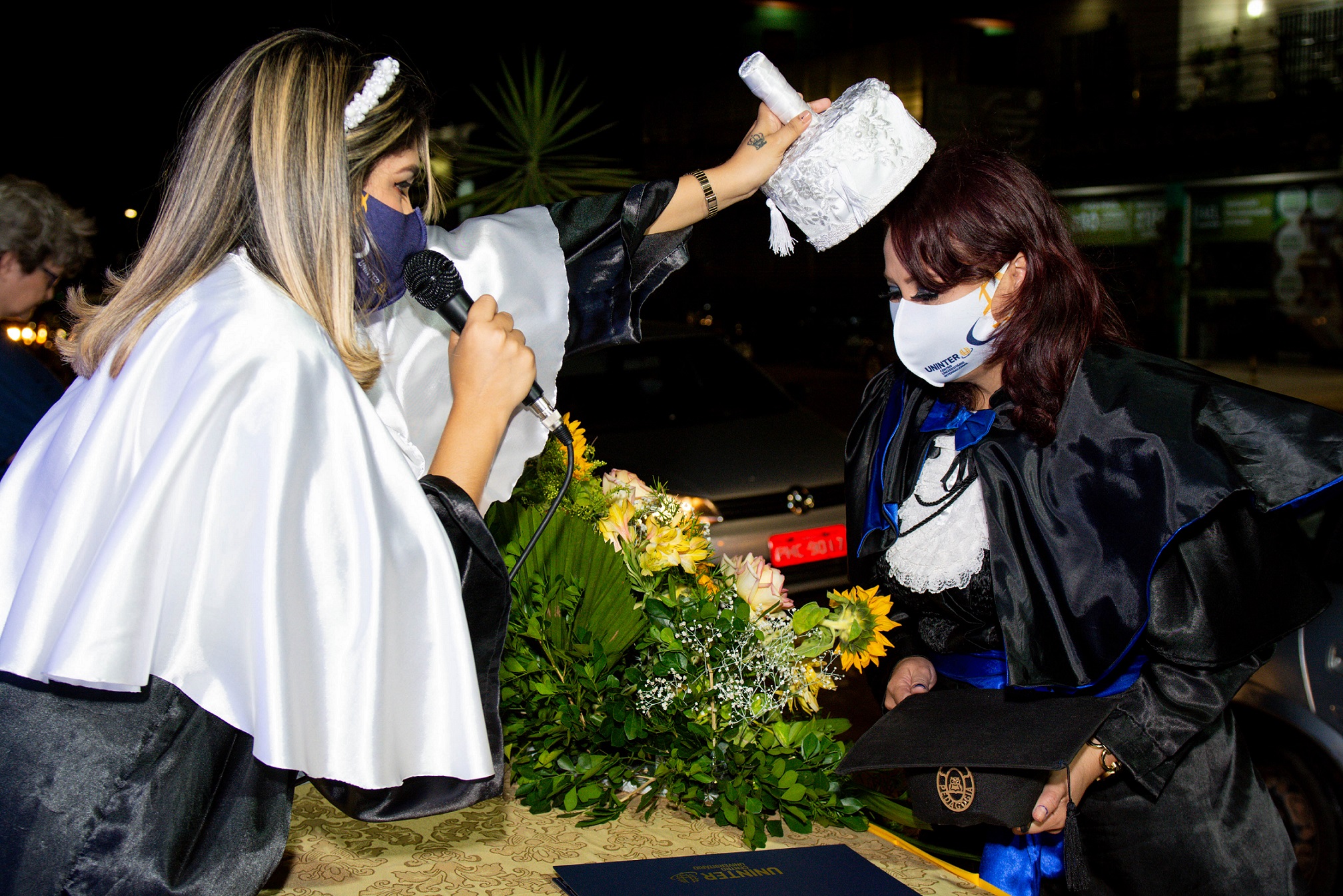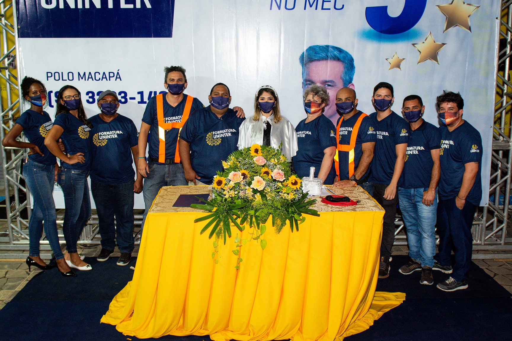 A solenidade ocorreu em 26.set.20, com a colação de grau em nove cursos: Pedagogia, Artes, História, Matemática, Processos Gerenciais, Secretariado, Serviços Jurídicos e Notariais, Comércio Exterior e Engenharia Elétrica.