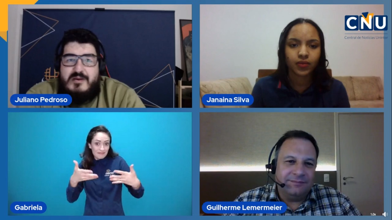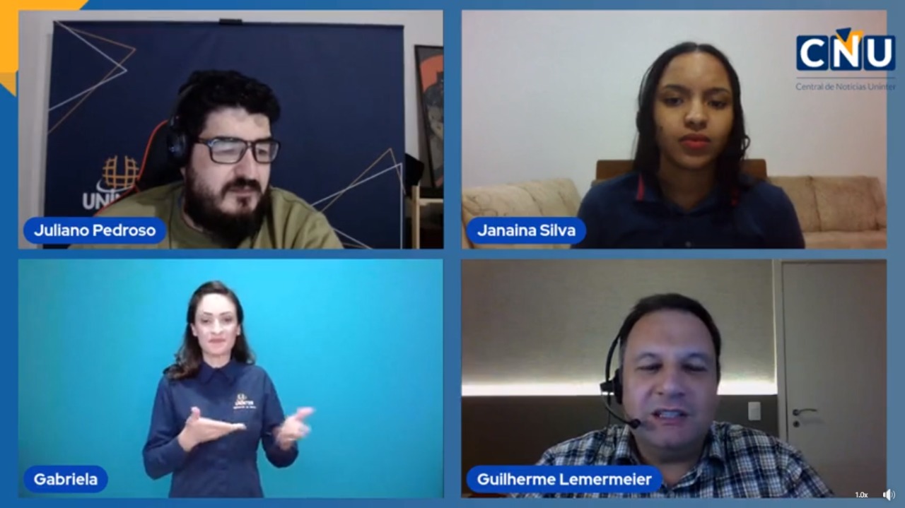 Janaina contou sobre o projeto de iniciação científica do qual participa: “Sou estudante de Engenharia de Computação, estou participando do projeto de iniciação científica da Uninter pelo segundo ano consecutivo, e o tema é a criação de uma interface digital para surdos. Estamos estudando libras e programação para sair um projeto bem legal, que seja útil e que vá ajudar aos que têm deficiência auditiva”, conta a estudante.
