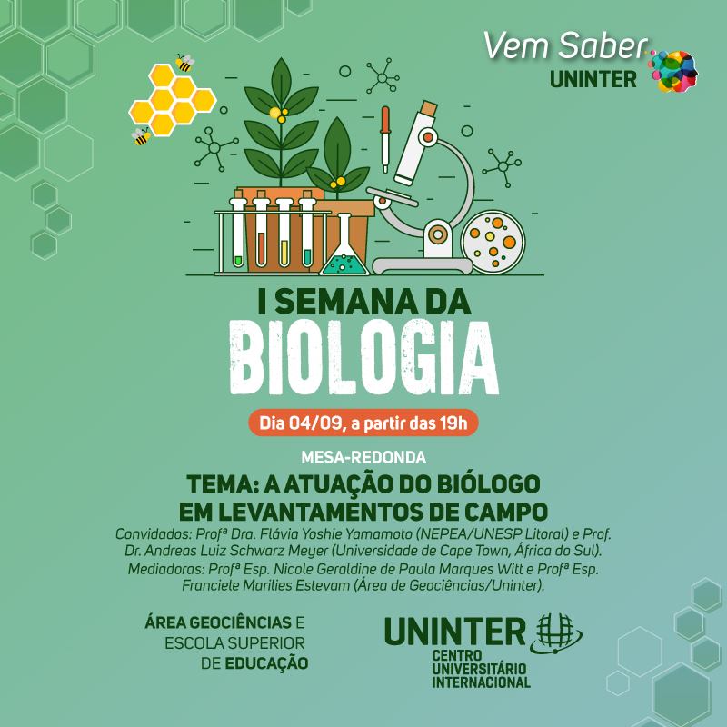 As palestras fizeram parte da programação da 1ª Semana de Biologia da Uninter, organizada pela área de Geociências e a Escola Superior de Educação. Com apresentações de 31.ago.20 a 04.set.20, todas elas podem ser conferidas no Facebook ou YouTube.