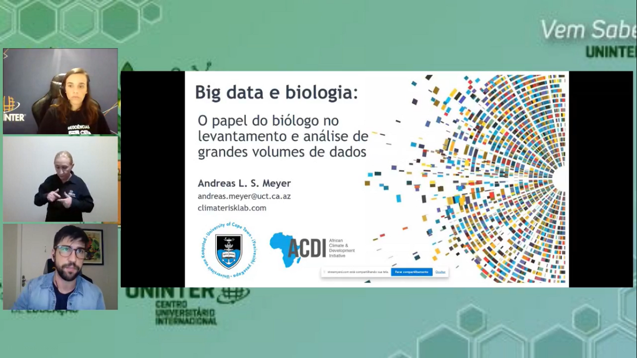 A segunda parte da apresentação ficou por conta do doutor Andreas Meyer, que relatou uma diferente inserção na carreira das Ciências Biológicas: a biologia computacional. A atuação de Meyer está na análise de dados a partir de ferramentas tecnológicas, com o uso de ciência da computação, estatística e matemática.