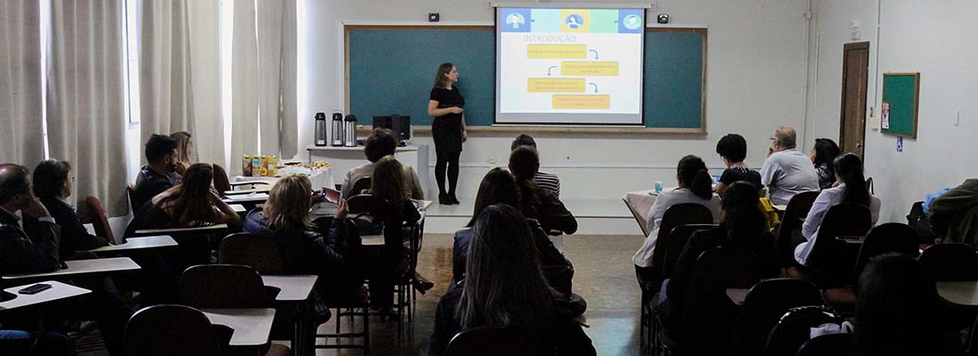 No total, foram cinco encontros. Cada um possuía um tema, uma metodologia e uma estratégia, sendo a última etapa a aplicação do questionário de autoavaliação. Como era um curso de proposta semipresencial, também houve momentos online, e Mariane disponibilizou o material através do e-book.
