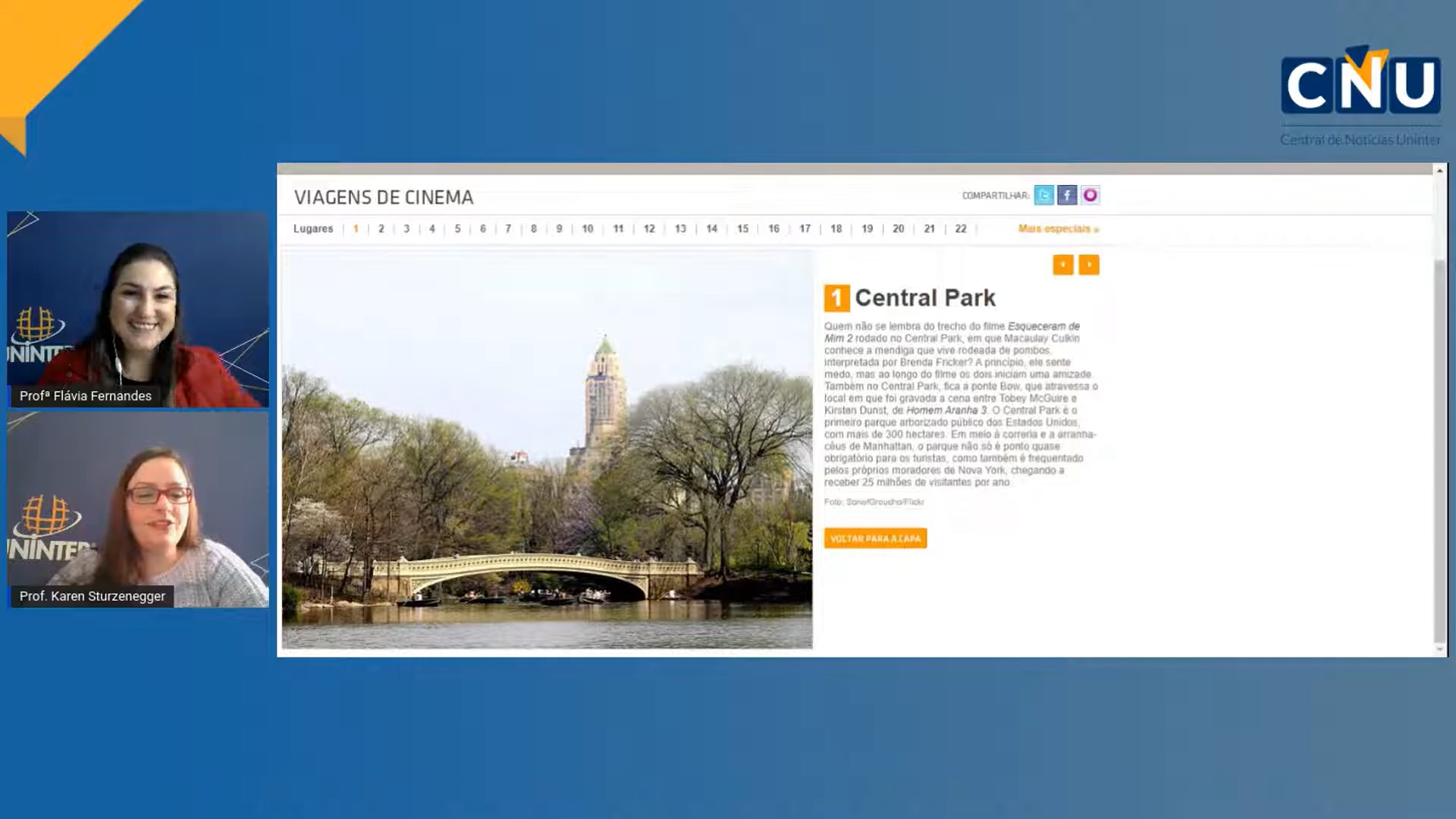 “Percebemos o quanto uma área como o cinema acaba interferindo e alavancando outra área, como o turismo, impulsionando assim regiões que serviram de locações para filmes e séries”, conta a professora Flávia Fernandes. Na última edição do programa Rota – Viagens e Serviços, transmitida em 22.jul.2021 pela Rádio Uninter, Flávia conversou com a professora Karen Sturzenegger sobre o tema “viagens de cinema e lugares inesquecíveis dos filmes”.