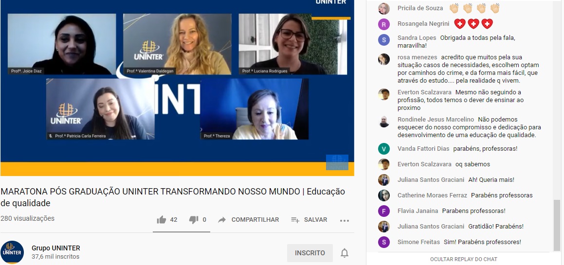 O debate entre as professoras aconteceu durante a Maratona Pós-graduação Uninter Transformando nosso Mundo, no dia 17.10.2020. A live foi centrada na ODS 4, com apresentação e mediação da professora Joice Diaz. A transmissão continua disponível através do canal do Youtube do Grupo Uninter.