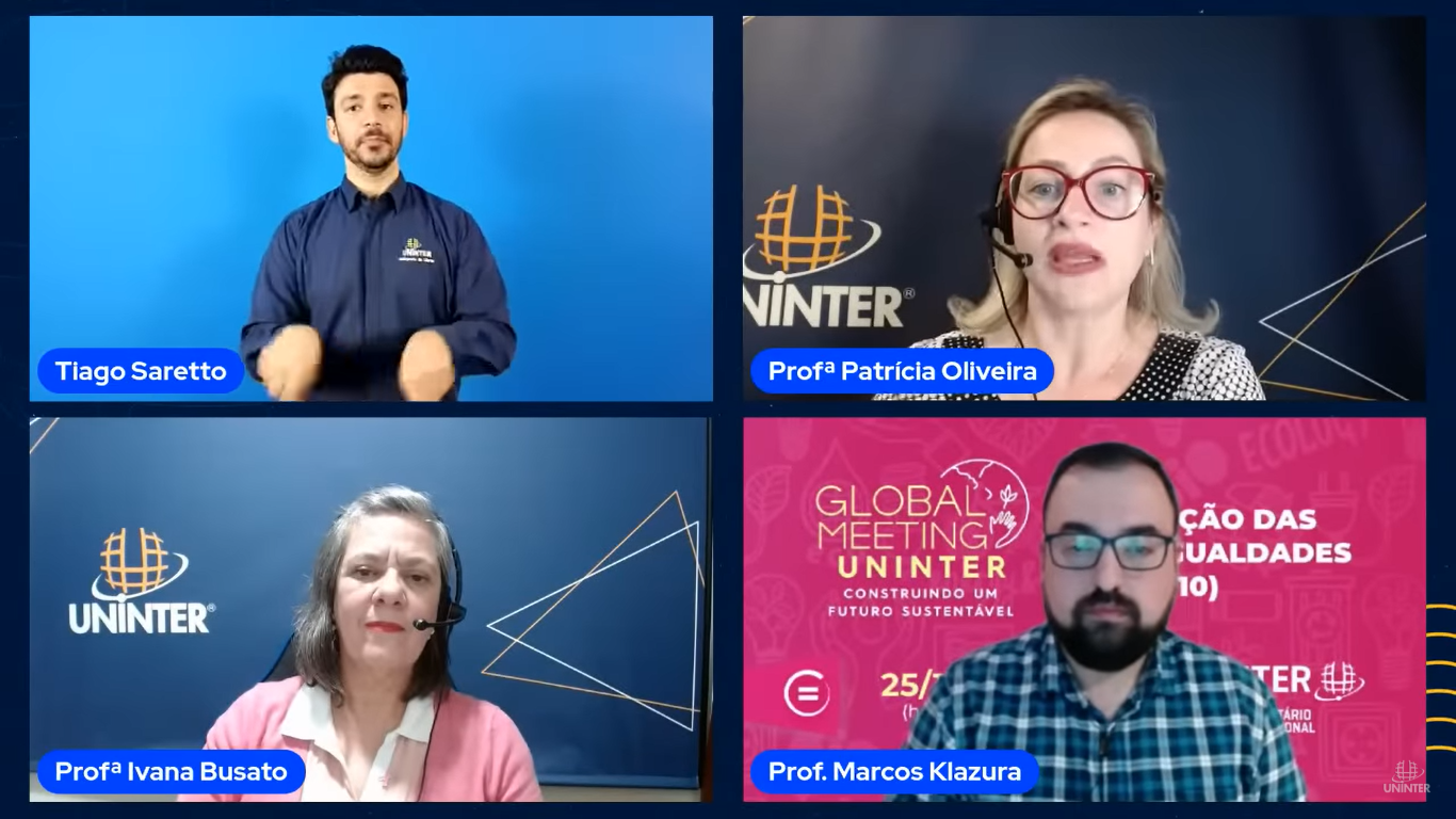 O tema foi pautado pelo Global Meeting Uninter, com os professores Marcos Klazura, mestrando e coordenador dos estágios do do bacharelado em Serviço Social da Uninter, e Ivana Maria Saes Busato, doutora e coordenadora dos cursos de Gestão Hospitalar e Gestão em Saúde Pública. A transmissão ocorreu em 25 de outubro de 2022 e pode ser conferida neste link.