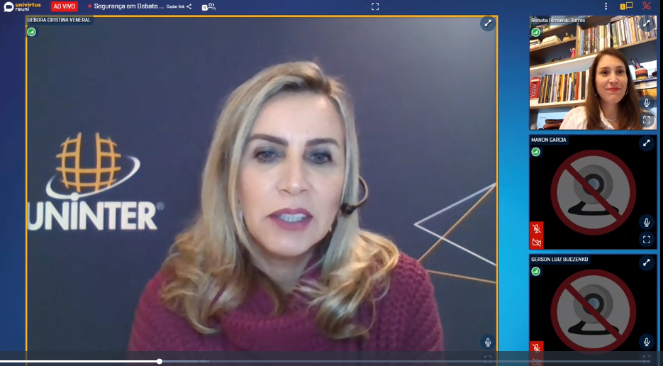 O bate-papo teve a presença dos professores Manon Garcia, Gerson Buczenko e da Escola de Gestão Pública, Política, Jurídica e Segurança da Uninter, Débora Veneral. Eles mediaram as falas da doutoranda em Políticas Públicas da Universidade Federal do Paraná (UFPR) Renata Himovski Torres, estudiosa do sistema penitenciário.