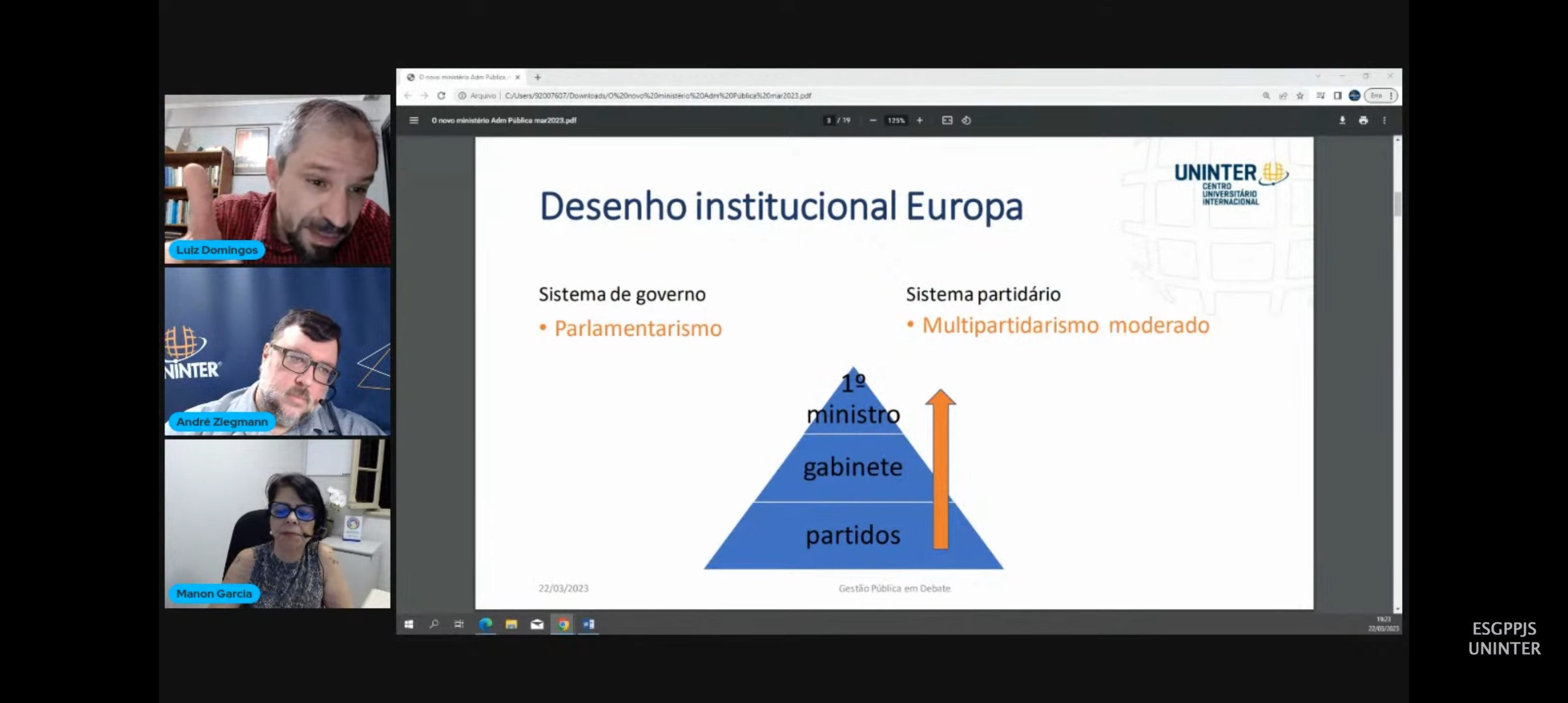 Os acadêmicos e professores da Uninter André Barsch Ziegmann e Luiz Domingos Costa foram os convidados do programa Gestão Pública em Debate. Transmitido em 22 de março pela Escola Superior de Gestão Pública, Política, Jurídica e Segurança da Uninter, o programa apresentado pela professora Manon Garcia abordou o funcionando do sistema político brasileiro.