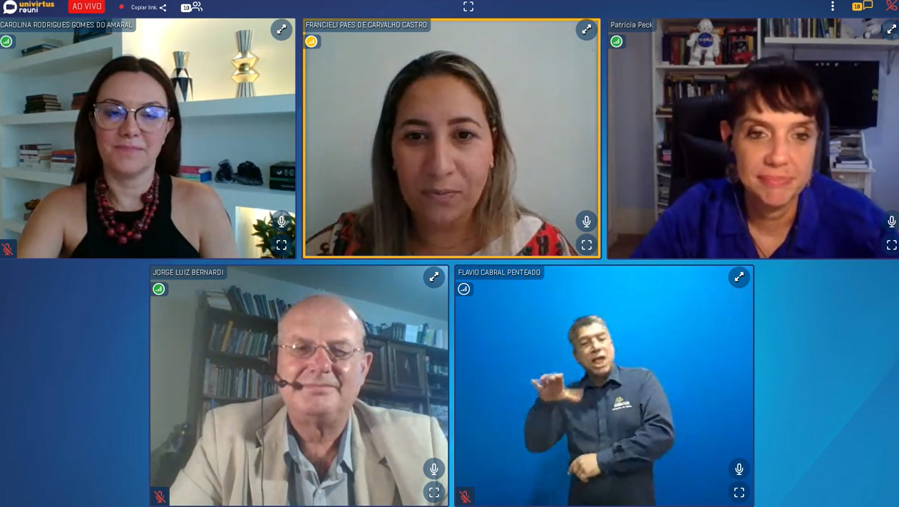 A palestra foi mediada pela coordenadora da Escola de Polos da Uninter, Francieli Paes de Carvalho Castro, com comentários do vice-reitor, Jorge Luiz Bernardi, e participação da assessora jurídica da Uninter, Carolina Rodrigues Gomes do Amaral.