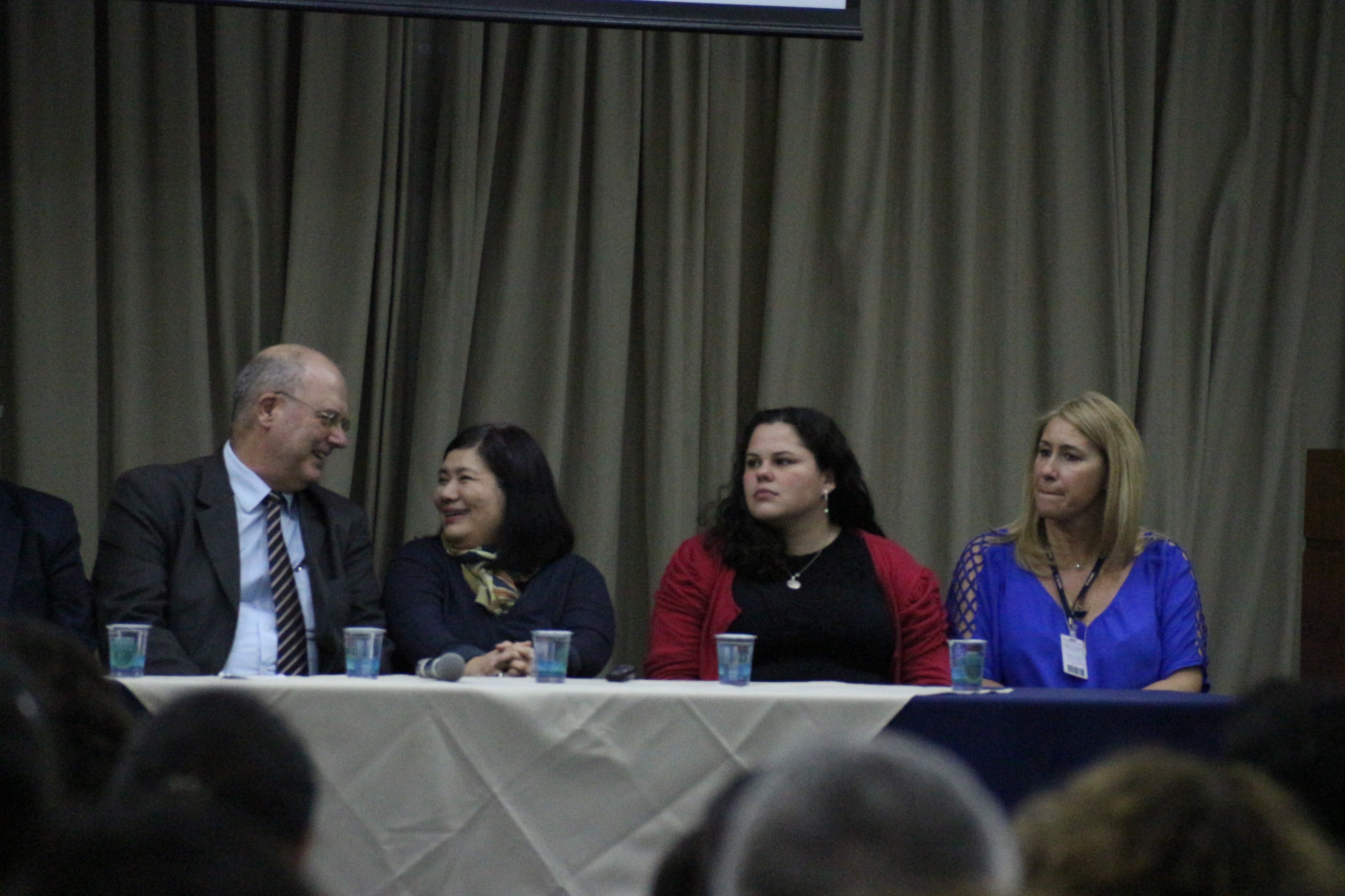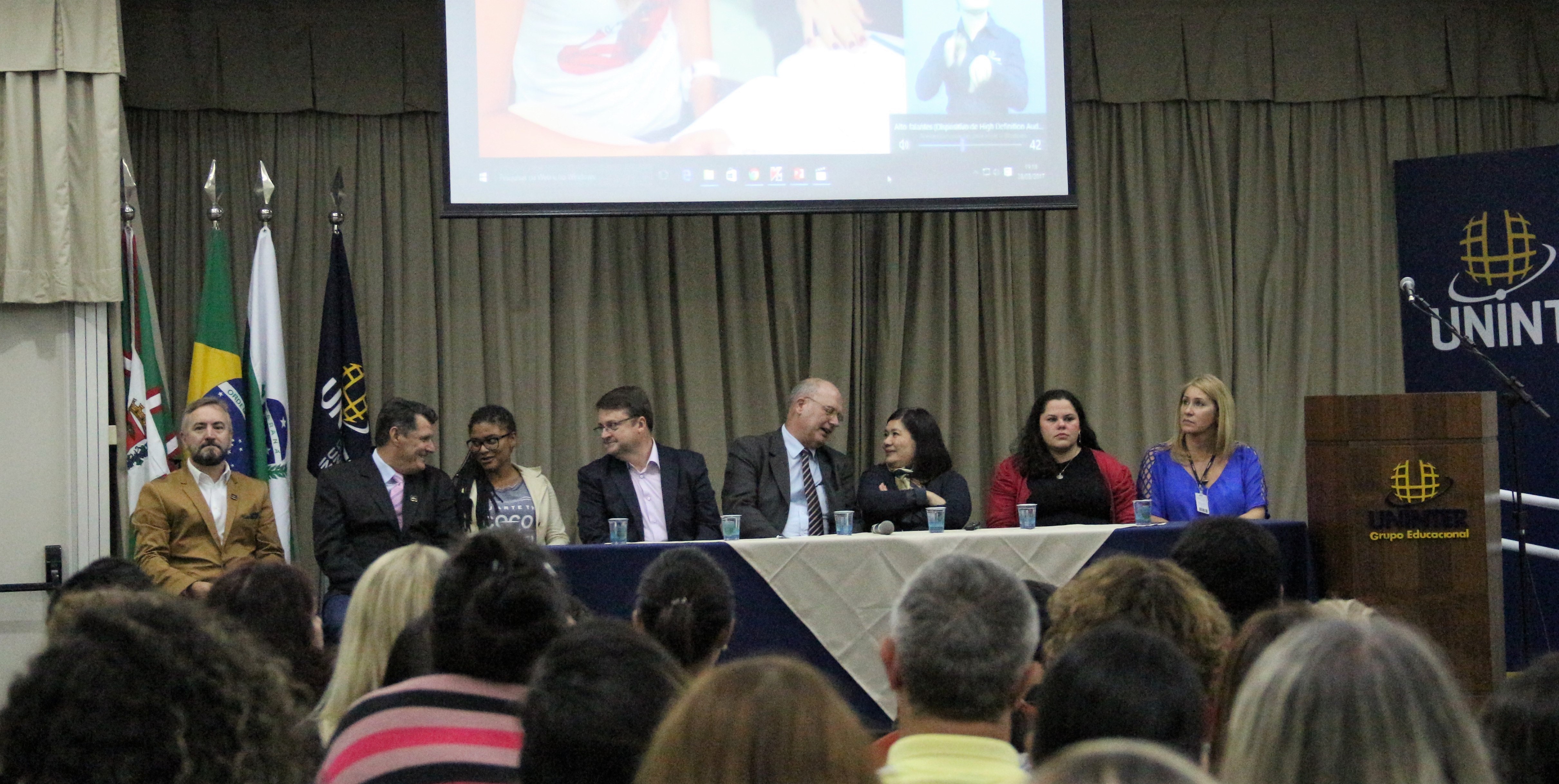 A mesa do evento foi composta pelo vice-reitor da Uninter, Jorge Bernardi, o diretor da Escola de Saúde, Biociência, Meio Ambiente e Humanidades, Rodrigo Berté, o coordenador de Serviço Social, Dorival da Costa, a palestrante Dirce Koga, o presidente do Cogemas (Colegiado de Gestores Municipais de Assistência Social do Estado do Paraná) e vice-presidente do Congemas nacional, José Roberto Zanchi, a representante da FAS Renata Mareziuzek dos Santos. Também estavam na mesa Adriane Baglioli Brun, representando os professores, a Aline Brito representando os alunos de Serviço Social da Uninter.