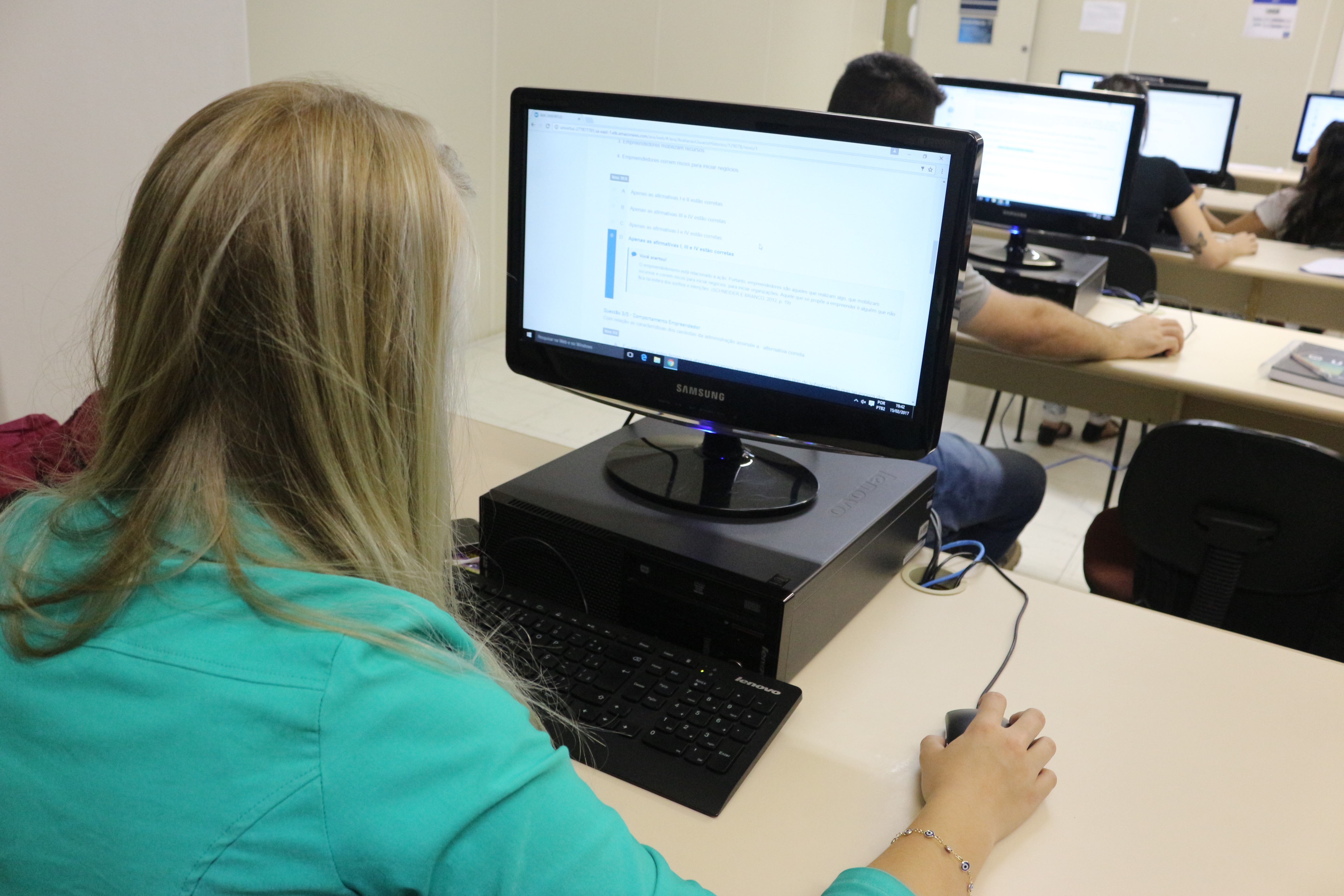“A gente vê que os alunos têm medo de entrar no AVA, pois acham que vão deletar alguma coisa. Essas aulas são importantes, pois eles começam a mexer e conhecem bem o sistema, além de interagir uns com os outros”, observa a professora do curso de Administração, Elaine Hobmeir. A ideia desta aula surgiu quando alunos realizaram uma prova pelo AVA e não sabiam como fazer. Muitos foram mal na avaliação.
