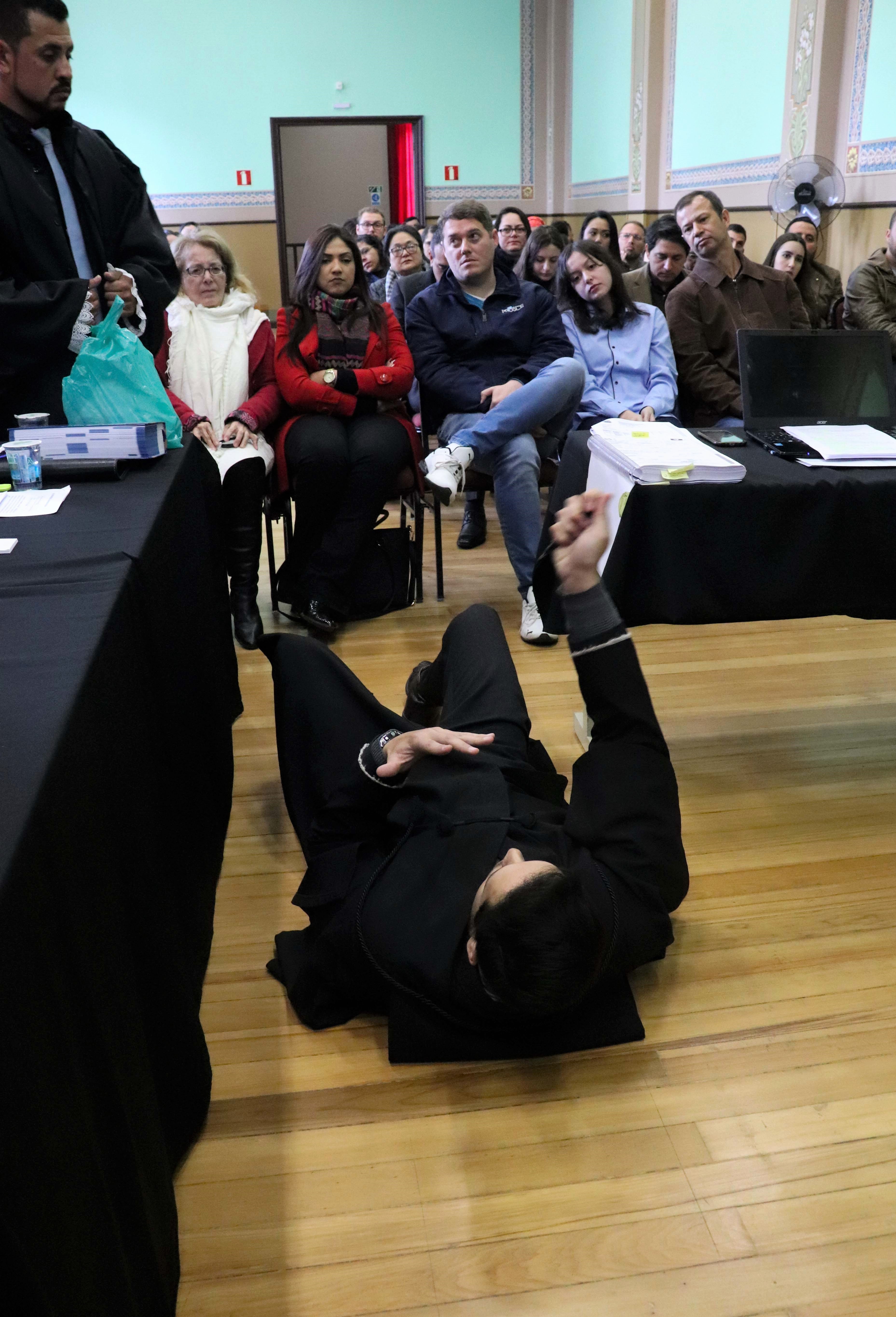 A juíza responsável pelo julgamento do dia 24 foi a estudante da escola da magistratura Jéssica Leske. Esta foi sua primeira participação como juíza. “Foi uma experiência que nenhuma aula teórica poderia proporcionar. Aliás, foi um ótimo exame para ver se meu coração aguenta fortes emoções. E ainda sou grata pelo convite de participar de um evento tão interessante”, comenta.