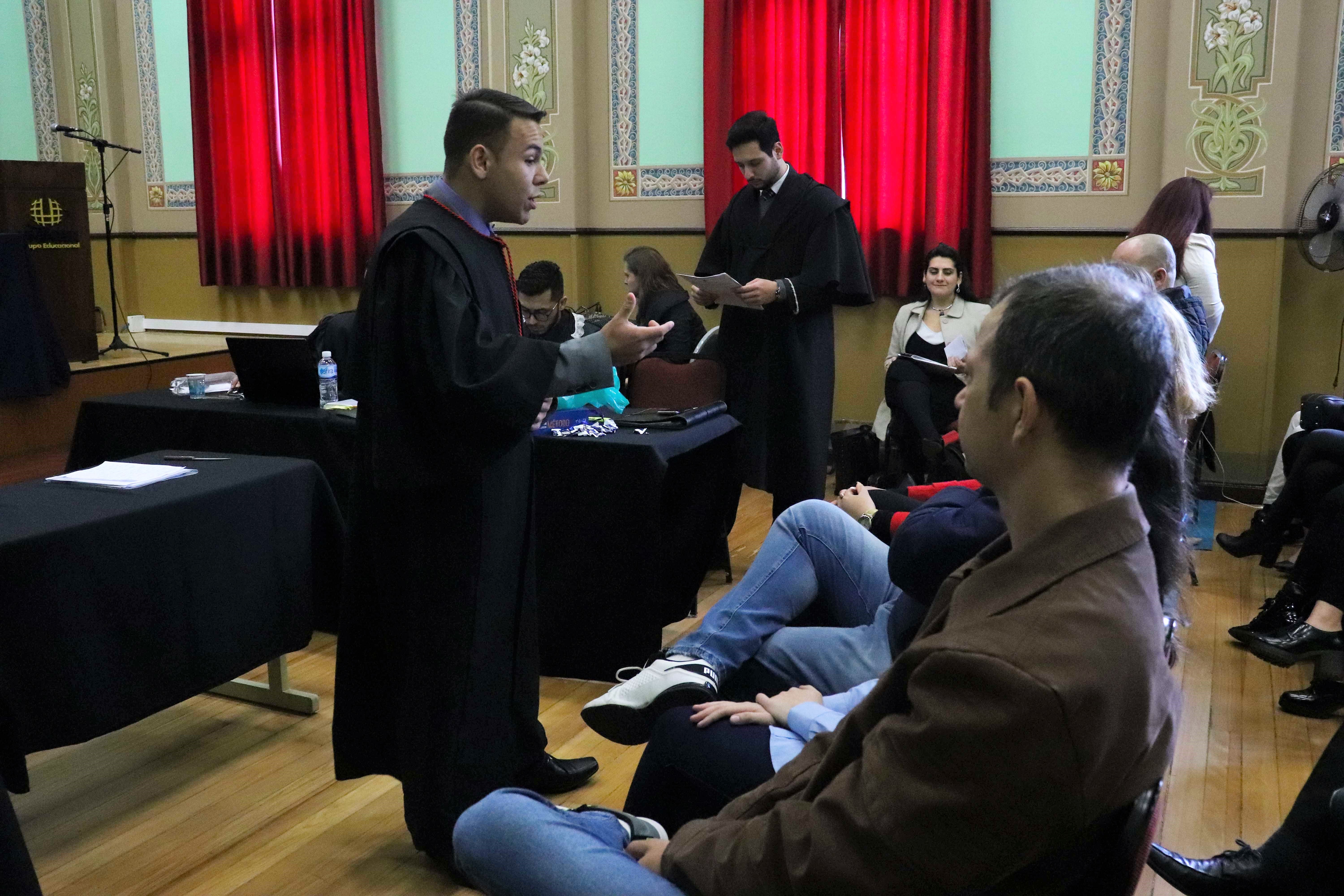 Os alunos que se inscrevem no programa fazem o estudo de casos reais que já foram julgados. Eles têm acesso às provas anexadas ao processo, como vídeos, interrogatórios e laudos. Cada julgamento tem a participação de três instituições, uma como acusação, outra como defesa e a terceira como conselho técnico e jurados.
