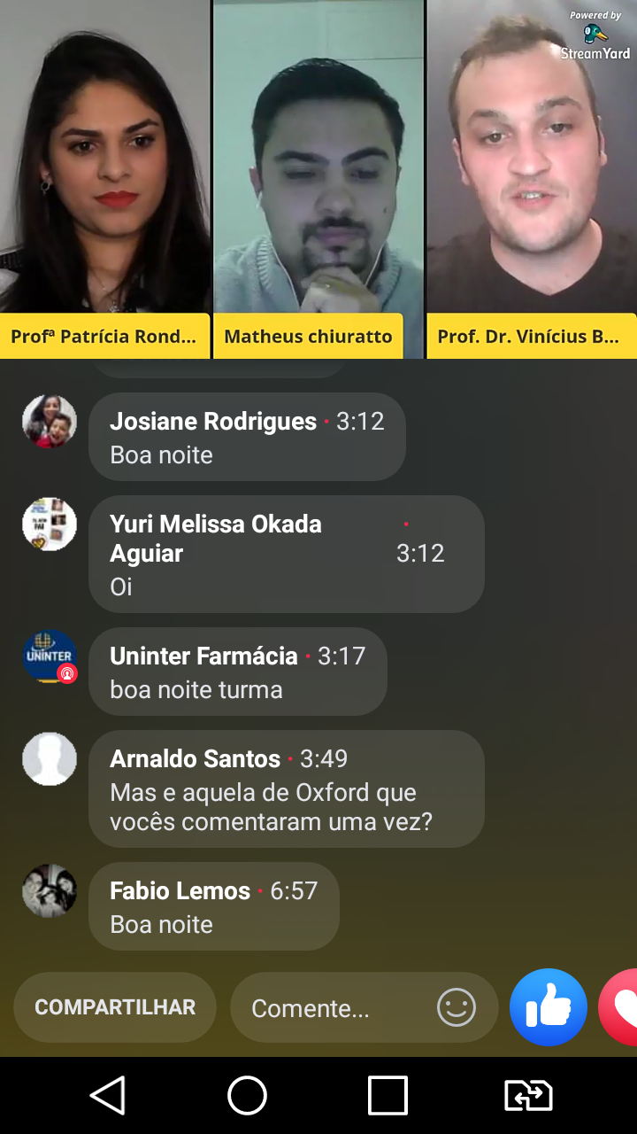 O evento foi transmitido pelo Facebook e permanece disponível na página Uninter Farmácia.