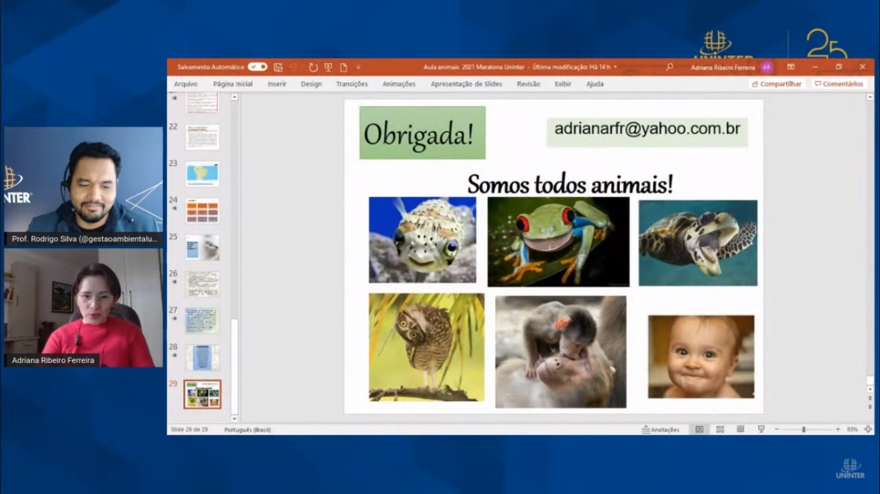 Esse tema foi abordado pela bióloga Adriana Ribeiro Ferreira em live da ll Maratona de Sustentabilidade da Escola de Saúde, apresentada pelo professor Rodrigo Silva. “Me sinto feliz e esperançosa que uma temática como essa, que discute a relação dos humanos com os animais, componha um evento de discussão e debate dentro da área ambiental, que é uma coisa relativamente recente e carece de espaço. É importante termos diálogos que tratem do tema, para que ajudemos outras pessoas a despertarem, talvez ver coisas que antes não víamos”, afirma Adriana.