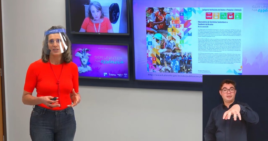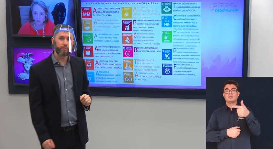 Garbossa e Frota apresentaram a palestra Objetivos de Desenvolvimento Sustentável (ODS): motivos possíveis no último dia da Semana Pedagógica da Uninter, realizada pela Escola de Polos, no dia 4 de fevereiro. O evento contou com a apresentação da professora Thereza Cristina Lima e a mediação do chat feita por Desiree Monteiro. A transmissão da live aconteceu por meio do ambiente virtual de aprendizagem (AVA).