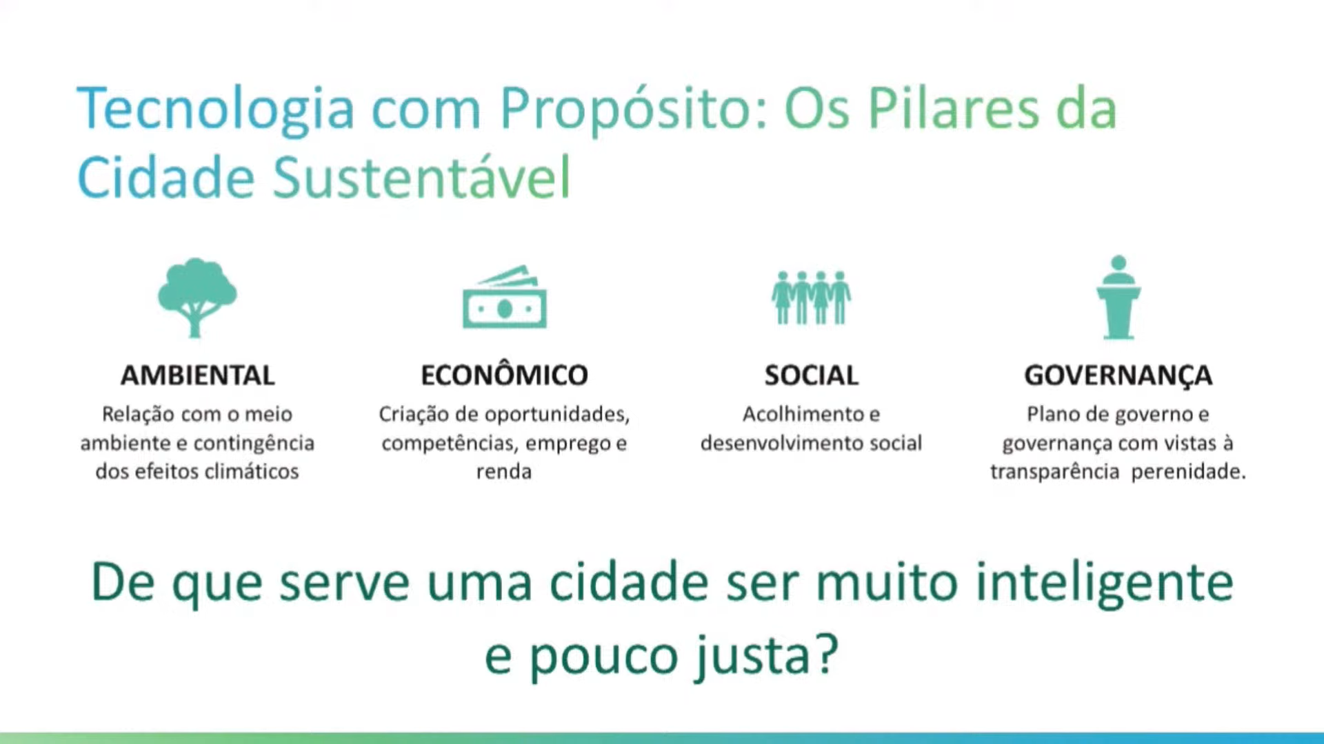 O evento também convidou os participantes a refletirem sobre o papel do cidadão como protagonista das transformações. “Estar no centro das decisões não significa ser passivo. É preciso que o cidadão conheça as iniciativas e participe delas”, afirmou Pimentel. As discussões sobre mobilidade urbana, inclusão digital e desigualdades sociais também ganharam destaque, evidenciando a importância do planejamento urbano de longo prazo e do fortalecimento das redes colaborativas.