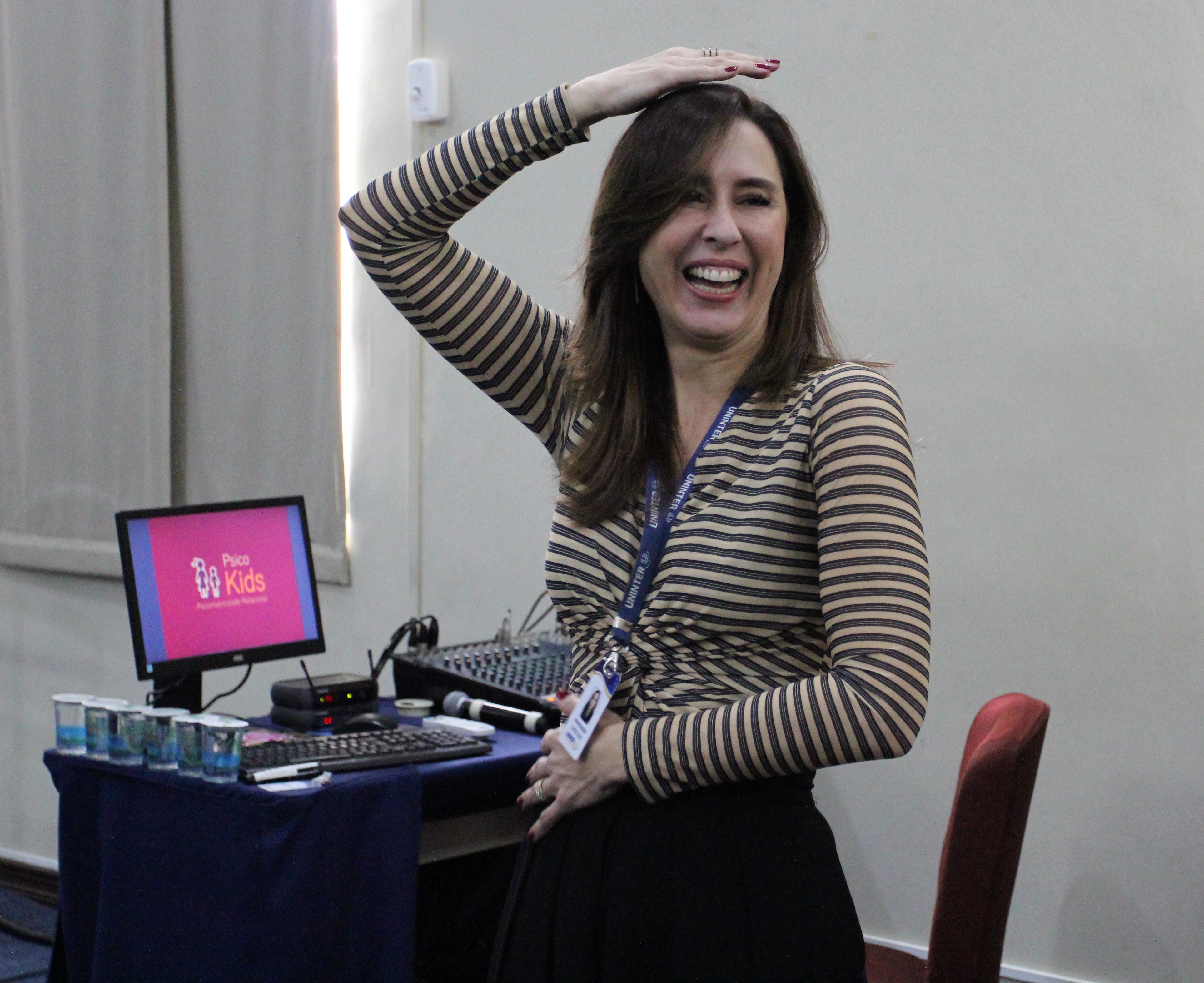 Na palestra, além de explicar conceitos relacionados ao tema, a palestrante propôs exemplos práticos de atividades, fazendo brincadeiras com instrumentos comuns, como bambolês, abordando uma variedade de estímulos. Estes jogos simbólicos podem ser feitos com simplicidade, trabalhando questões do desenvolvimento psicológico da criança.