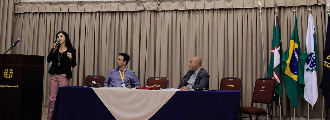 A coordenadora de Pesquisa e Publicações Acadêmicas da Uninter, Desiré Luciane Dominschek, mediou o evento apresentando os responsáveis pelos periódicos e ressaltou a importância dos cadernos. “Eles são a base da iniciação científica, para divulgar os trabalhos produzidos pelos alunos. É um caminho para a qualificação das pesquisas, para que possam ser habilitadas a estar em revistas importantes”, diz.