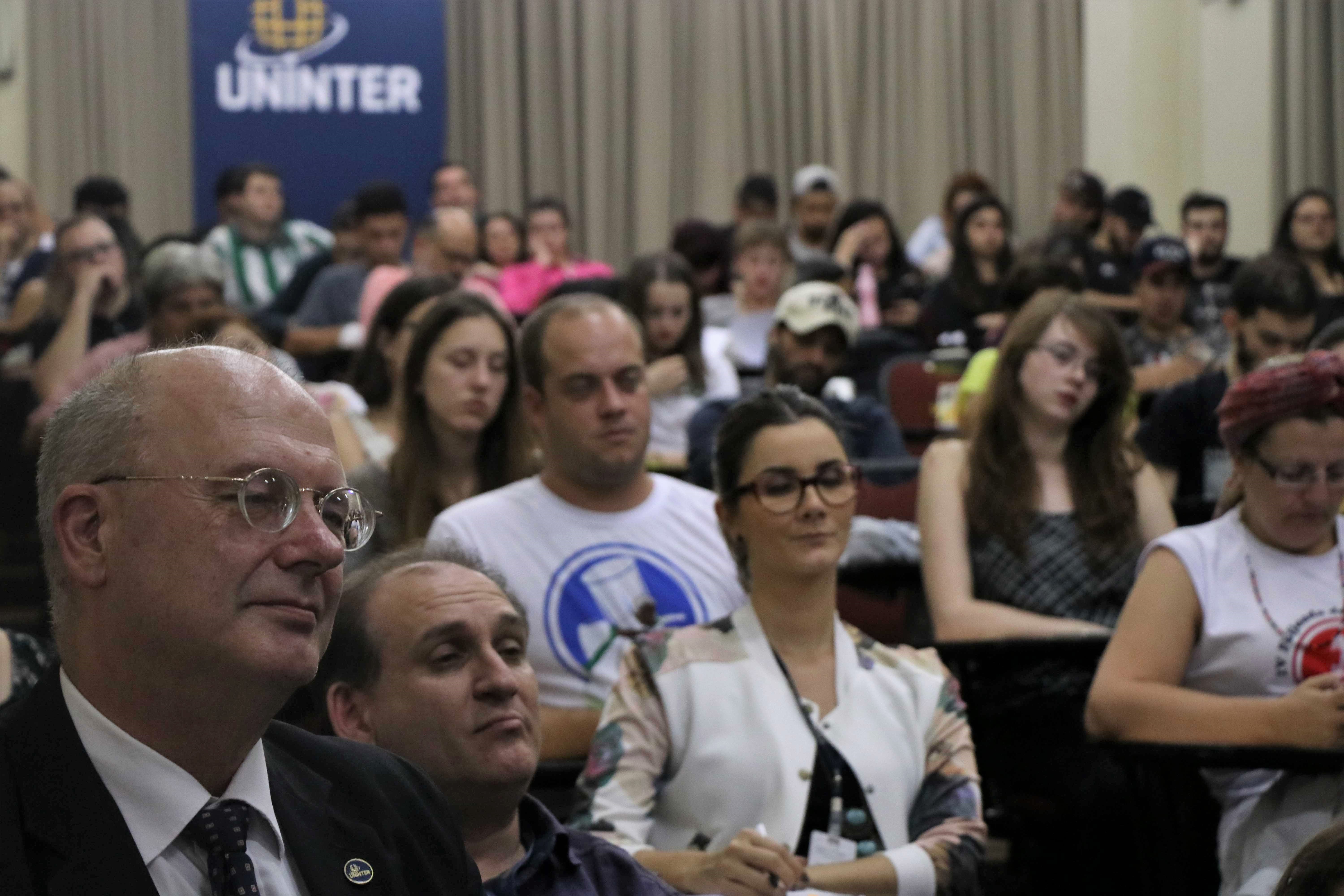 Além do vice-reitor Jorge Bernardi, também participaram da abertura o diretor da Escola Superior de Gestão, Comunicação e Negócios da Uninter, Elton Schneider, e os coordenadores do curso de Jornalismo, Guilherme Carvalho, e do curso de Publicidade e Propaganda, Alexandre Correia. As exposições foram mediadas pela professora-doutora Mônica Fort.