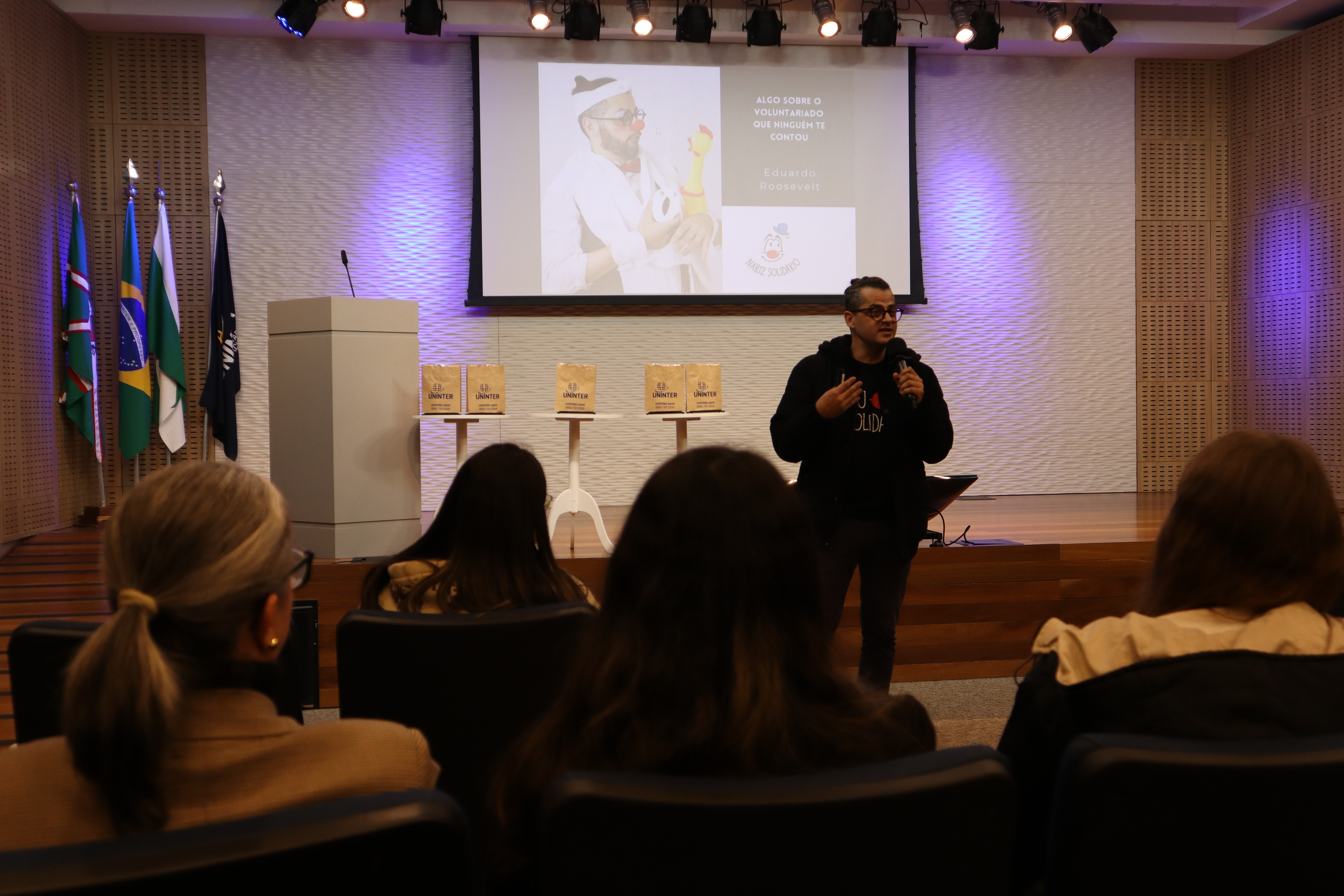 O voluntariado é uma ponte entre o desejo de ajudar e a necessidade de quem precisa. Sob esse olhar, o auditório Garcez sediou a palestra do dia nacional do voluntariado, no dia 28 de agosto, com a participação de Eduardo Roosevelt, cofundador e diretor da OSC Nariz Solidário. O evento, organizado pelo IBGPEX, Instituto de responsabilidade socioambiental da Uninter, também celebrou e valorizou a dedicação dos colaboradores voluntários da Uninter.