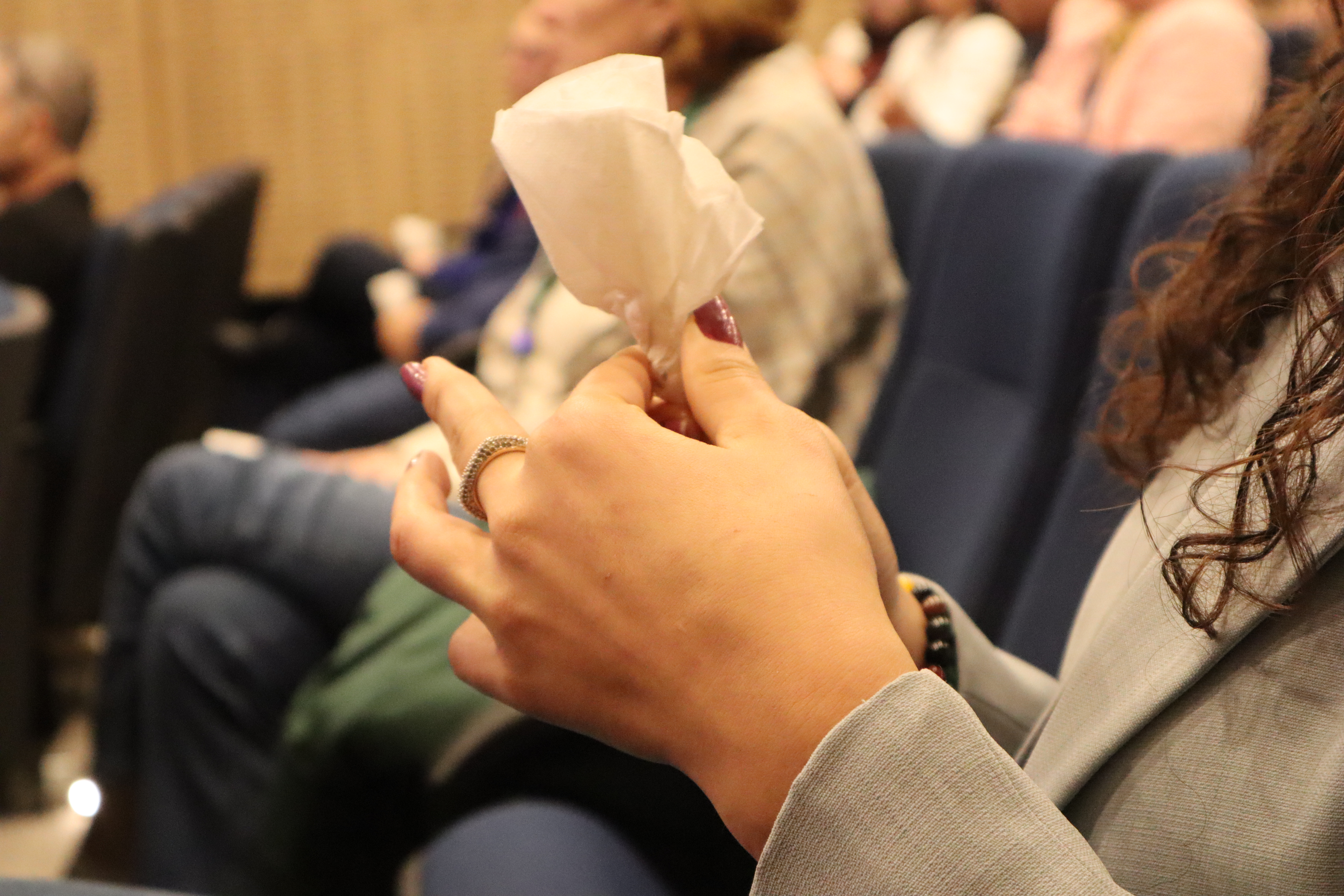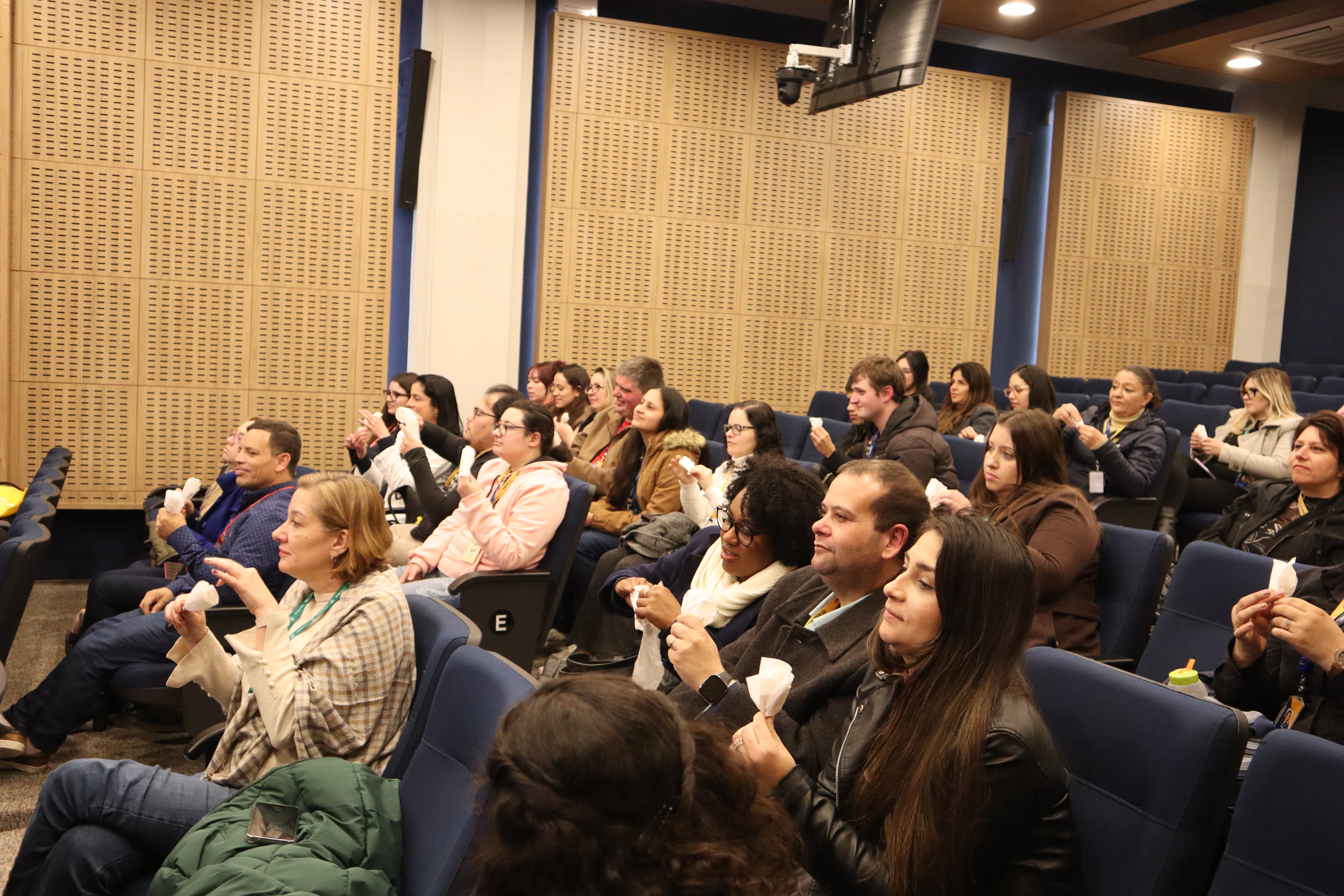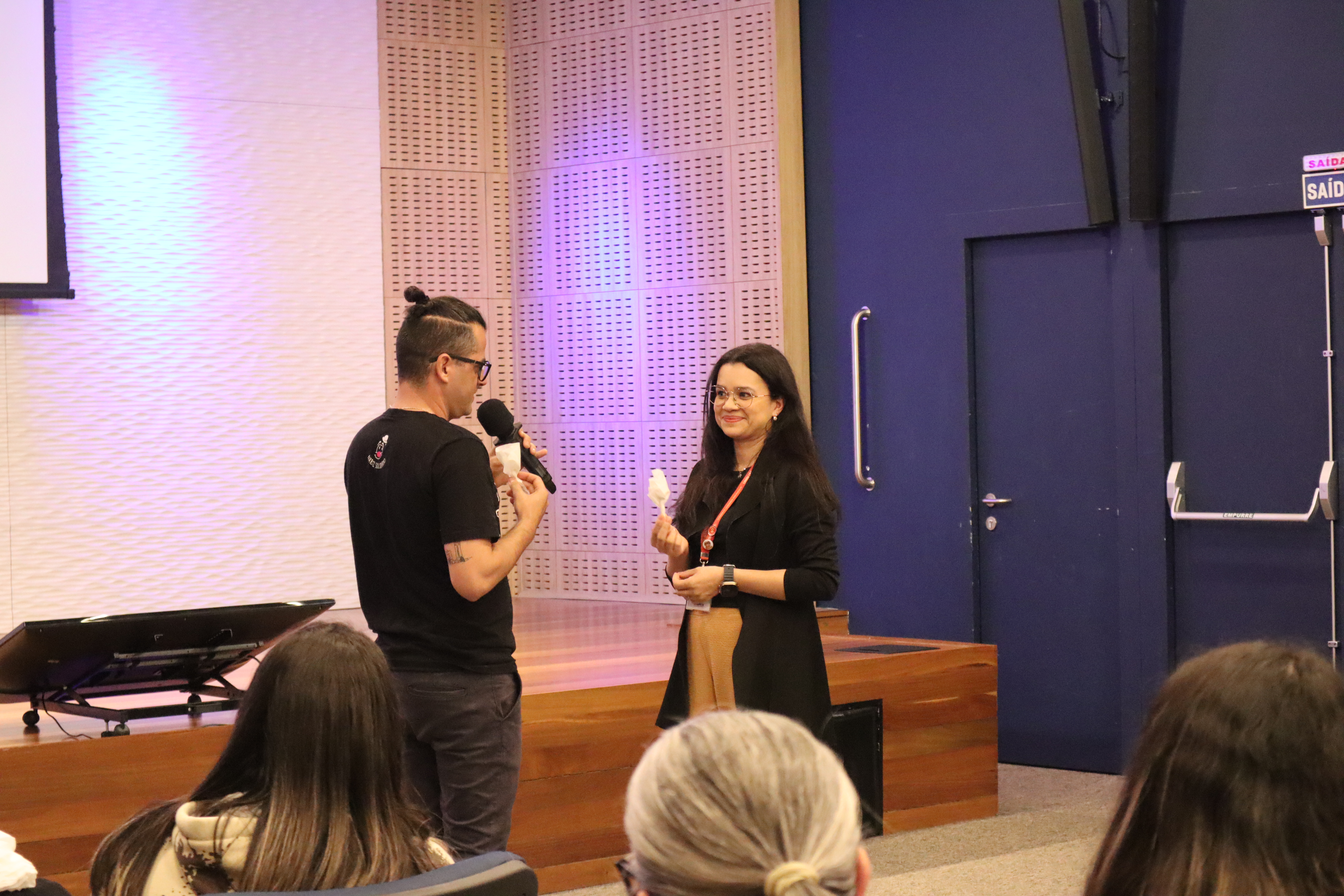 Durante o evento, o público foi convidado a participar de uma dinâmica que ilustrou de forma prática o poder da solidariedade. Em uma atividades simples, mas tocante, os participantes transformaram pedaços de papel higiênico em flores e as trocaram entre si. A iniciativa, que poderia parecer banal, provocou sorrisos e mostrou como um gesto simples é capaz de mudar o dia de alguém e fortalecer conexões.