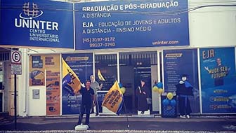 Em Cascavel (PR), o polo Uninter ganhou casa nova em 2018. Instalado no centro da cidade, o polo, que antes ficava no bairro Alto Alegre, foi reformulado e ganhou maior visibilidade na cidade. “Colocamos o polo no centro da cidade, do lado da Catedral, o que trouxe mais destaque”, diz a nova gestora, Cecília de Souza Pestana. Ela e Sérgio Menegusso, que trabalhavam na sede corporativa da Uninter em Curitiba, formaram uma sociedade e assumiram o comando do polo há 9 meses.
