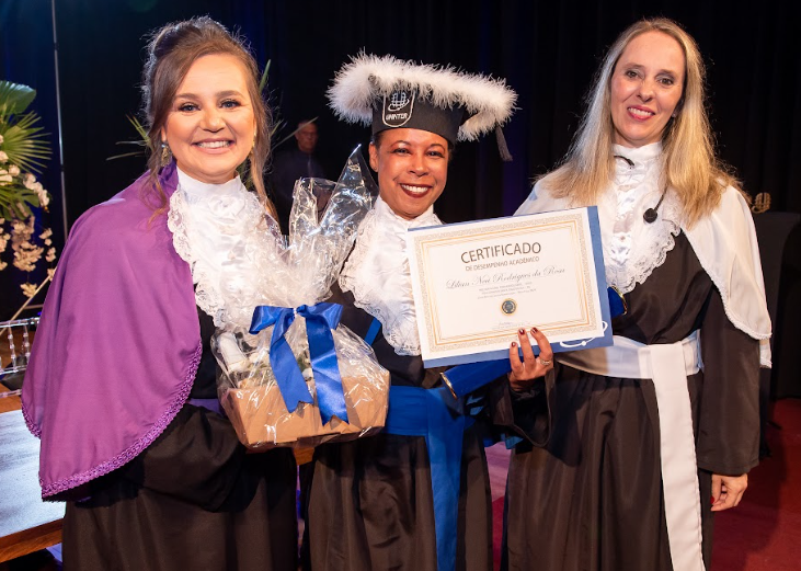 Ao longo do curso de Administração, Lilian Neci Rodrigues da Rosa colocou como uma de suas metas obter a maior média entre todos os formandos. E ela conseguiu. Realização e vitória são duas palavras que definem a conclusão da jornada, e sua família é claro, teve um papel importante. Para o futuro, Lilian espera seguir se desenvolvendo: “Agora minha expectativa, após a formatura, é conquistar minha realização profissional e pessoal, e eu não posso falar de mim sem incluir a minha família”.
